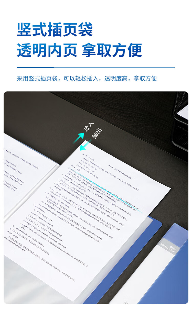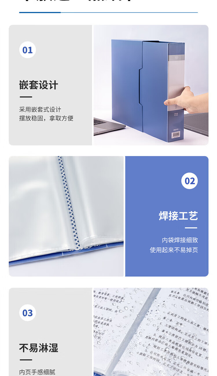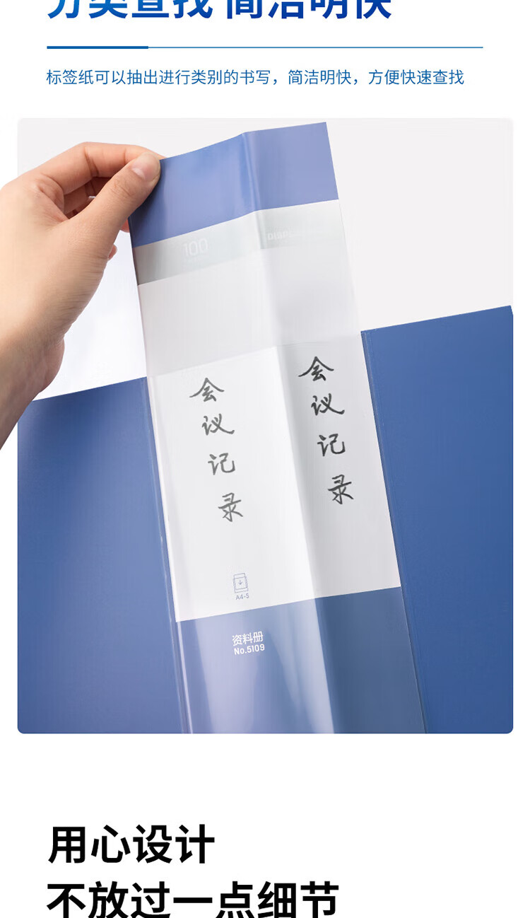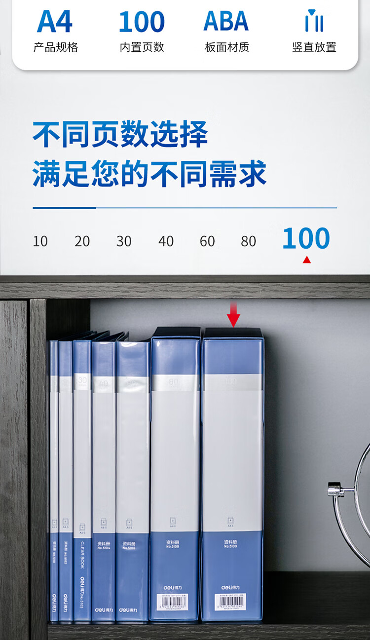 得力(deli)A4/100页大容量学生资料册文件活页收纳册档案文件夹5109 单位:个 蓝色