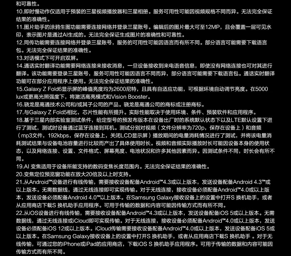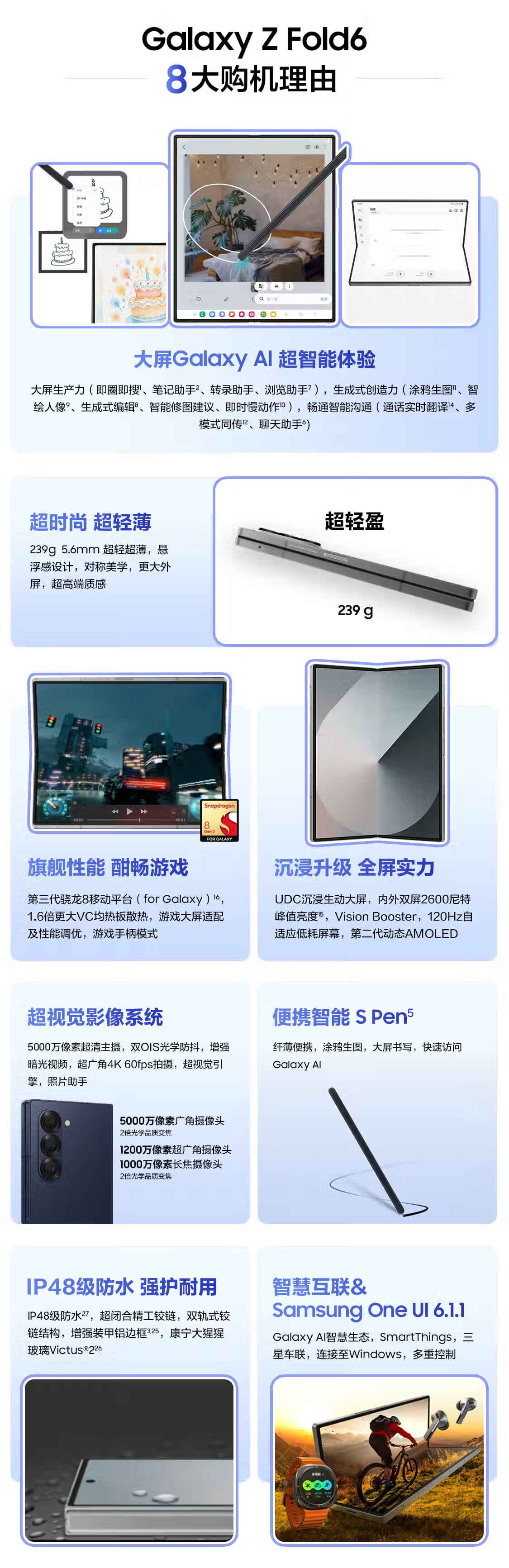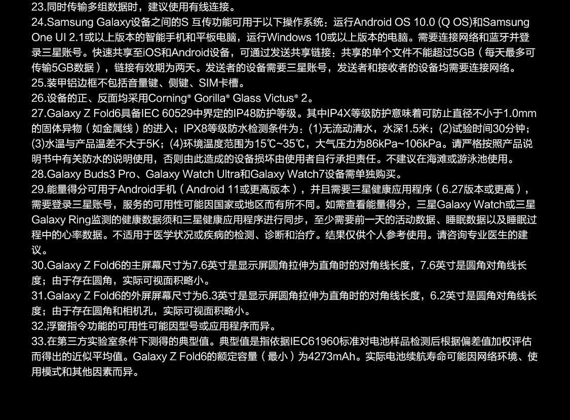 三星Galaxy Z Fold6 超轻薄折叠屏手机 单位:台 冷夜蓝 12G+512G