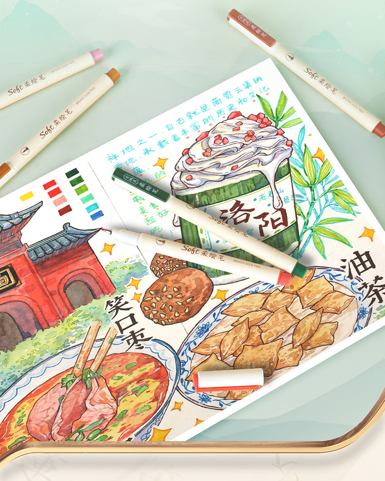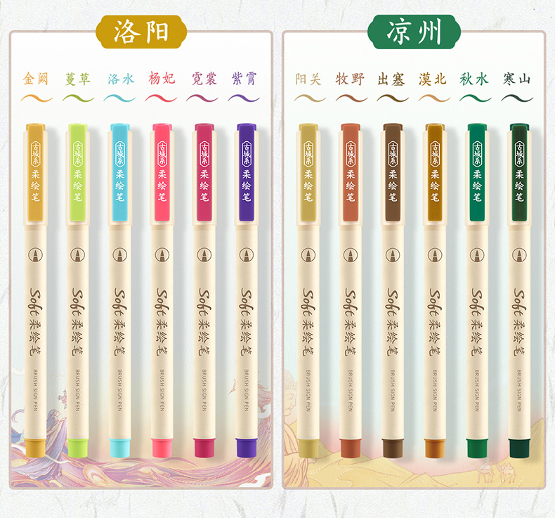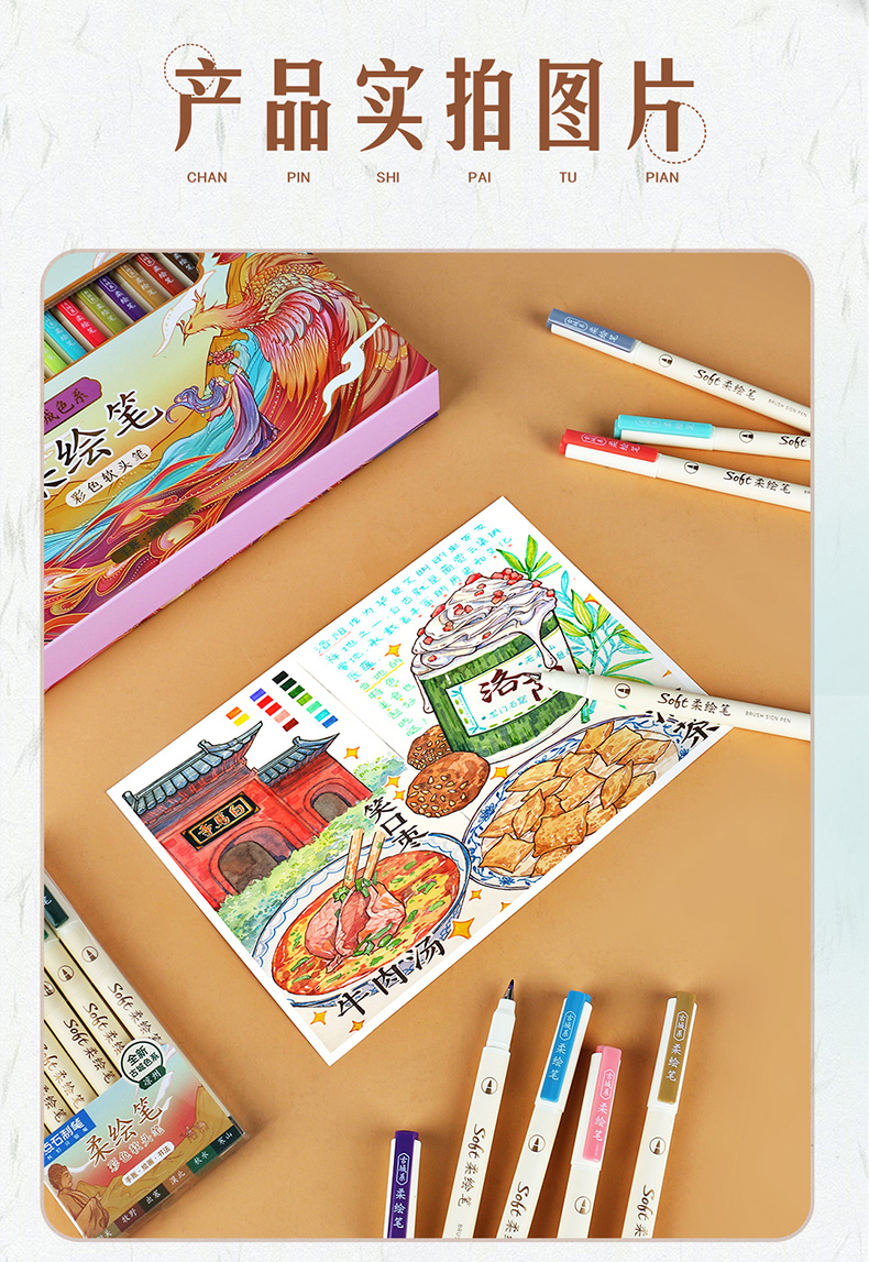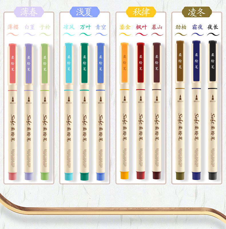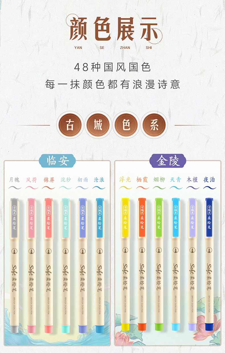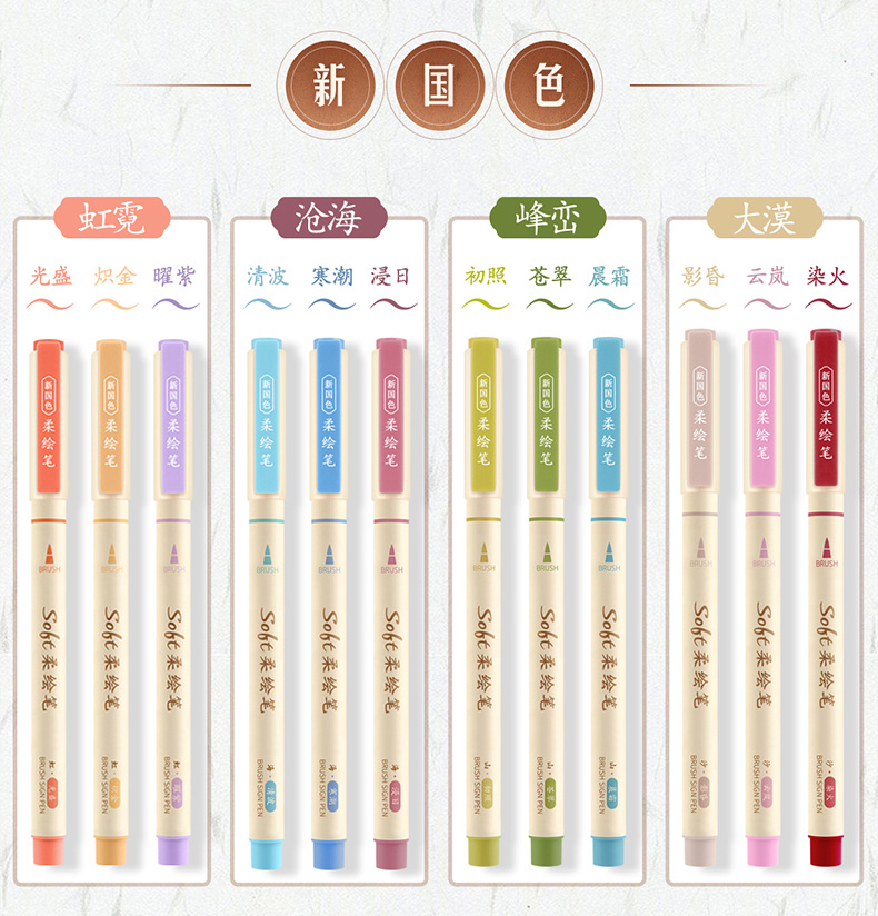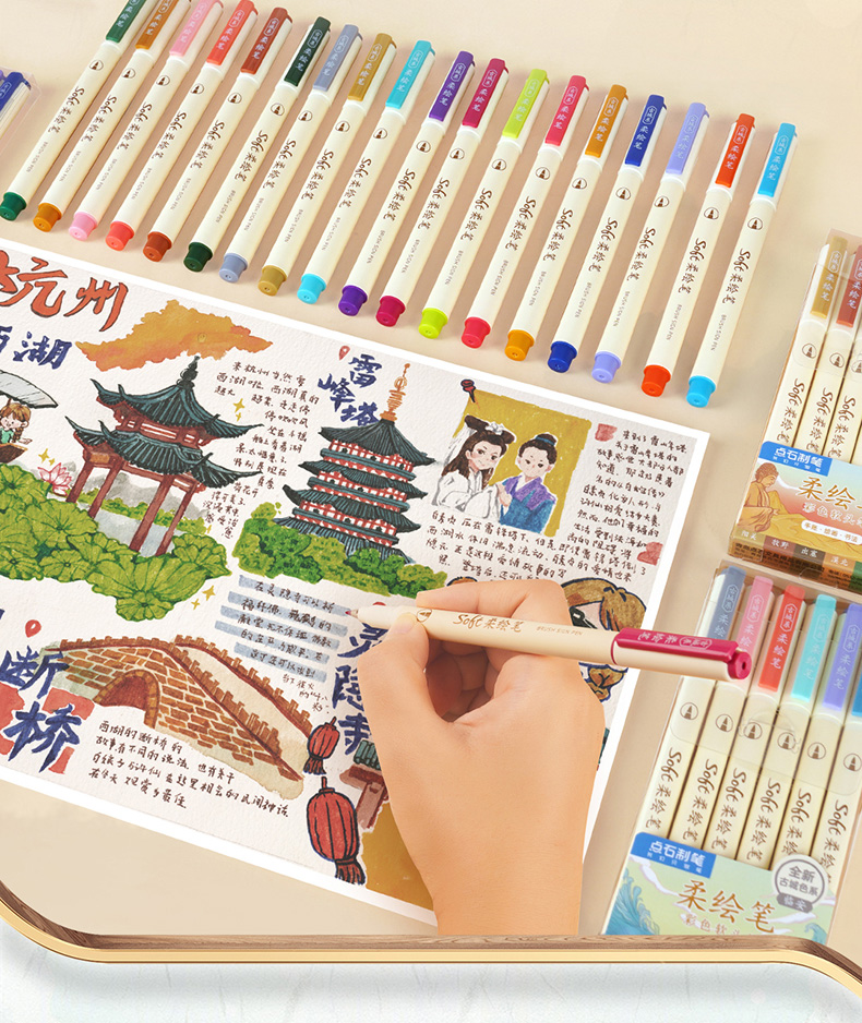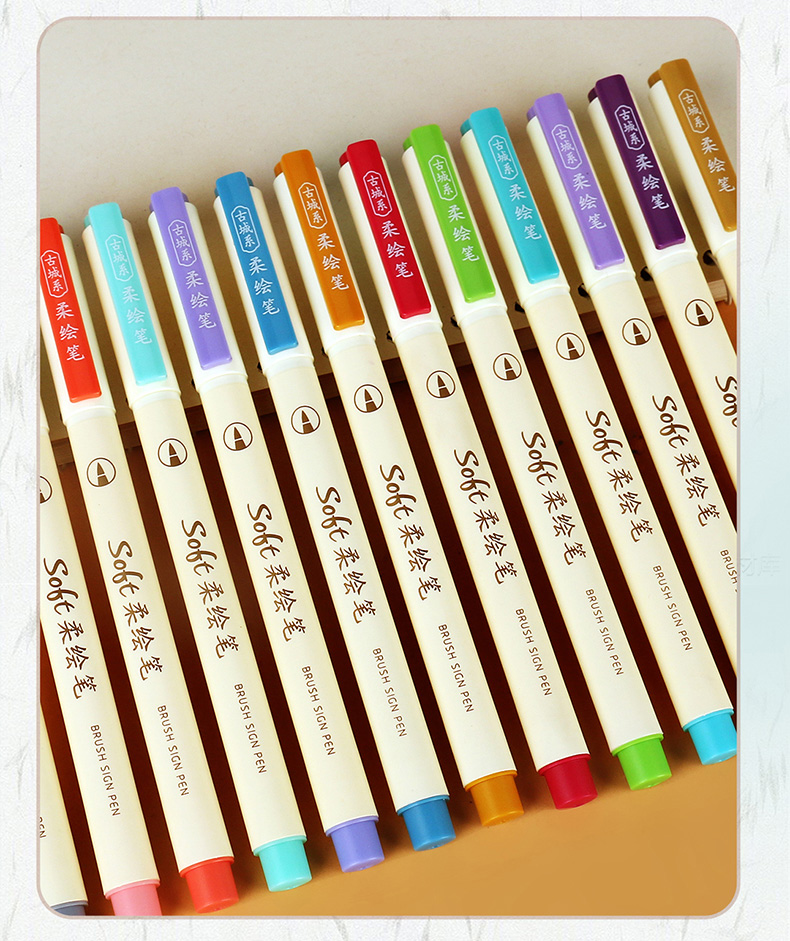 点石柔绘笔古城色小楷练字笔学生用软头马克笔彩绘笔花体英文Brush软头手帐笔多色秀丽笔24色礼盒装套