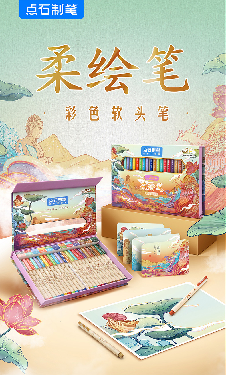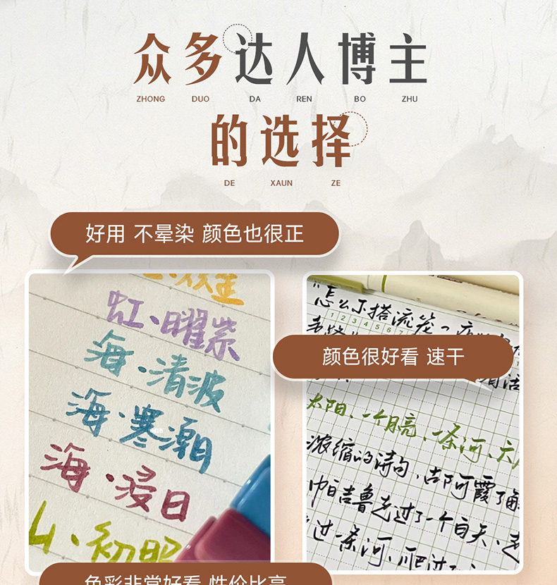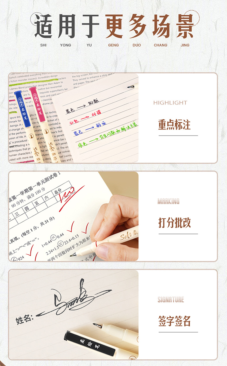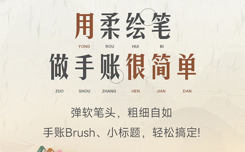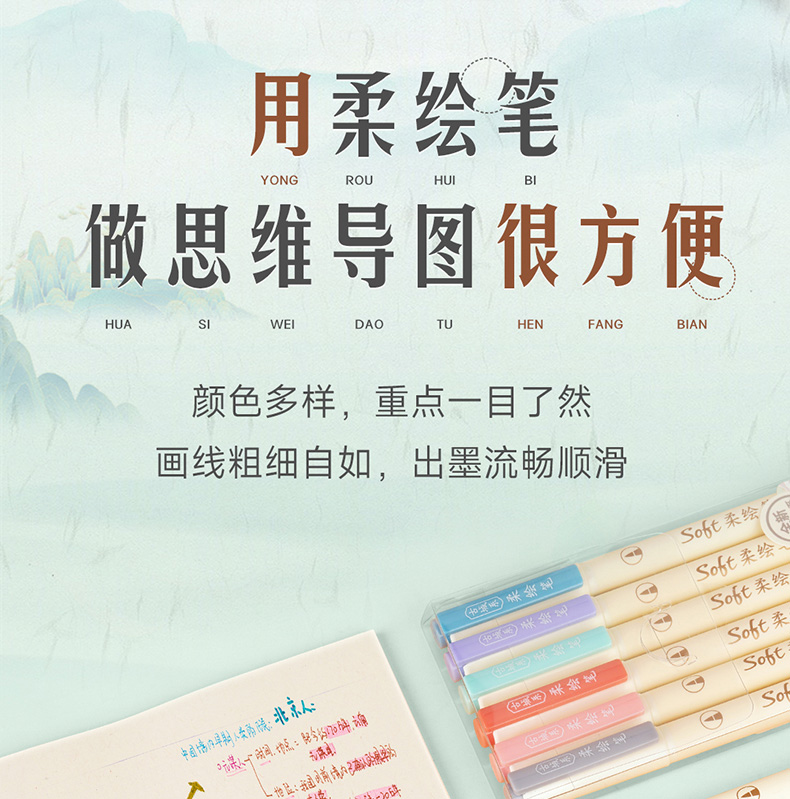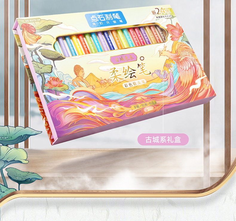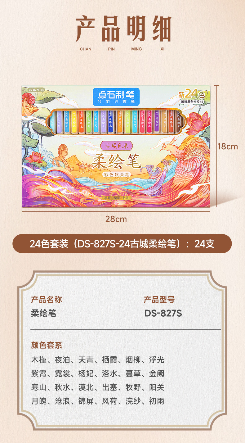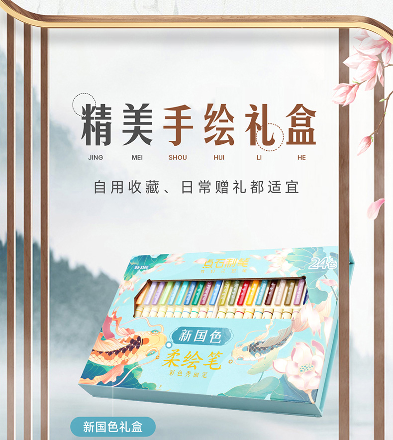 点石柔绘笔古城色小楷练字笔学生用软头马克笔彩绘笔花体英文Brush软头手帐笔多色秀丽笔24色礼盒装套