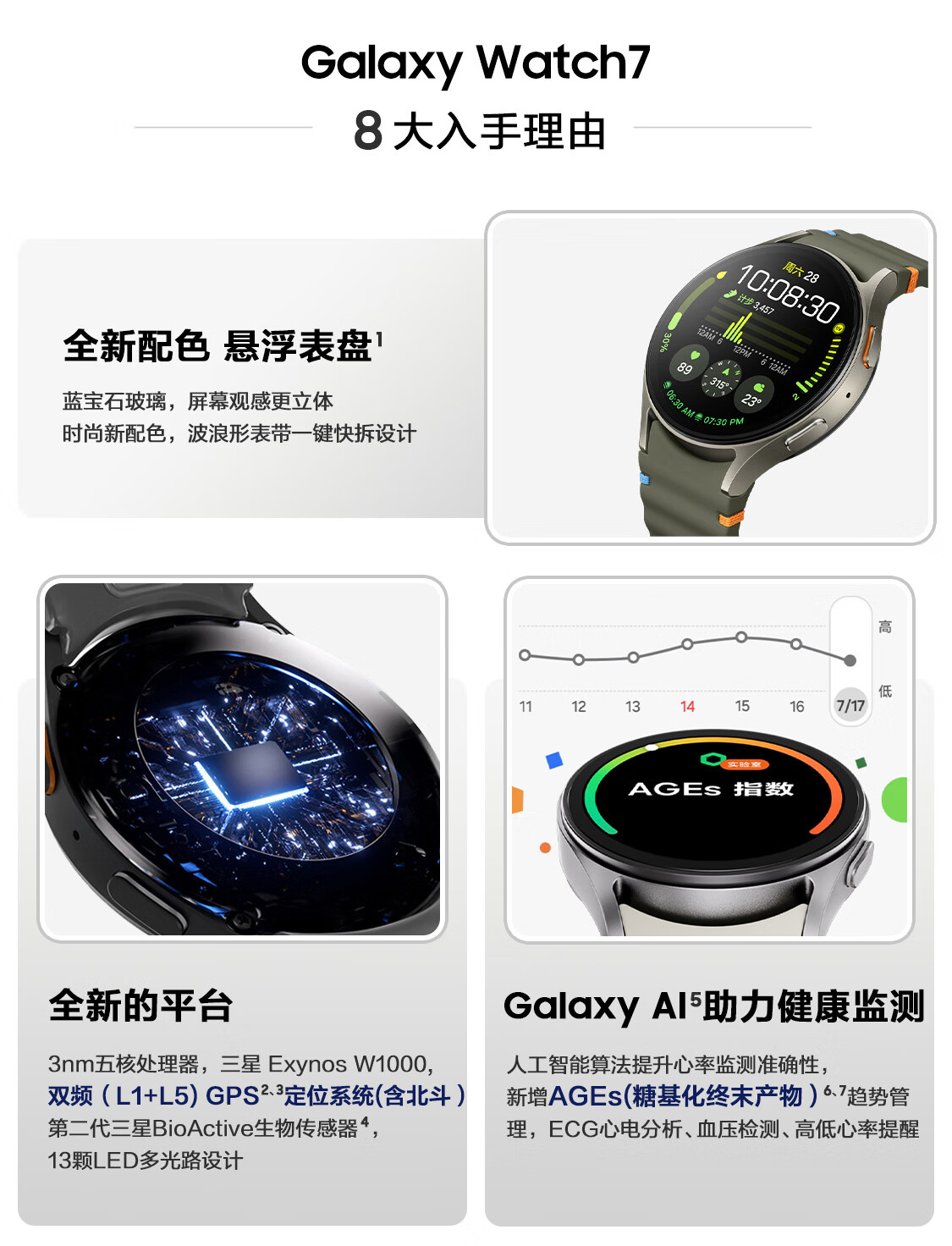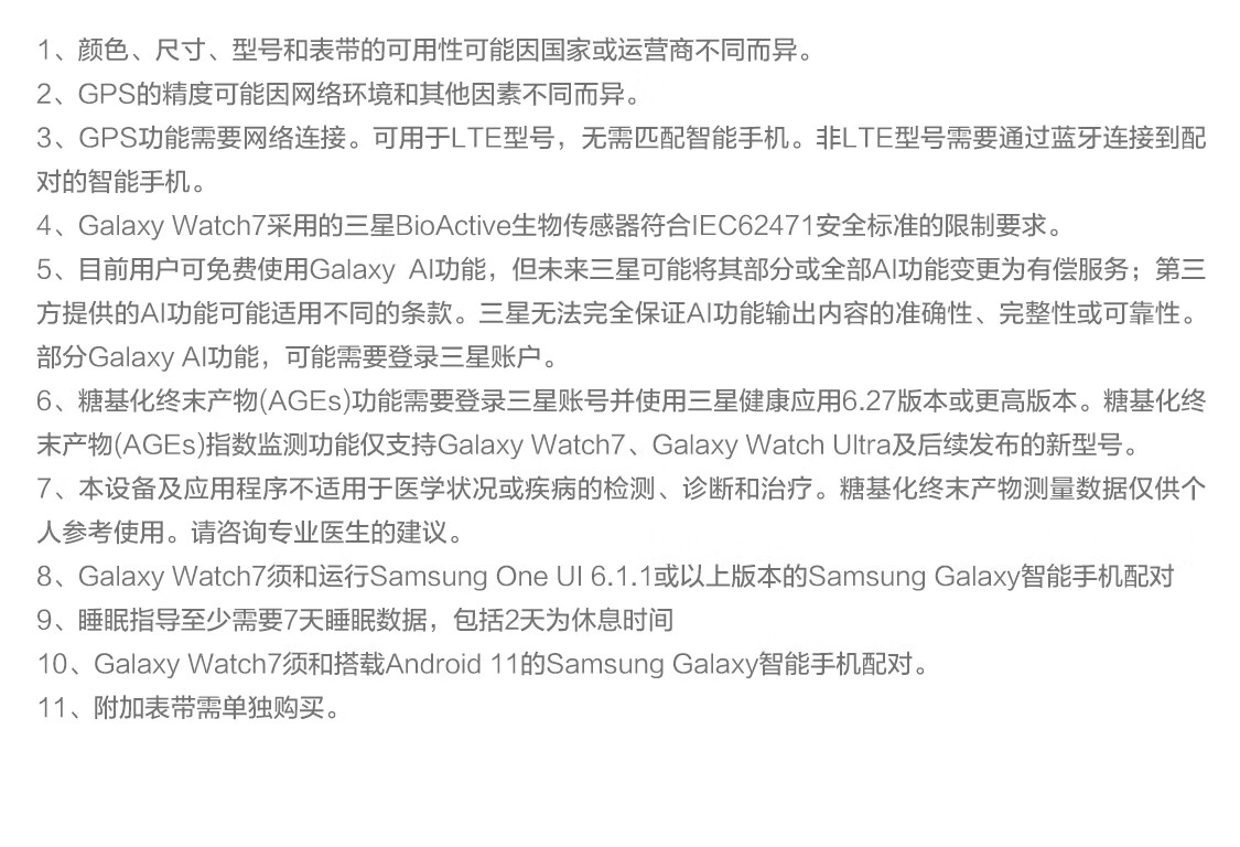 三星Galaxy Watch7 智能手表 单位:台 44mm; 蓝牙版; 幻羽银