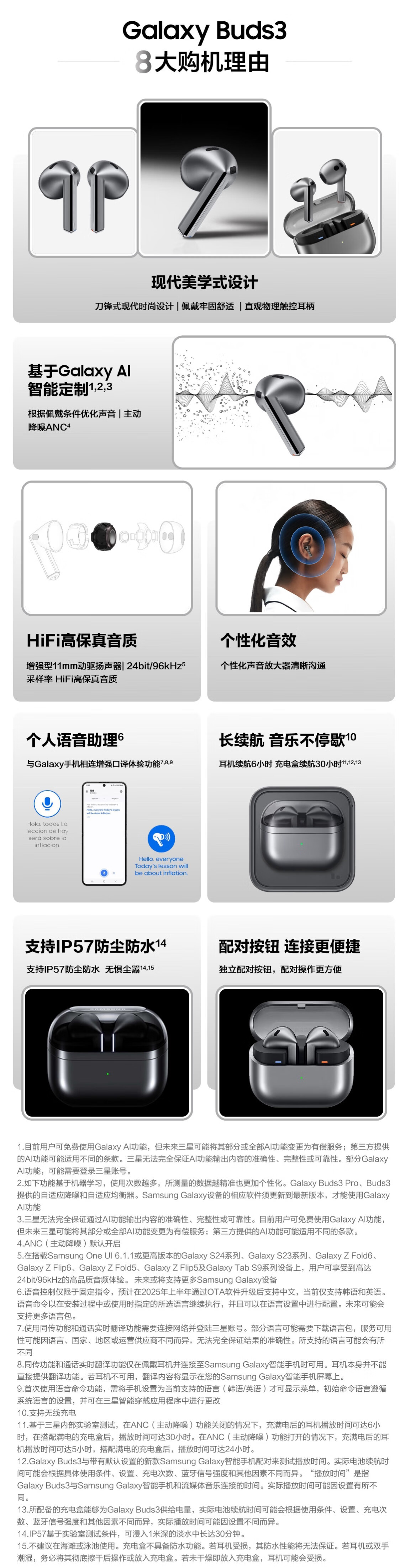 三星Galaxy Buds3 智能降噪无线耳机 单位:台 流沙白