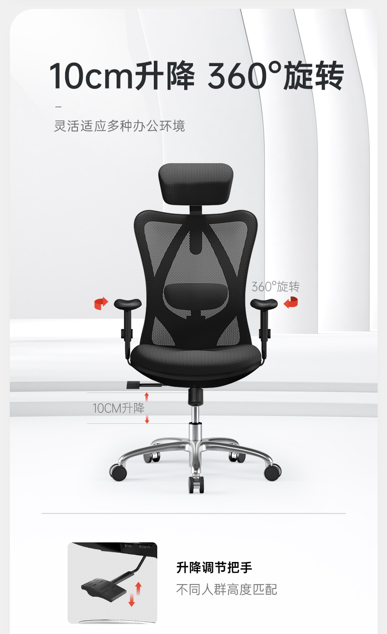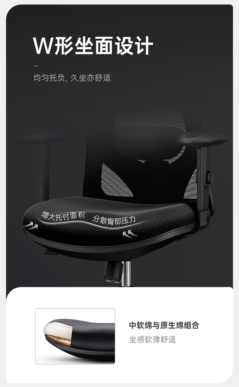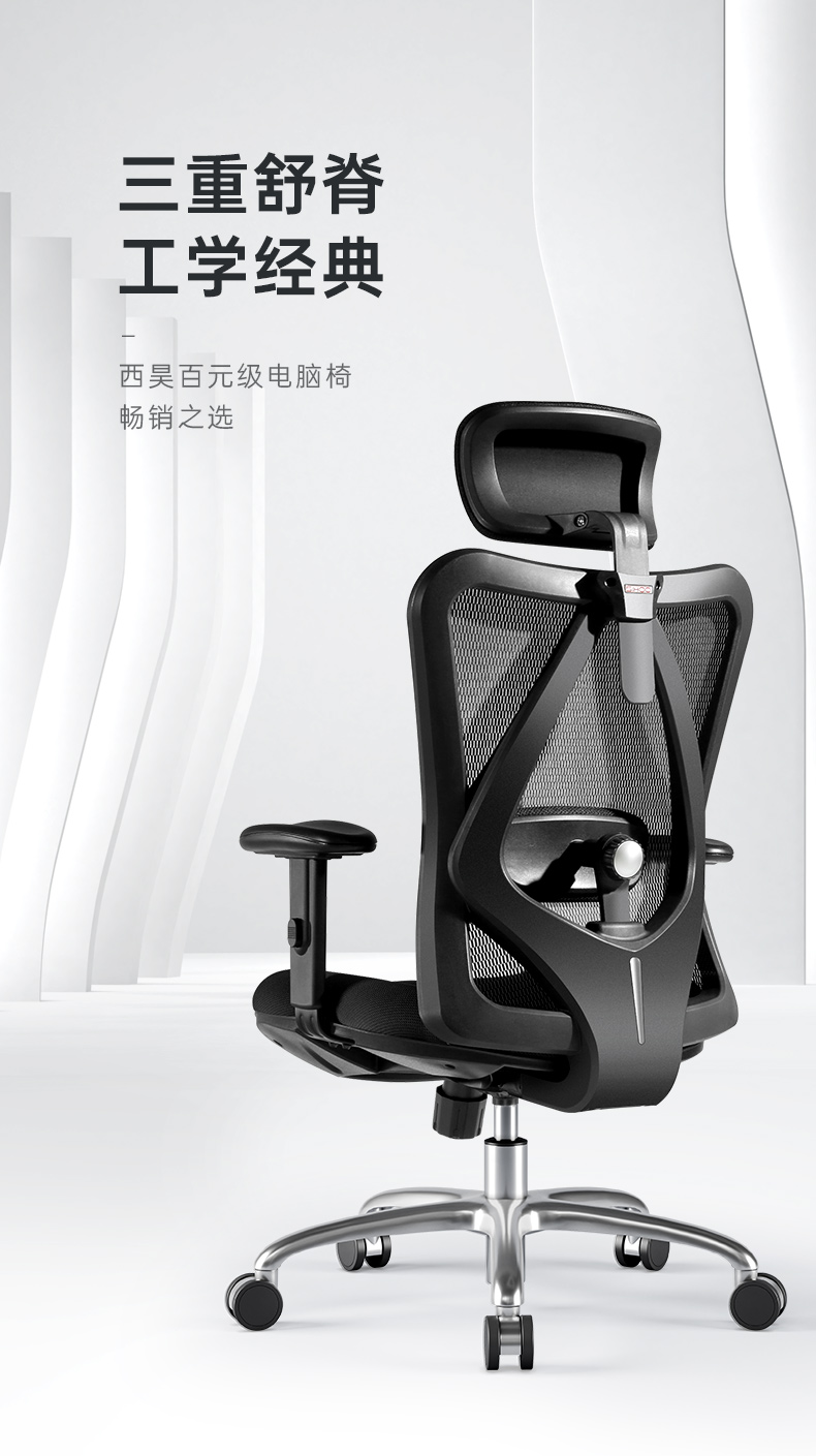 西昊 M18 人体工学电脑椅子家用人工力学座椅转椅撑腰护背办公椅 M18黑网单位:张 黑色