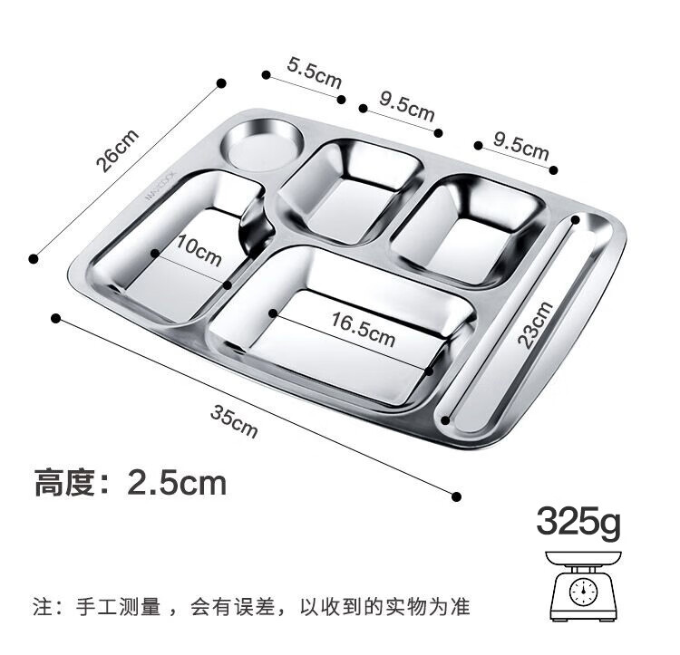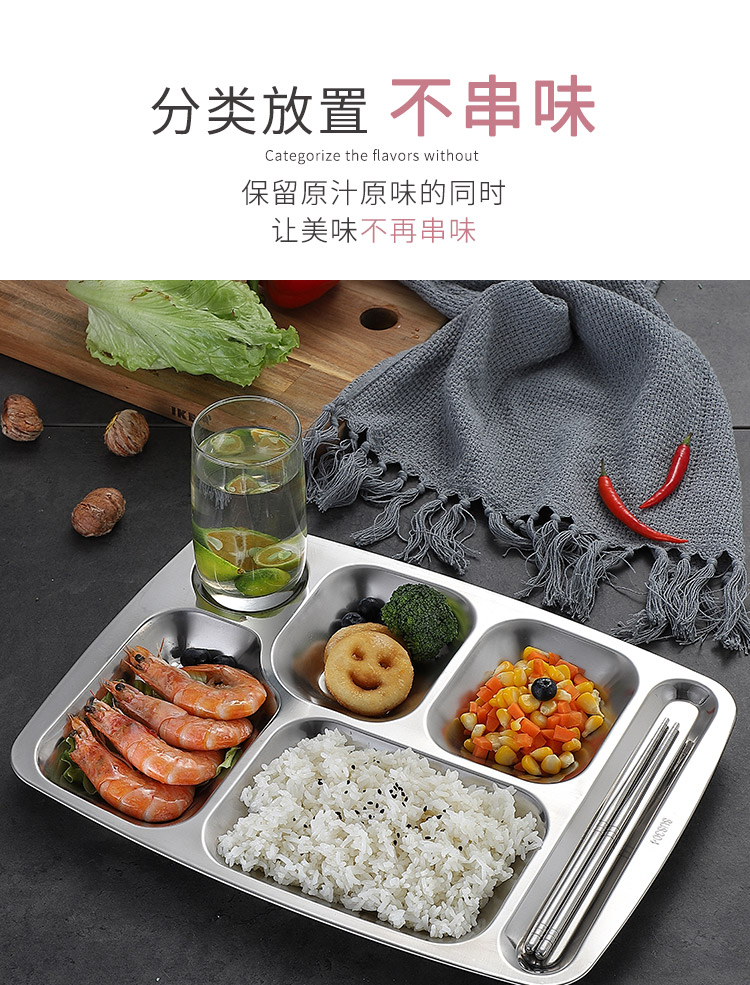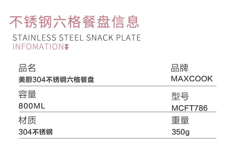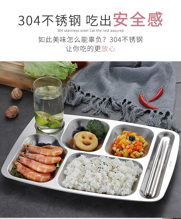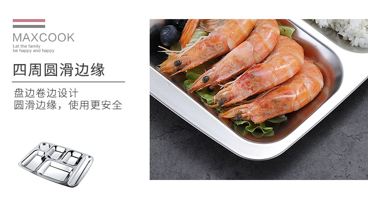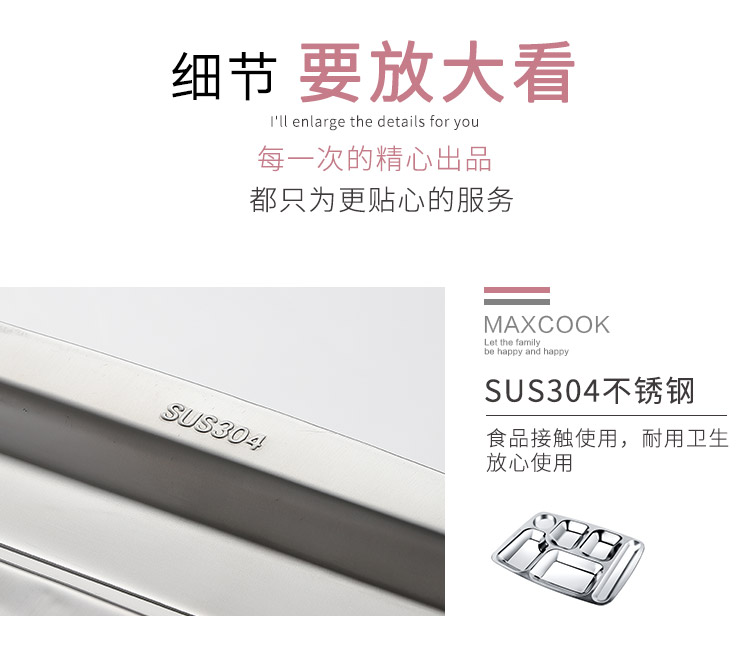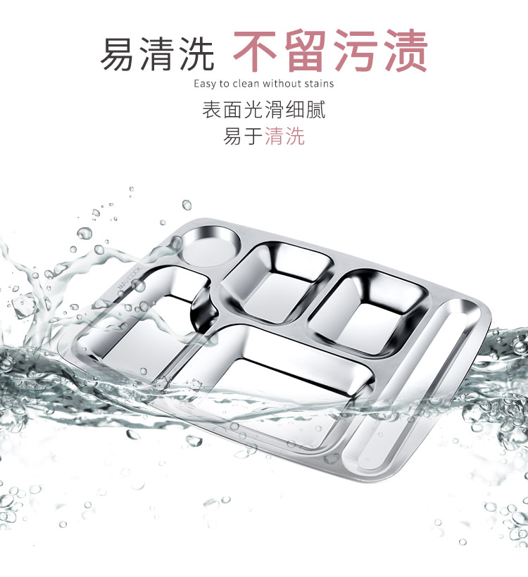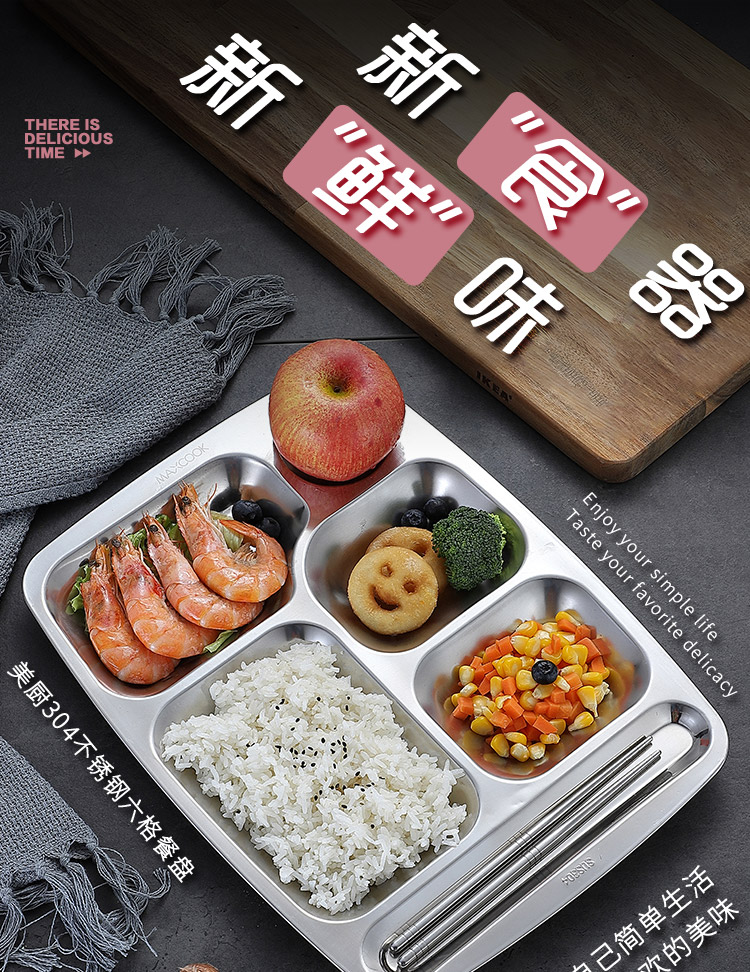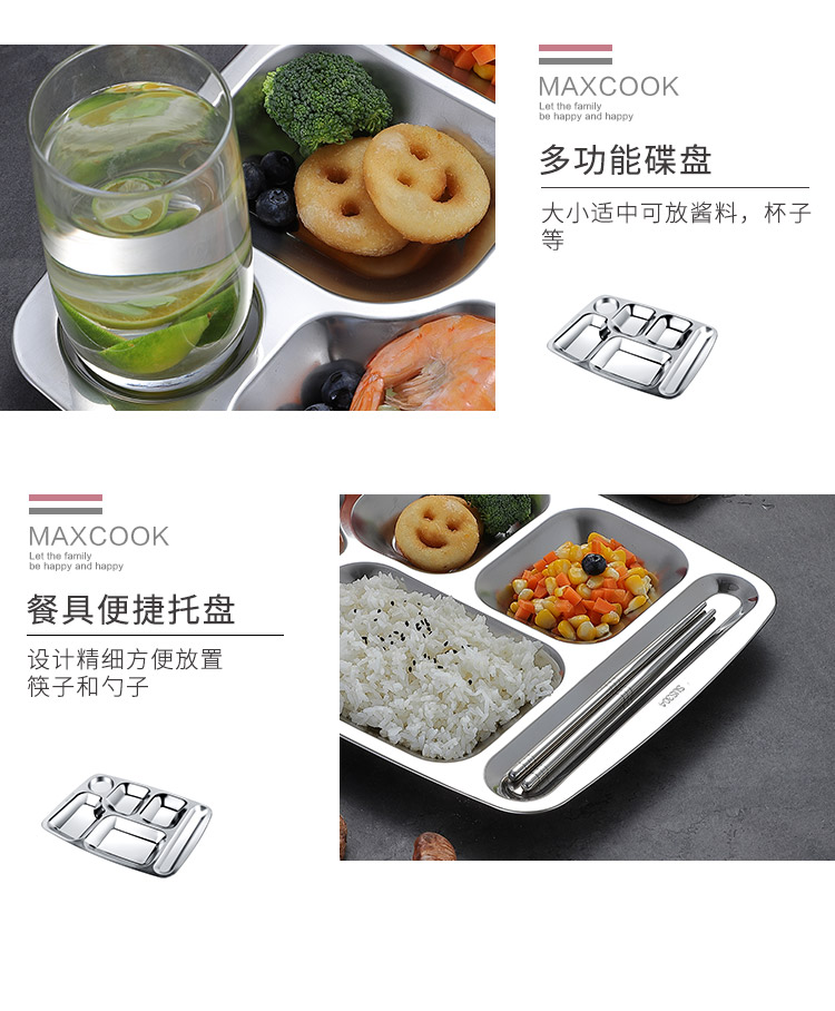 美厨 304不锈钢餐盘饭盒分格 快餐盘学生餐盒 六格大号加厚MCFT786 单位:个