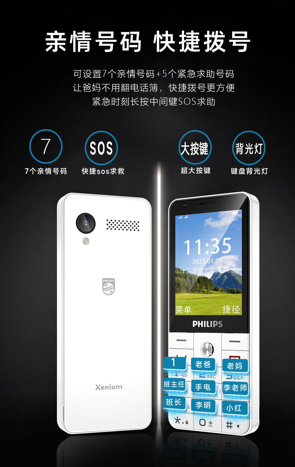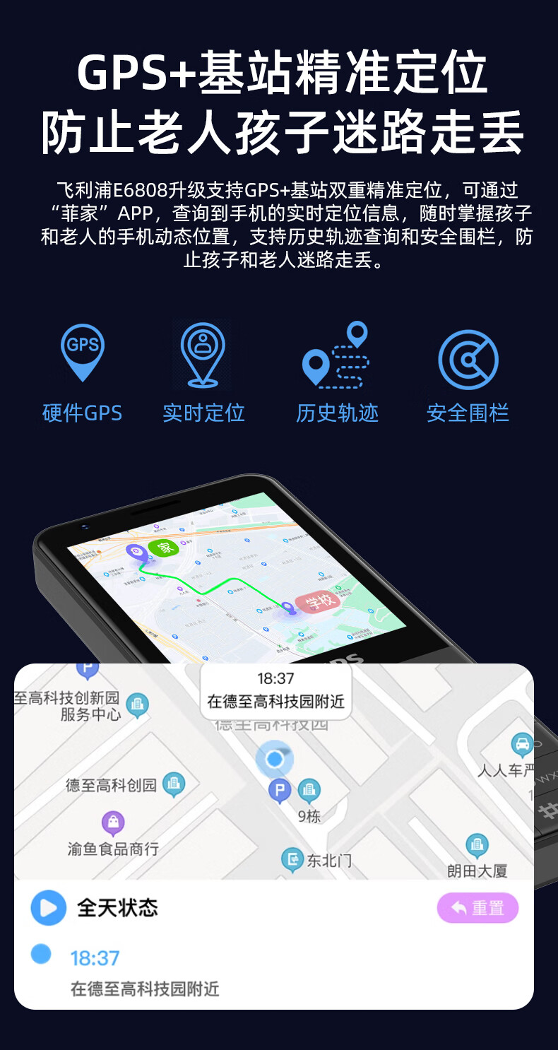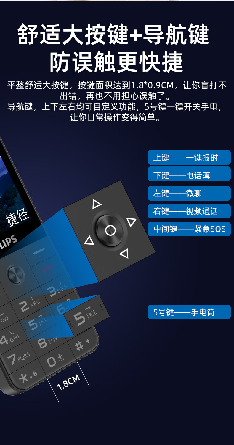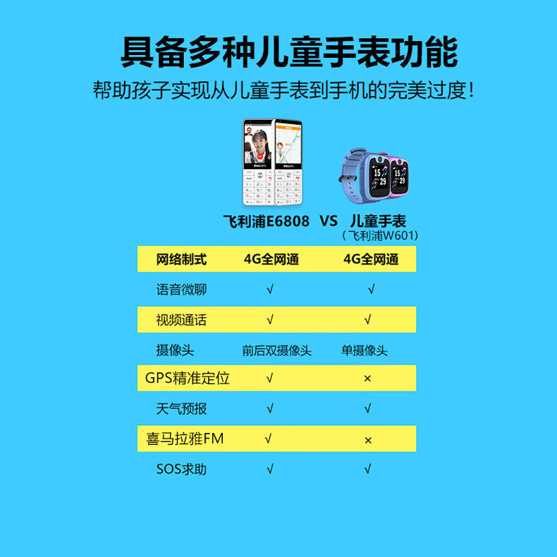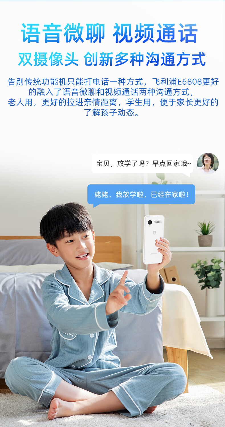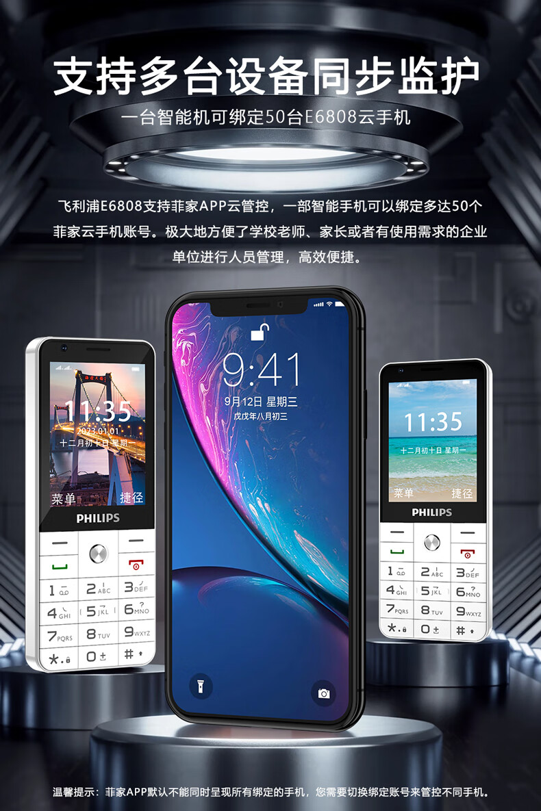飞利浦E6808 星空黑 4G全网通老人手机 超长待机双卡双待老年机 大屏大字大声单位:台 白色