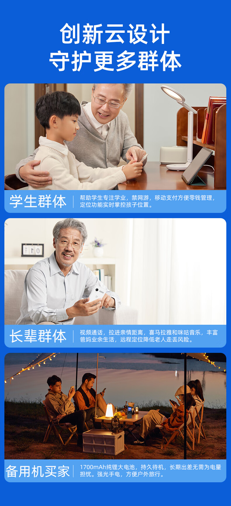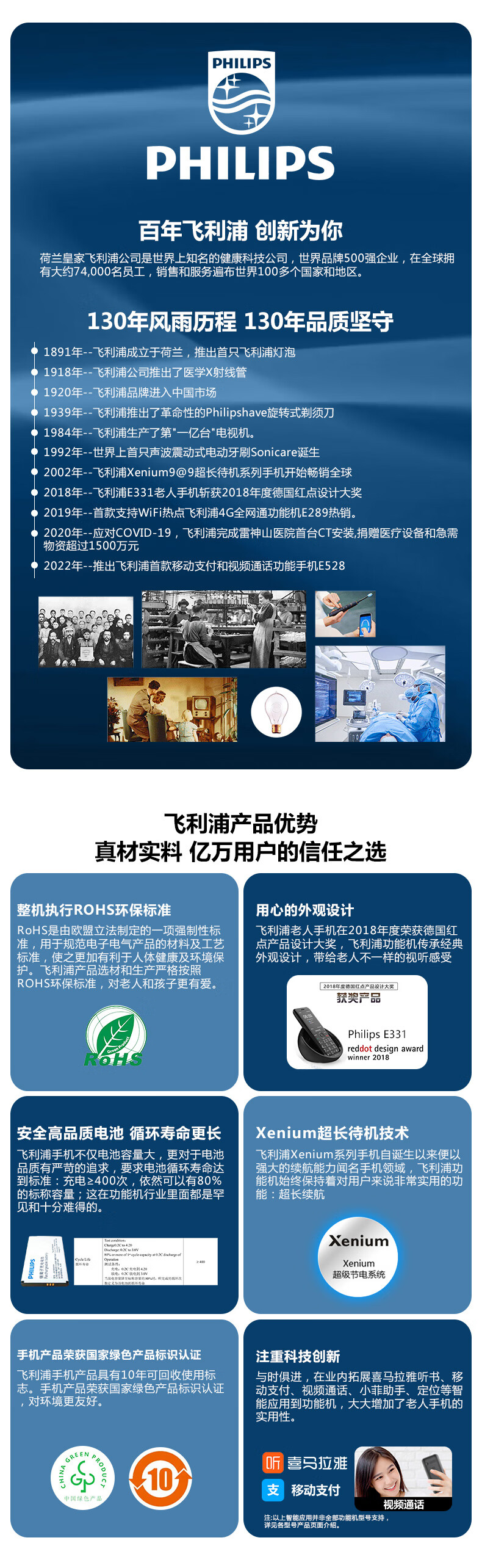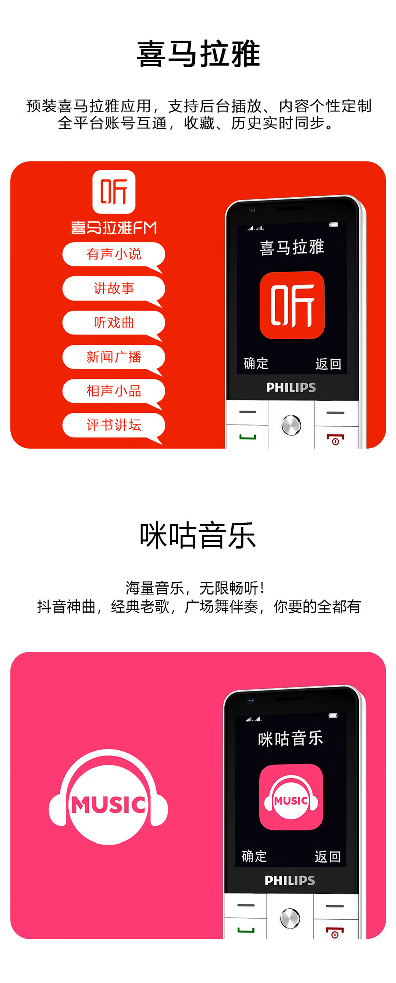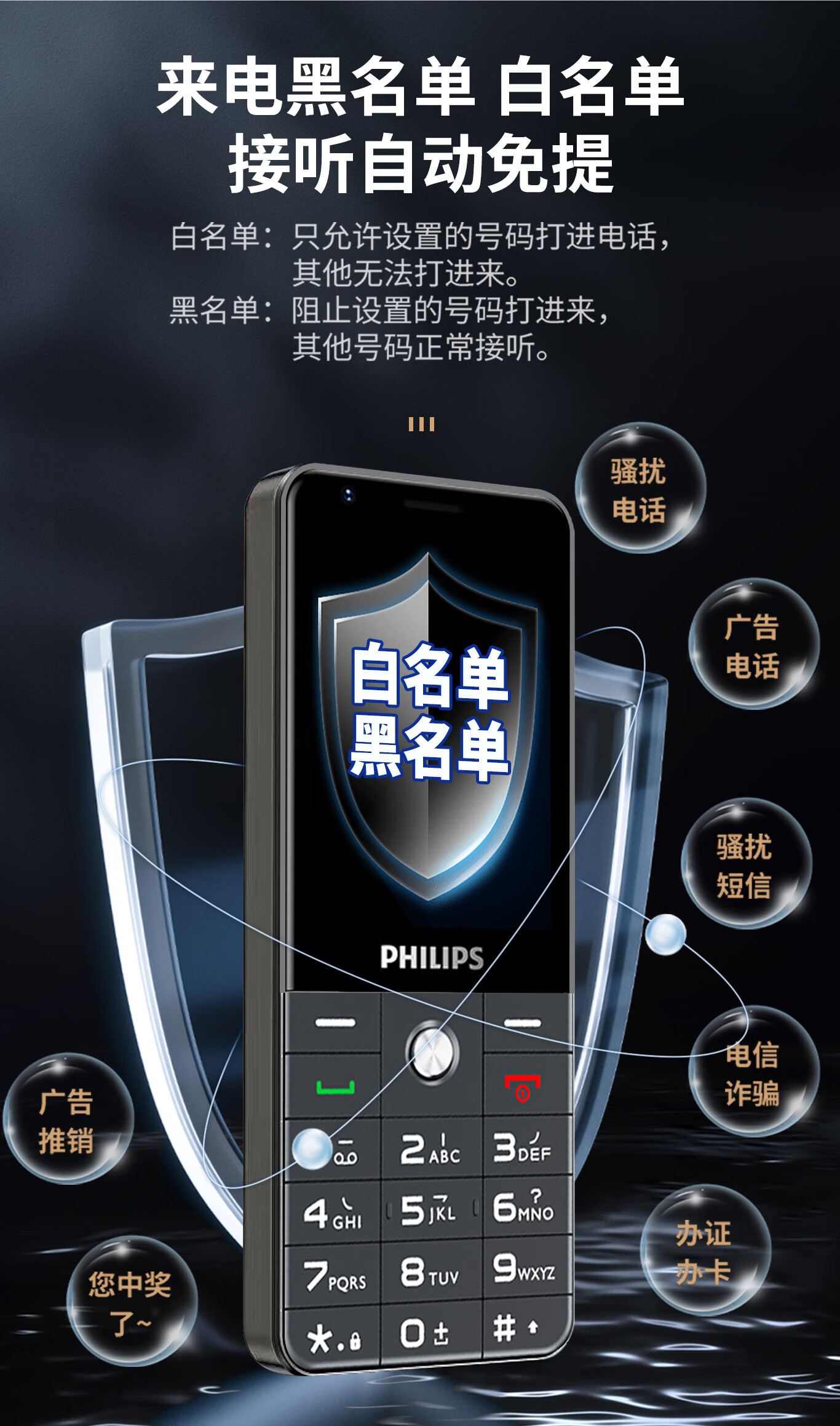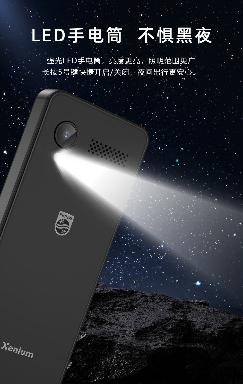 飞利浦E6808 星空黑 4G全网通老人手机 超长待机双卡双待老年机 大屏大字大声单位:台 白色