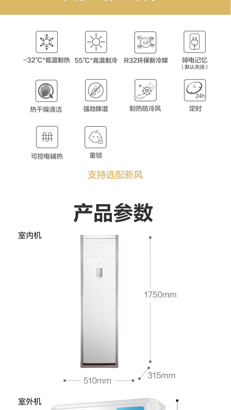 空调/美的/立式 单冷 变频 5匹 白色