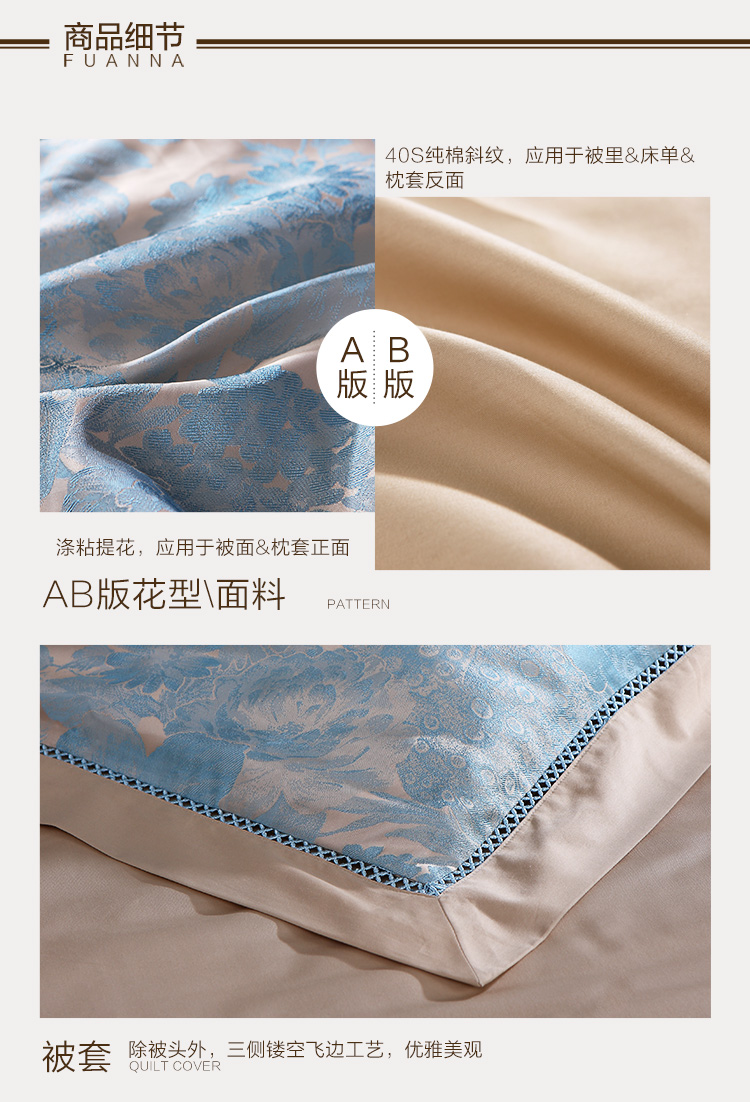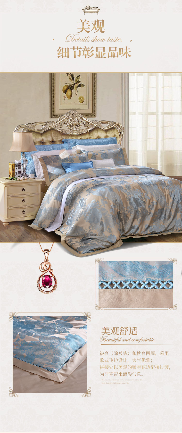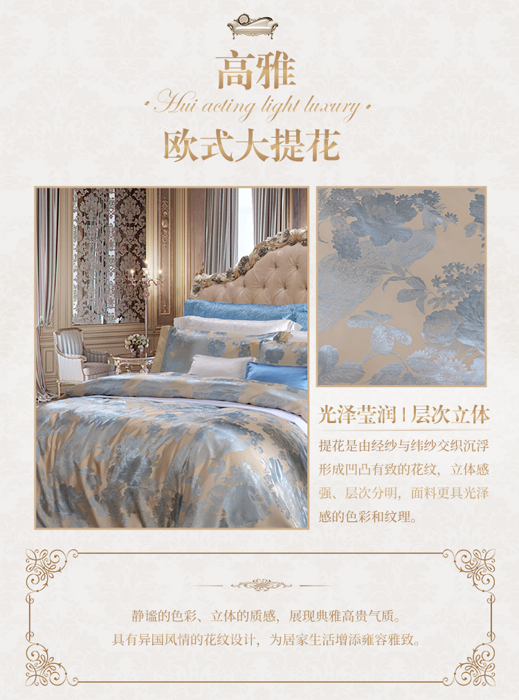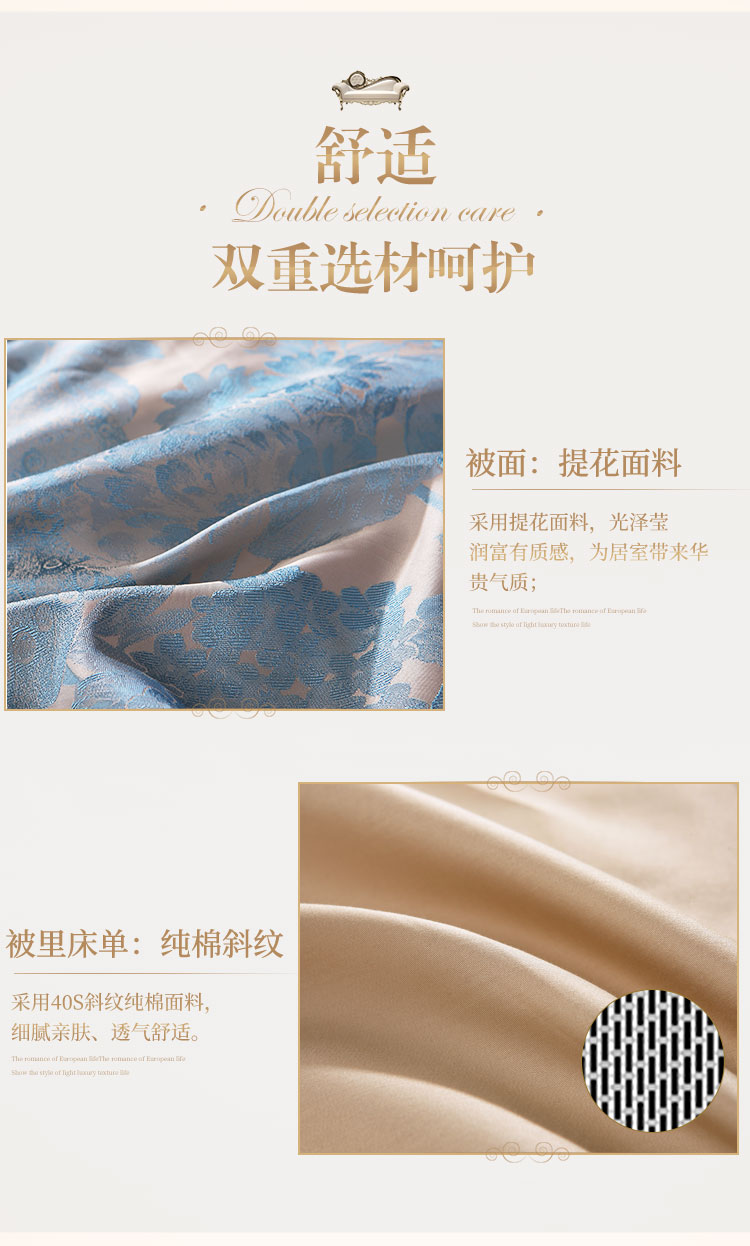 富安娜床上四件套南屏雀舞大提花欧式轻奢套件纯棉床单被套单人双人203*229cm(床) 宝石蓝