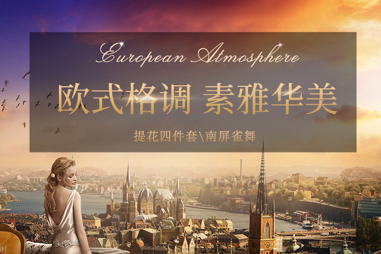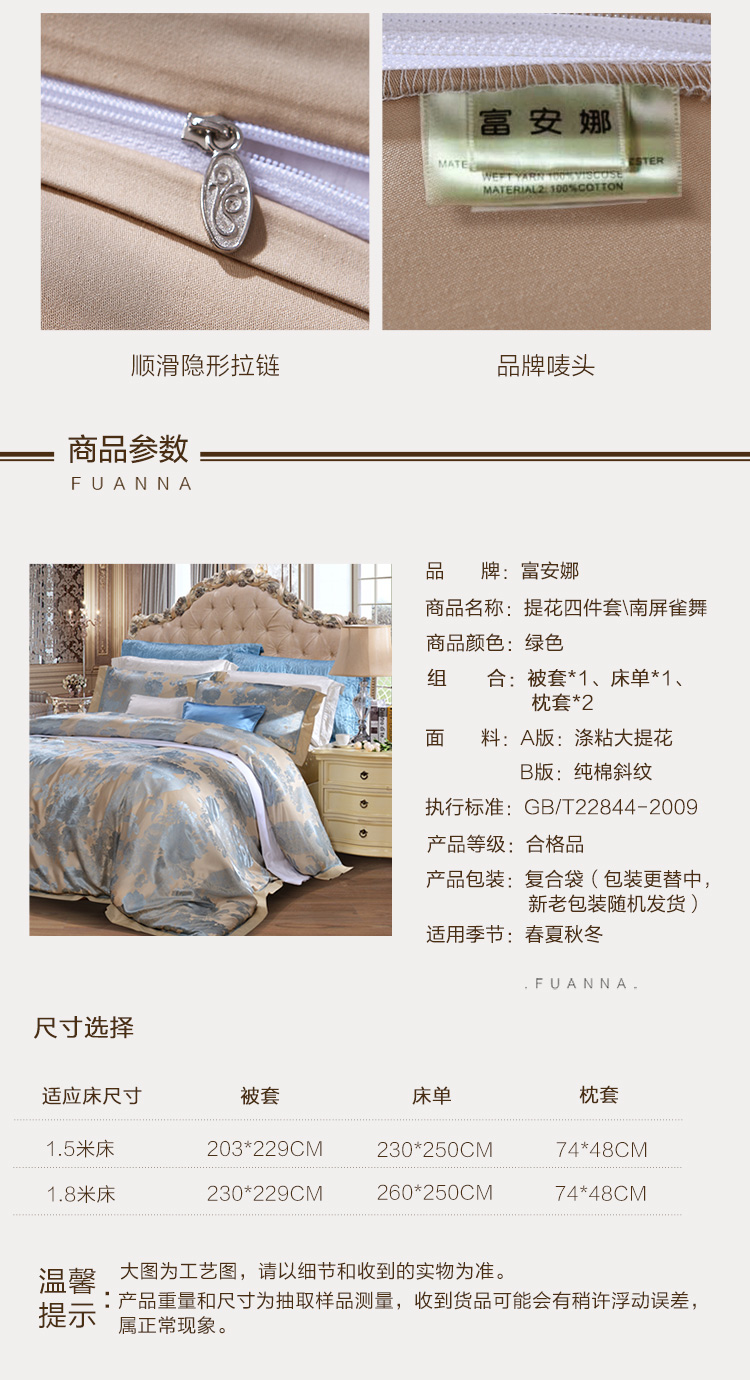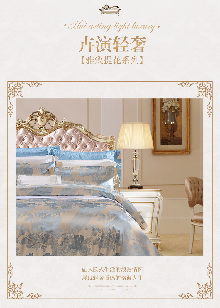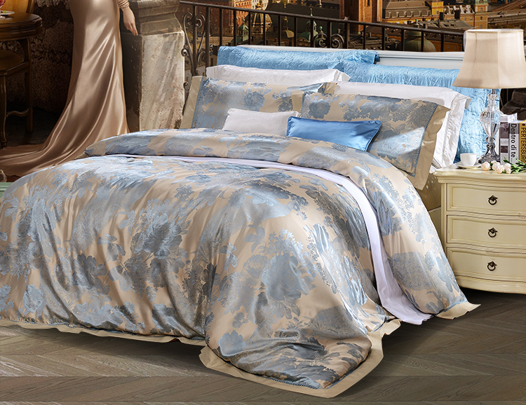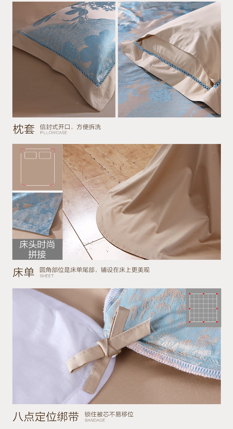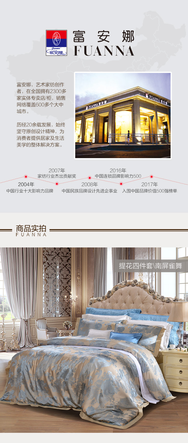 富安娜床上四件套南屏雀舞大提花欧式轻奢套件纯棉床单被套单人双人203*229cm(床) 宝石蓝
