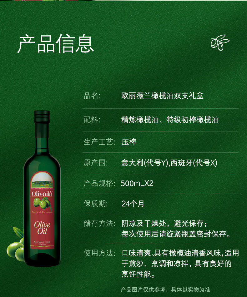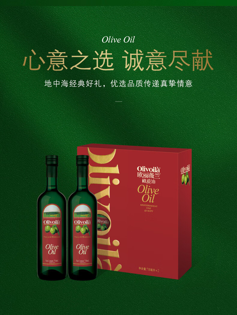 欧丽薇兰橄榄油冷榨500mL×2礼盒(单位:盒) 酒红