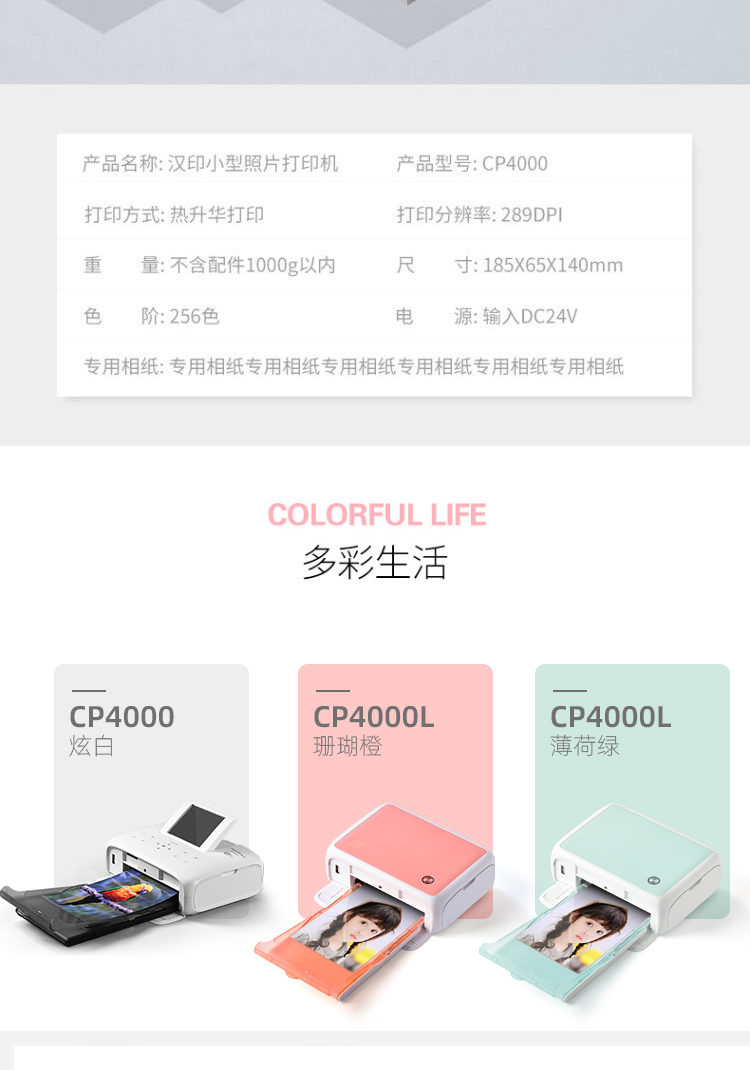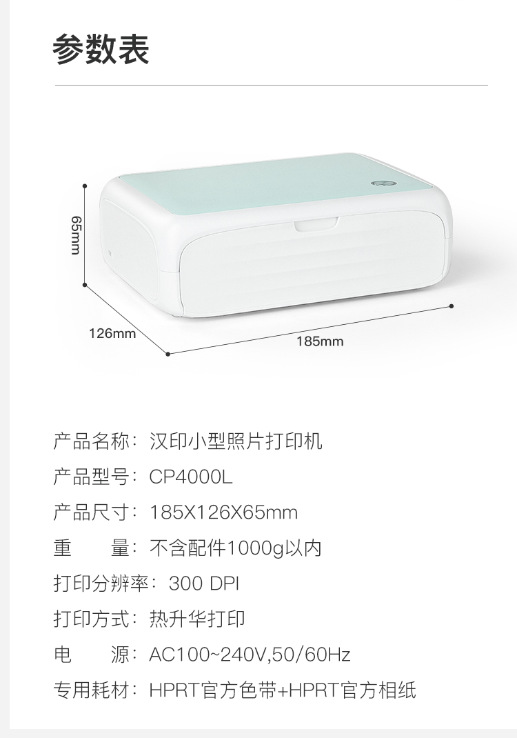 汉印(HPRT) CP4100家用小型手机相片打印机拍立得洗照片彩色家庭便携式迷你冲印机口袋学生1台(裸机) 白色