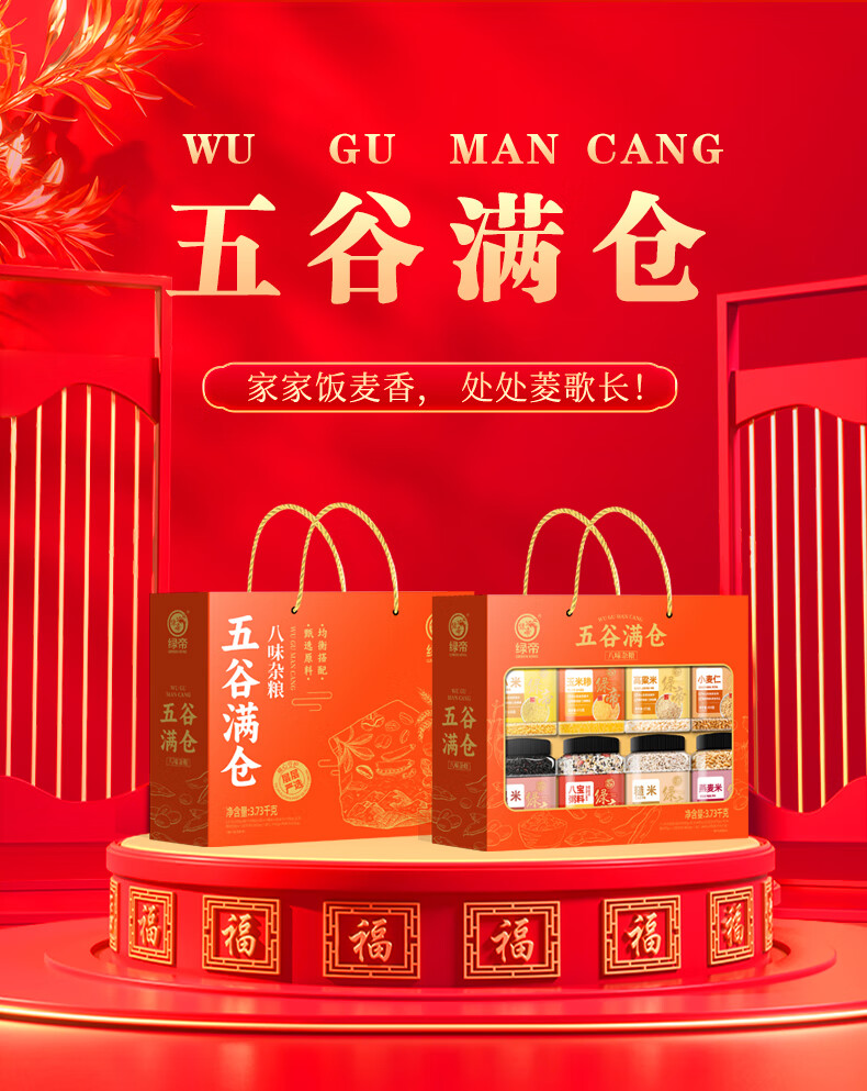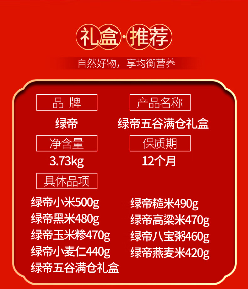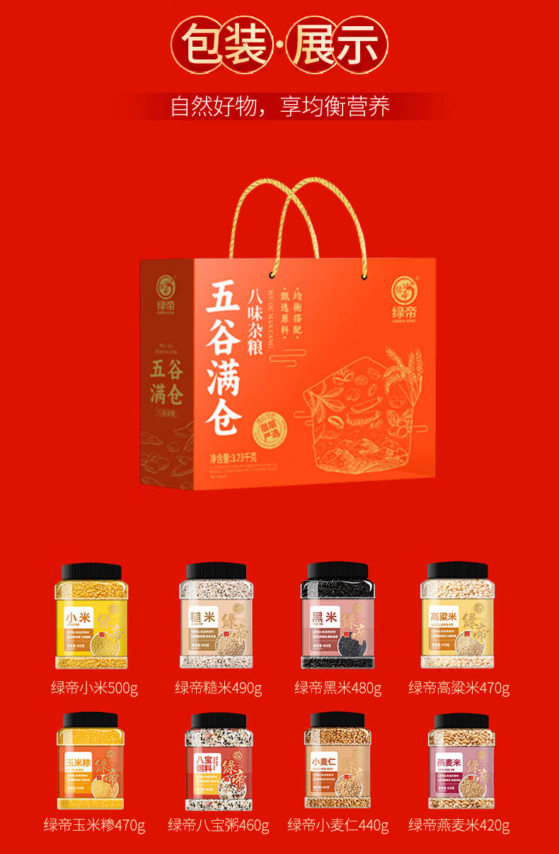 绿帝(GREEN KING)五谷满仓杂粮礼盒3.73KG(单位:盒) 灰橙色