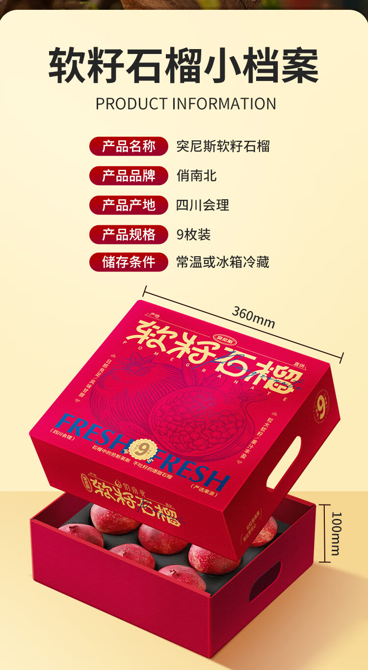 俏南北突尼斯软籽石榴礼盒(9枚装)(单位:盒) 红色
