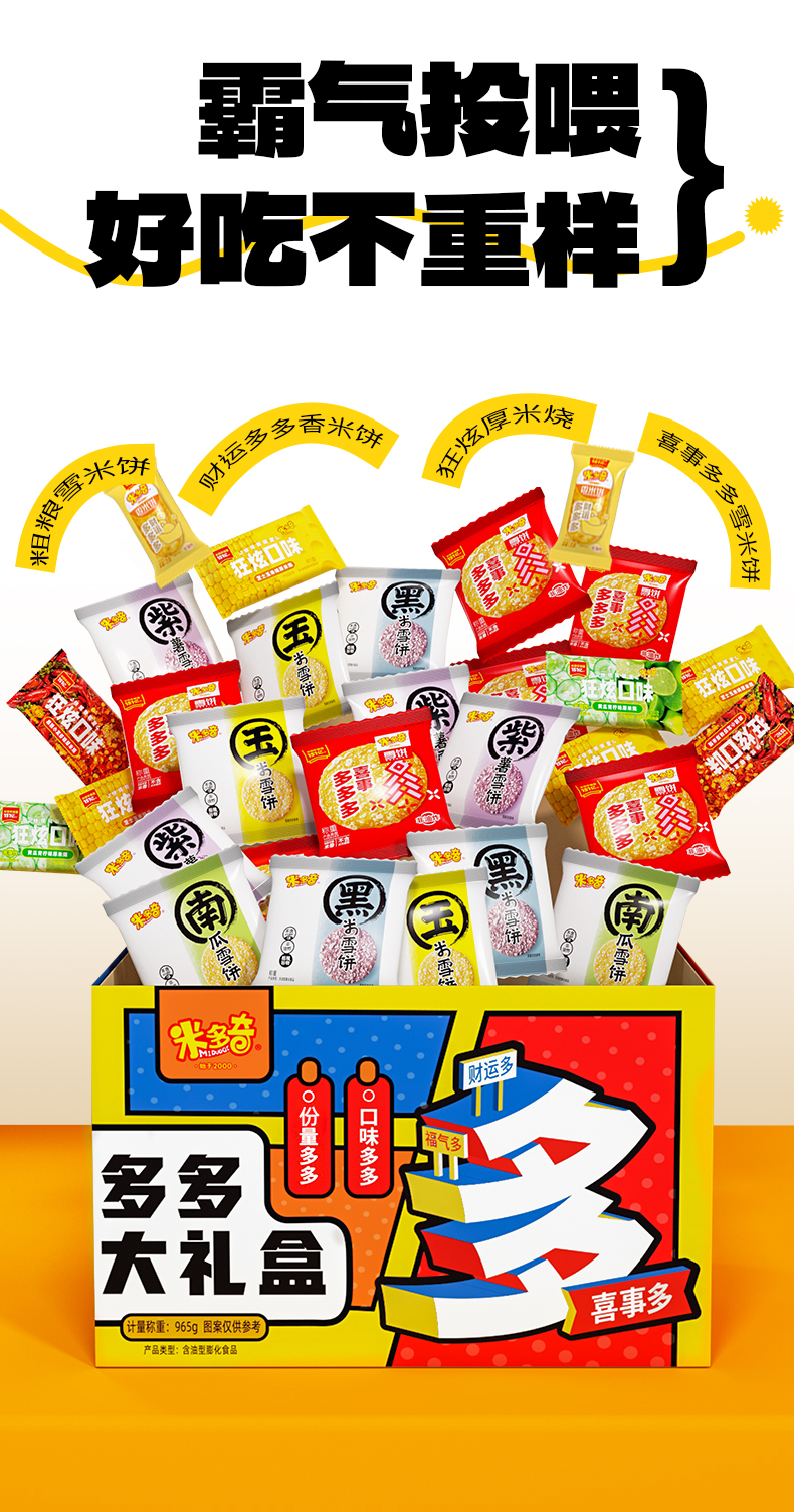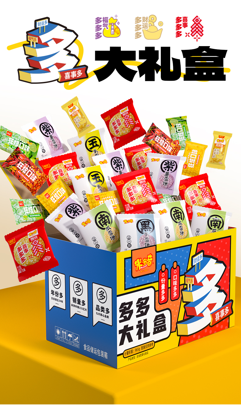 米多奇+多综合礼盒965g(粗粮米饼+厚米烧+财运多多+喜事多多)-100包-多综合礼盒(单位:盒) 蓝色