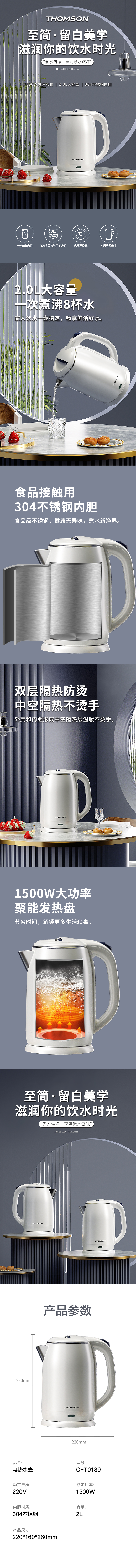 汤姆逊(THOMSON)电热水壶C-T0189 2L(单位:台) 白色