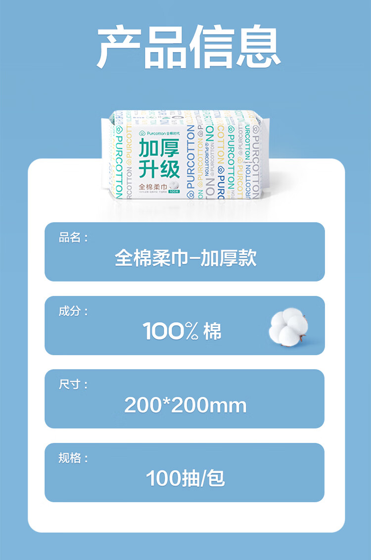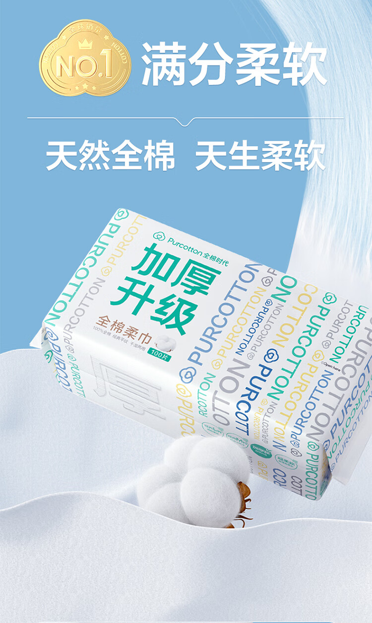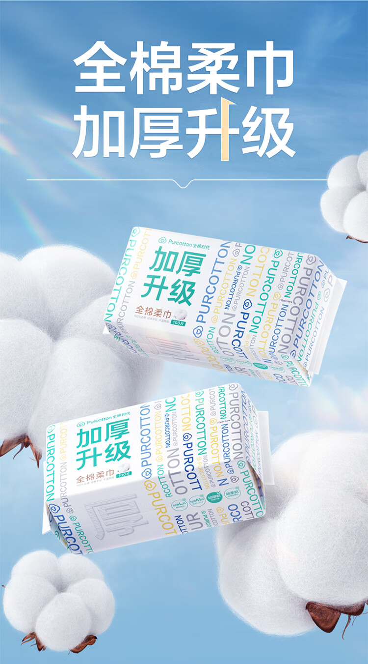 全棉时代 加厚款 100抽*4包 洗脸巾 白色(单位:提)
