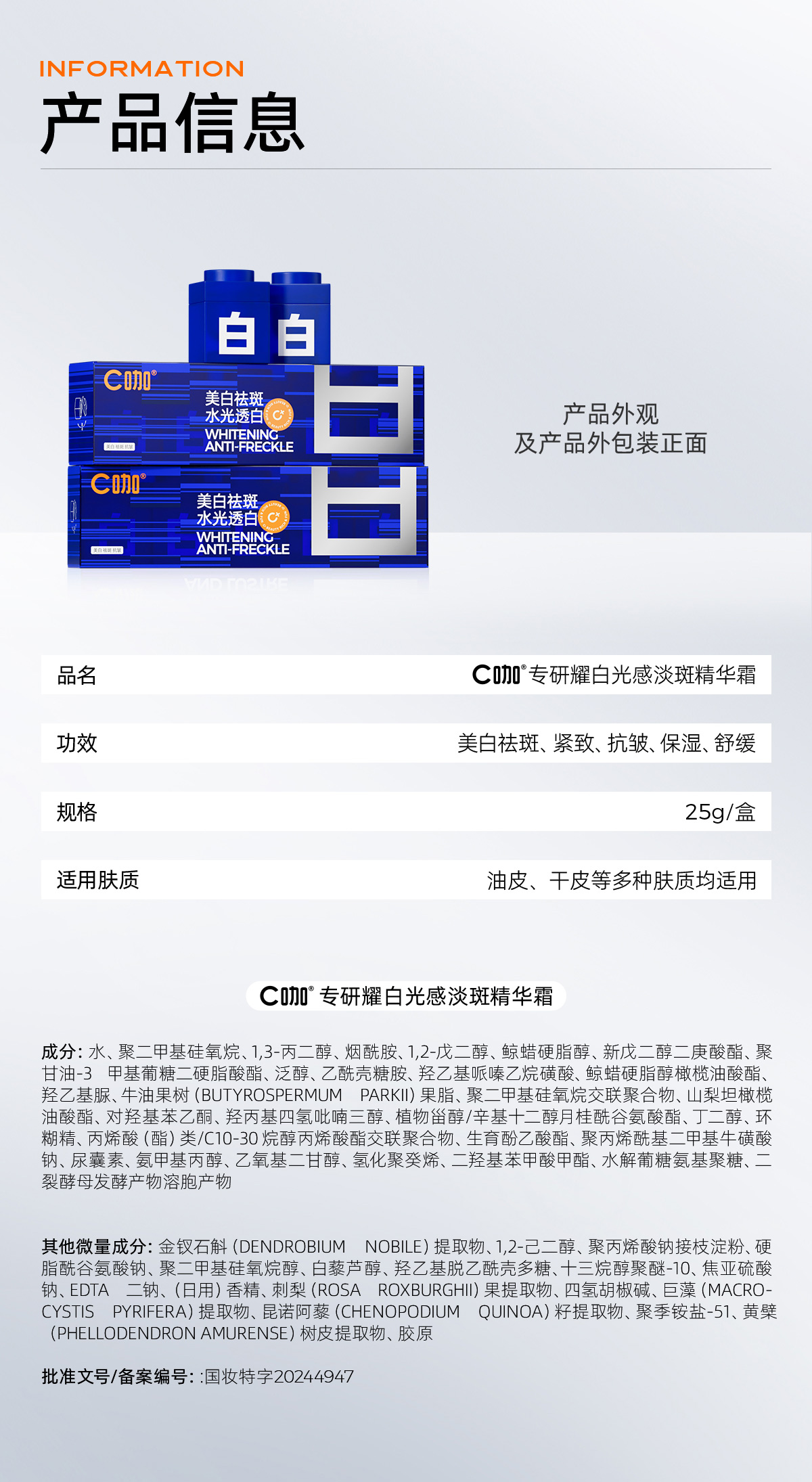 C咖专研耀白光感淡斑精华霜5g*5罐(单位:盒) 幻影蓝