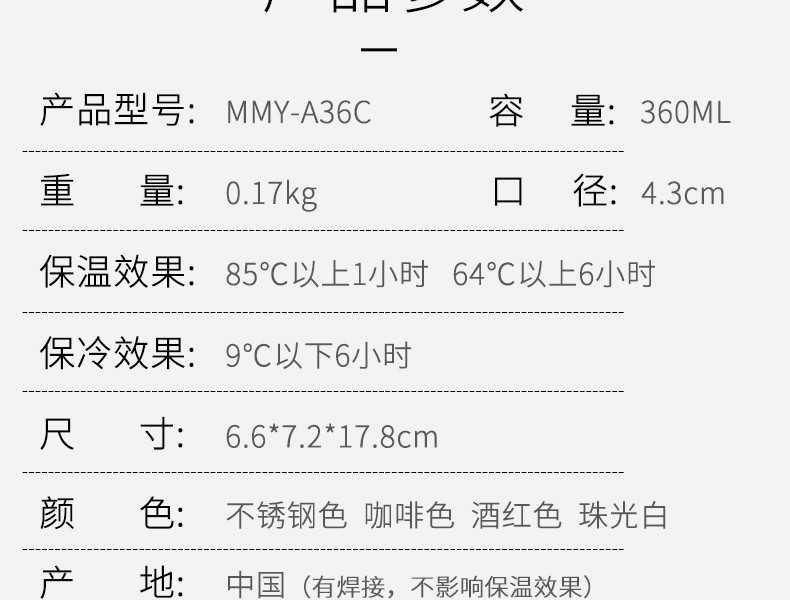虎牌(TIGER) MMY-A36C 360ML 保温杯 酒红色(单位:只)