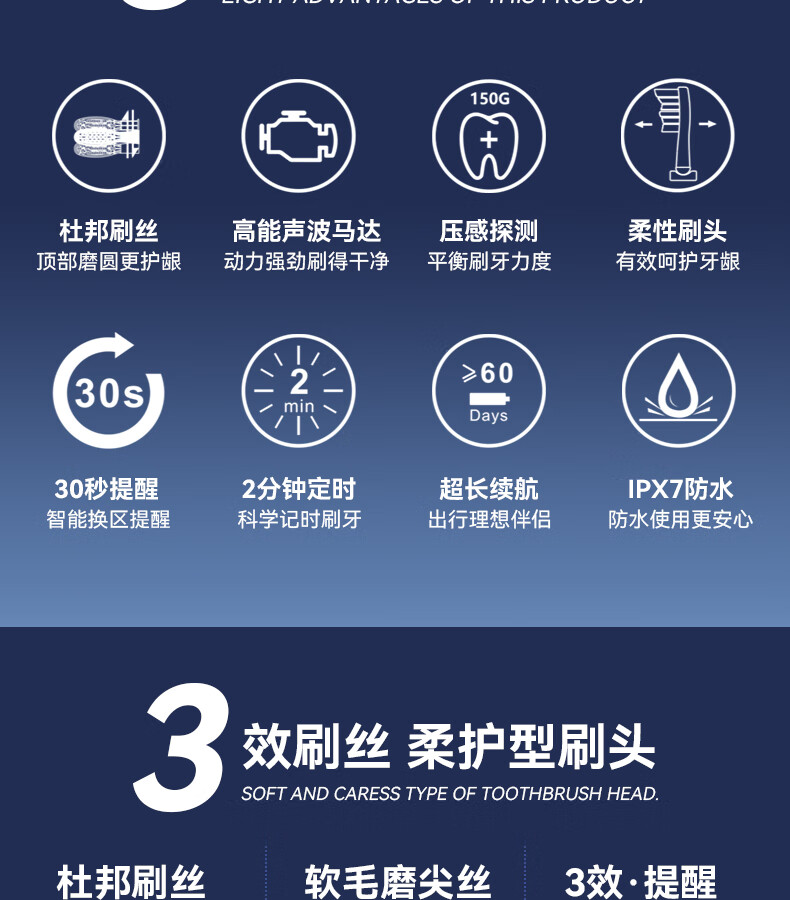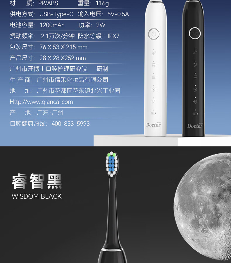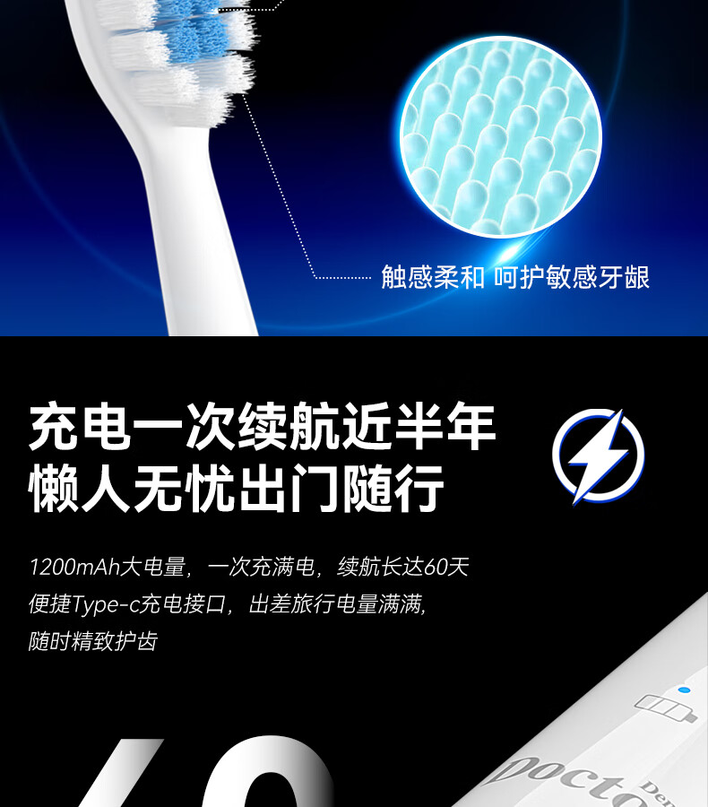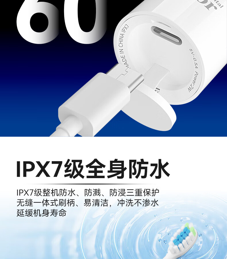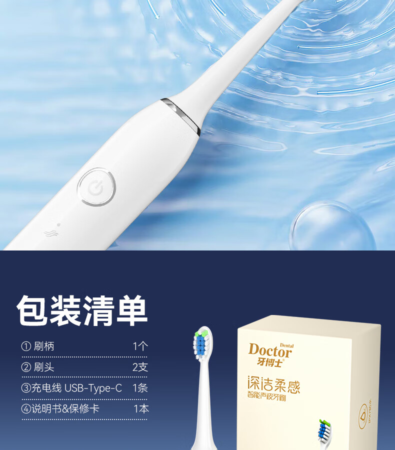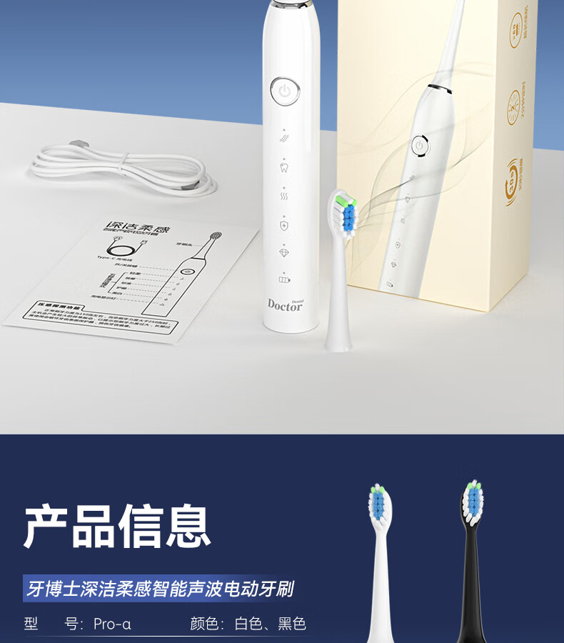 牙博士 Pro-a电动牙刷 IPX7 轻柔震感,舒适清洁 白色(单位:支)