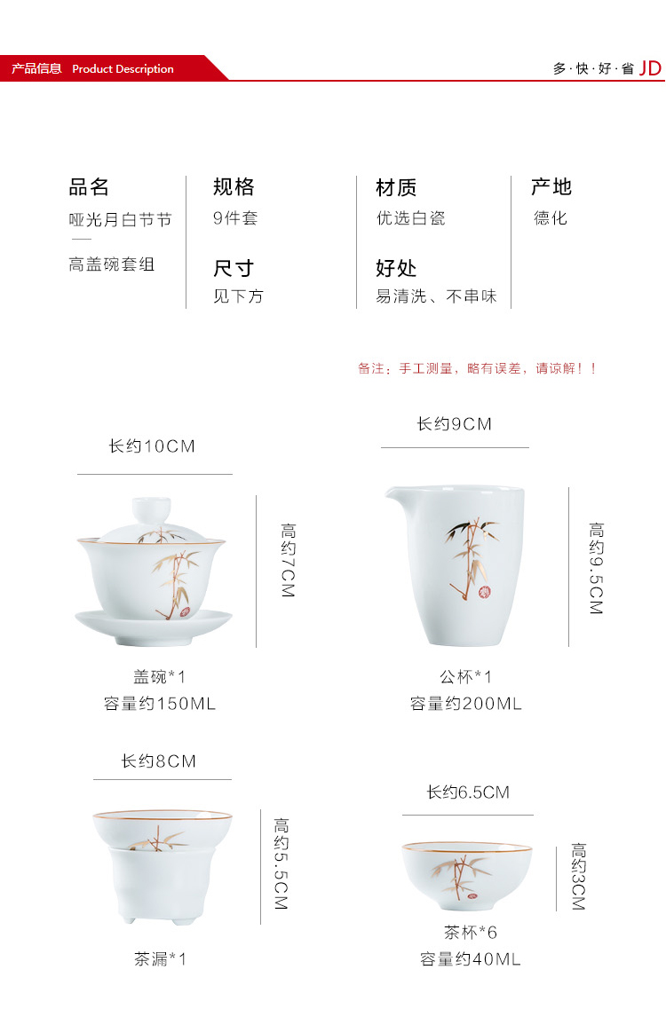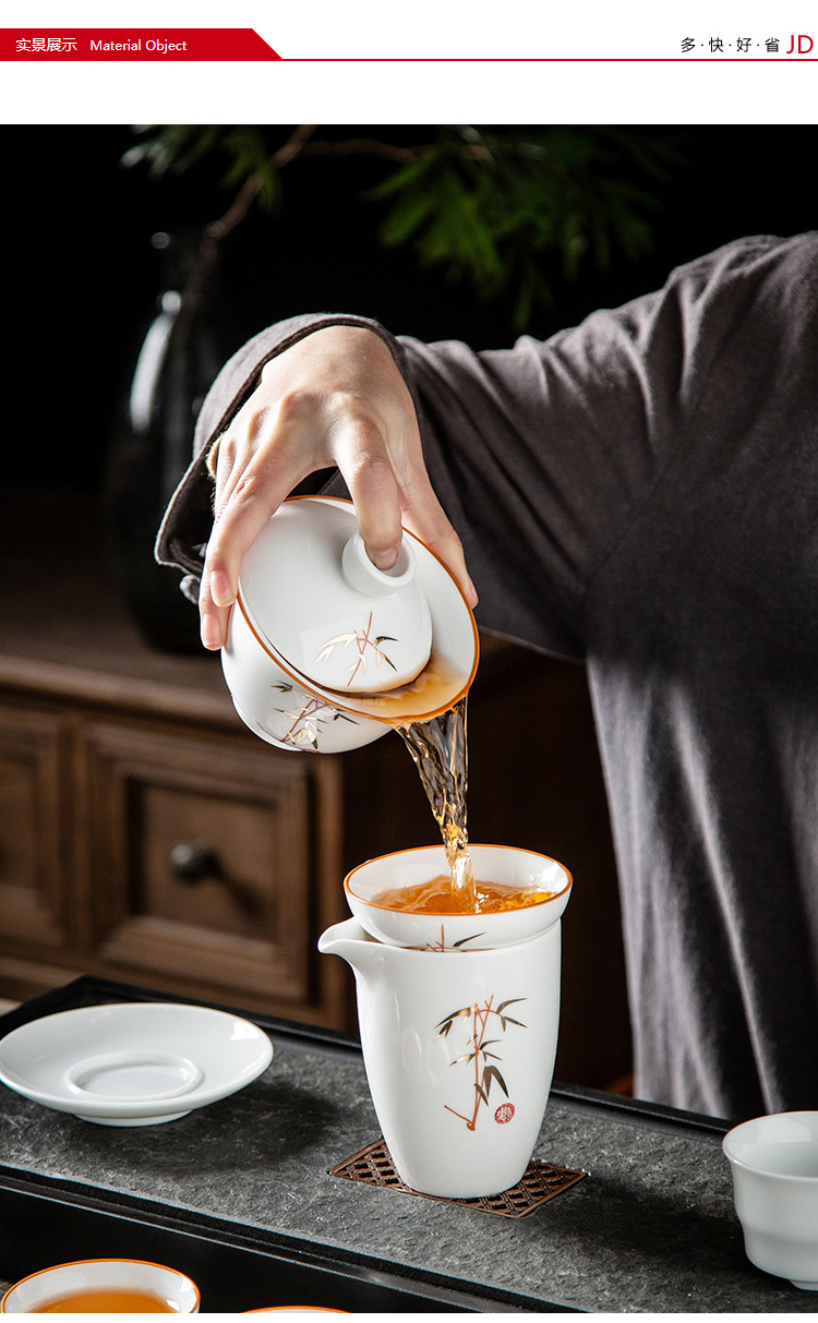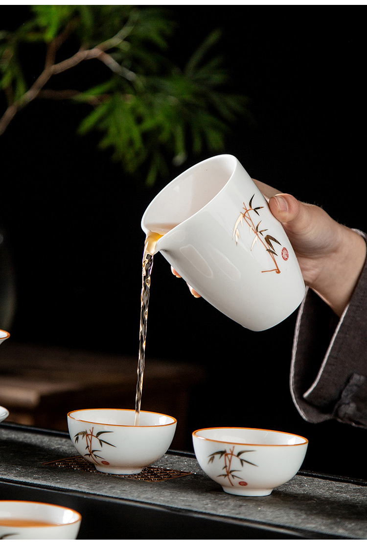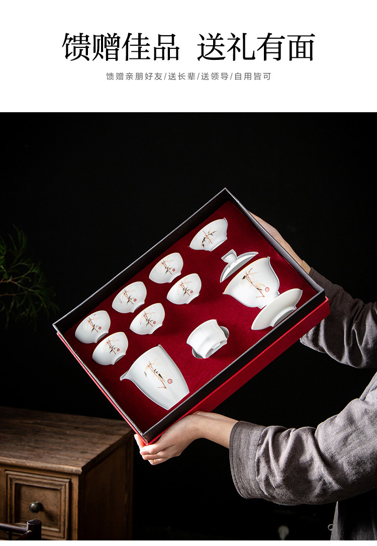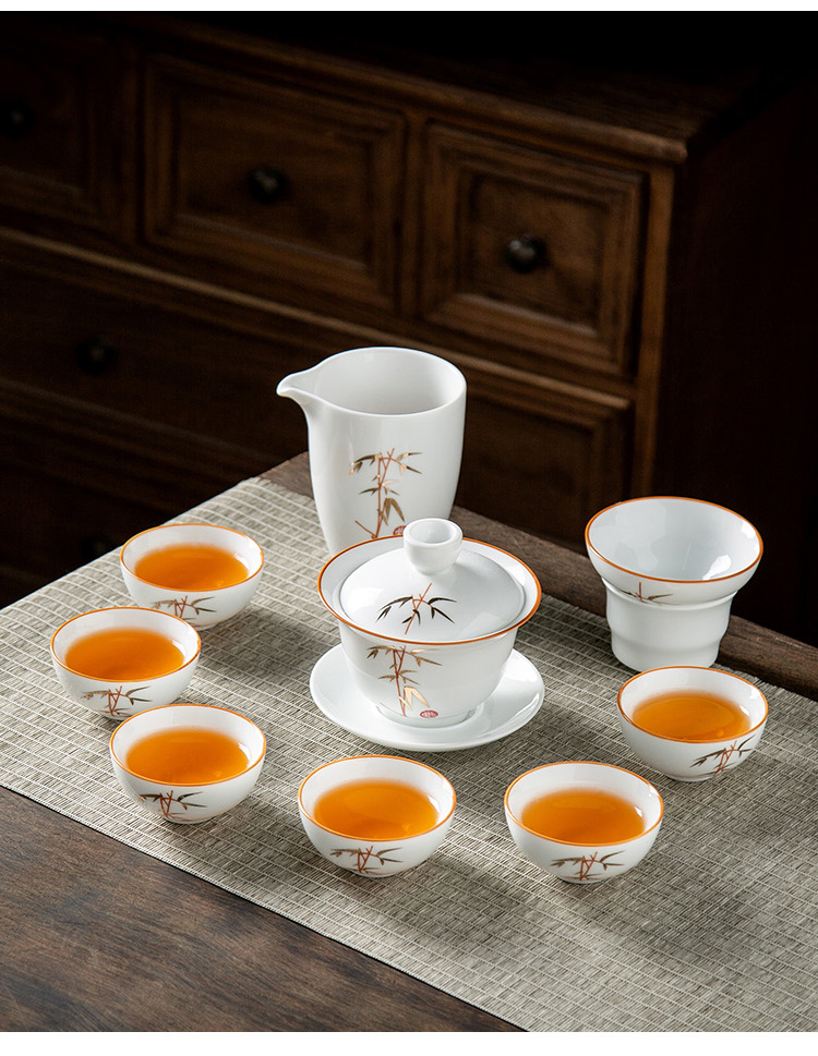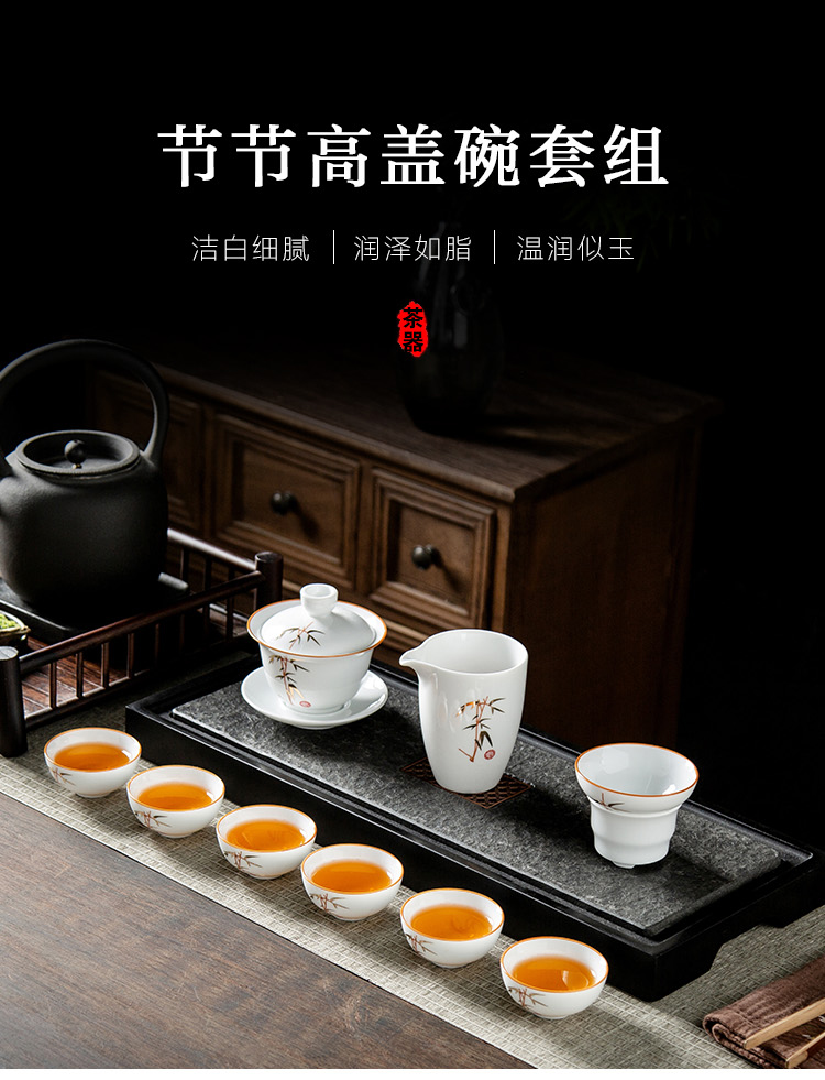 金镶玉 竹节茶具 10件套 陶瓷茶具 白色(单位:套)