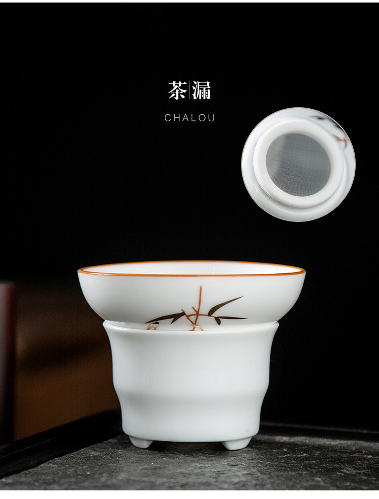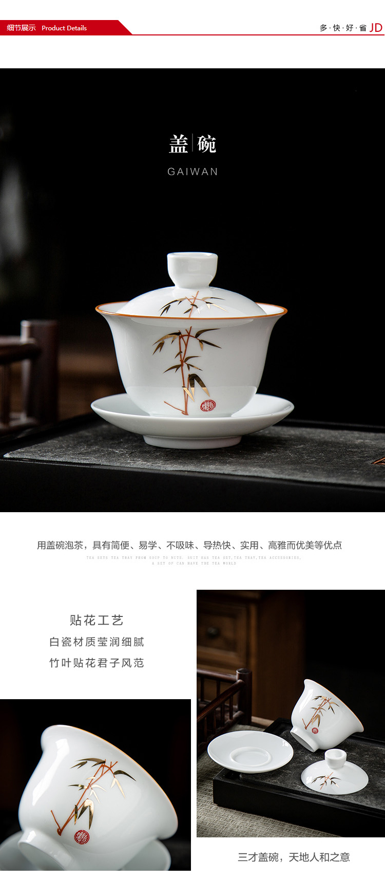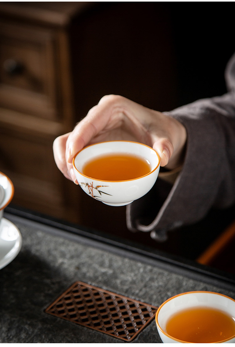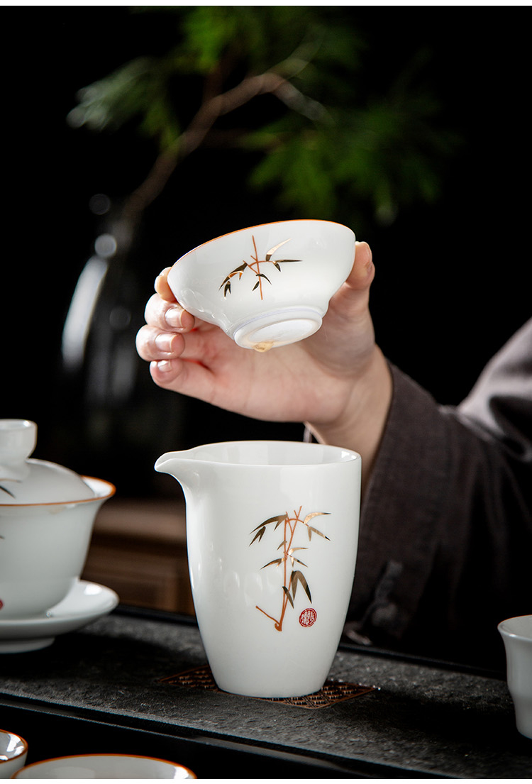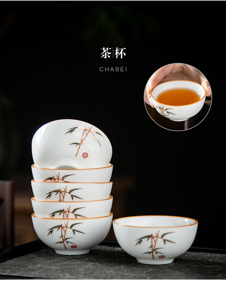 金镶玉 竹节茶具 10件套 陶瓷茶具 白色(单位:套)