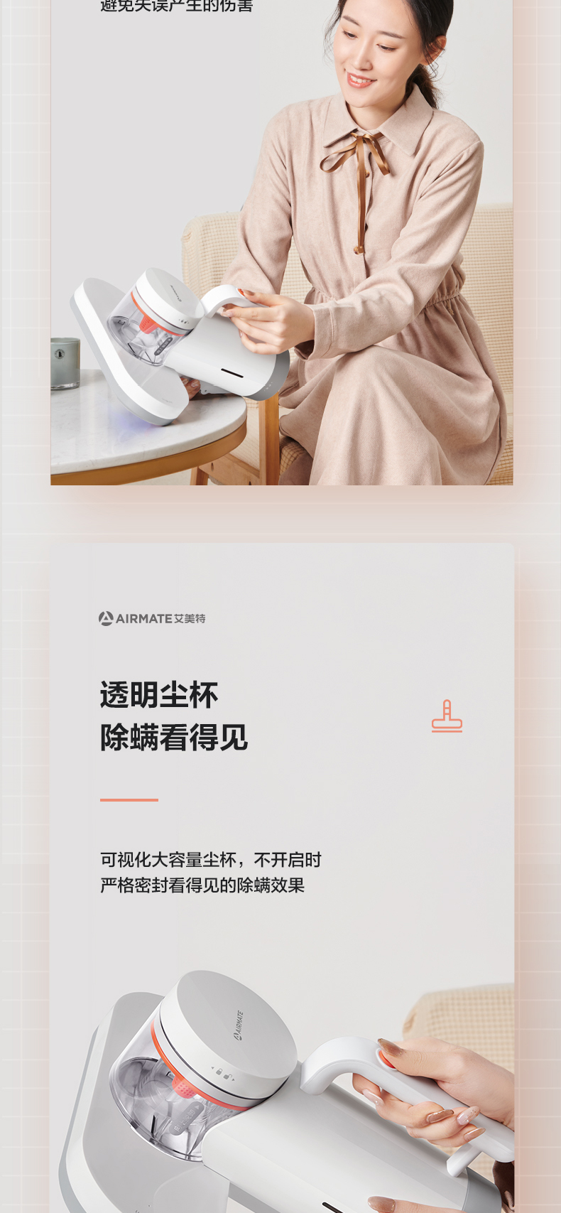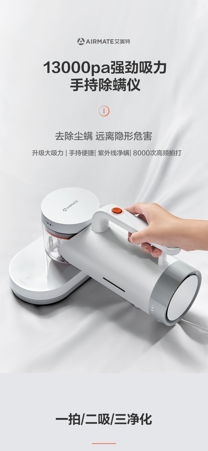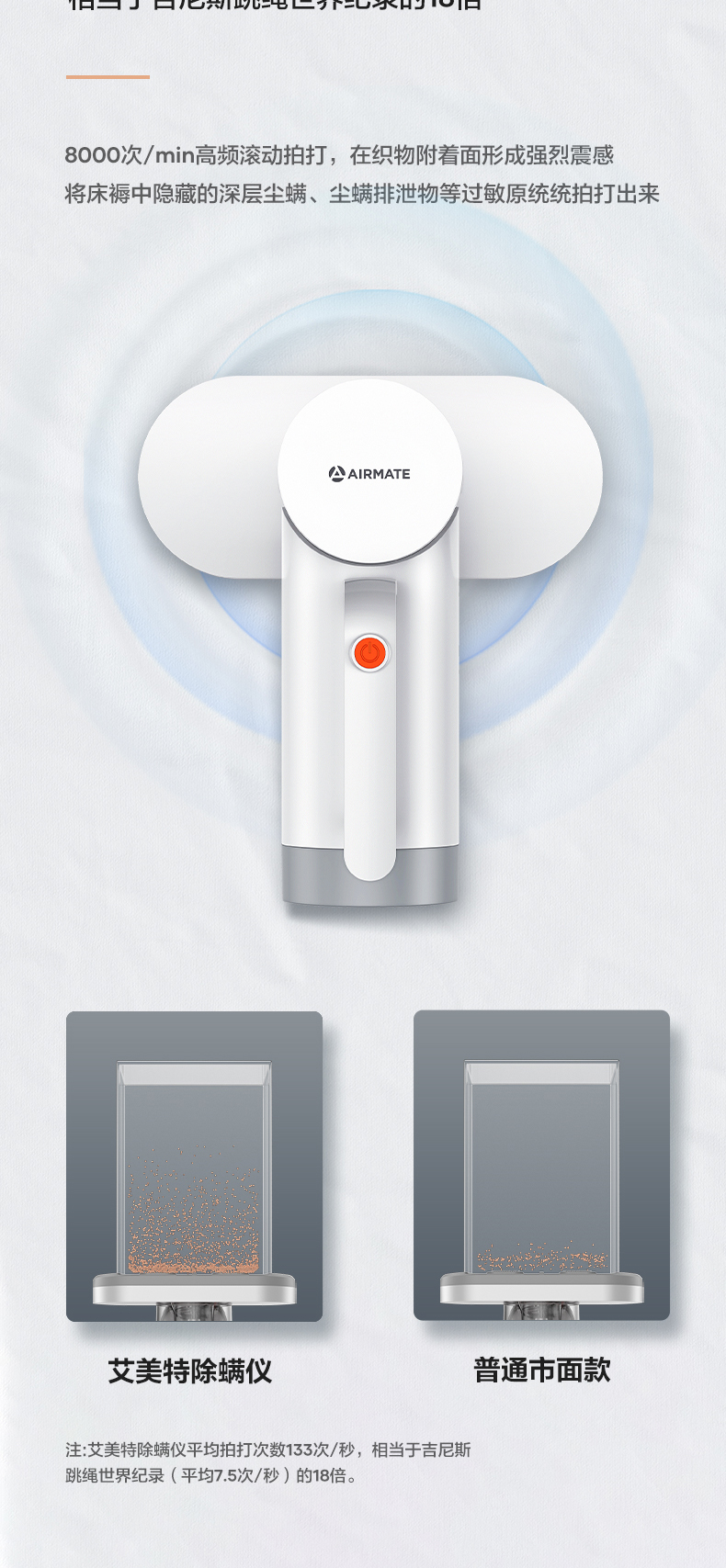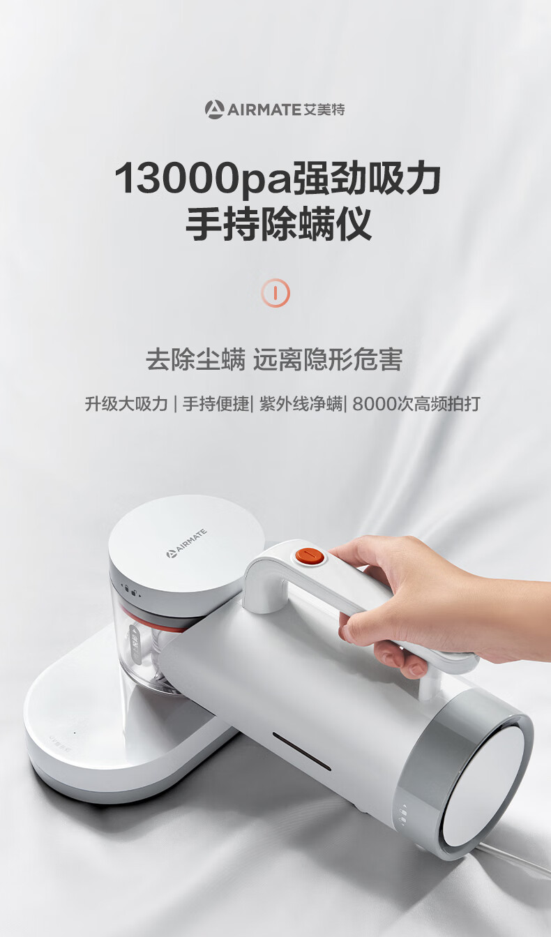 艾美特(Airmate)除螨仪家用除螨两用床上紫外线杀菌除螨虫手持震动高频拍打 LM1001-01 本白色