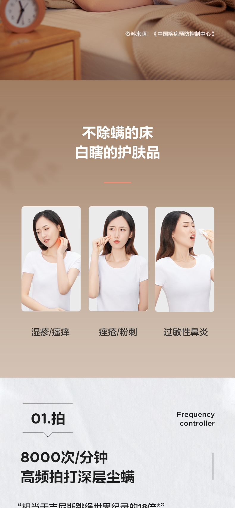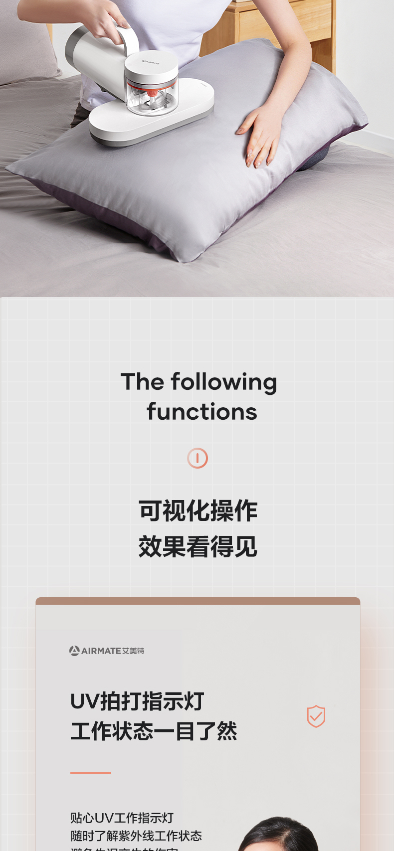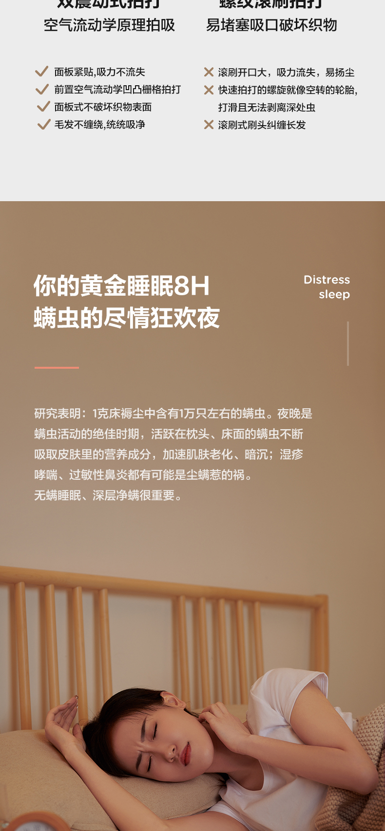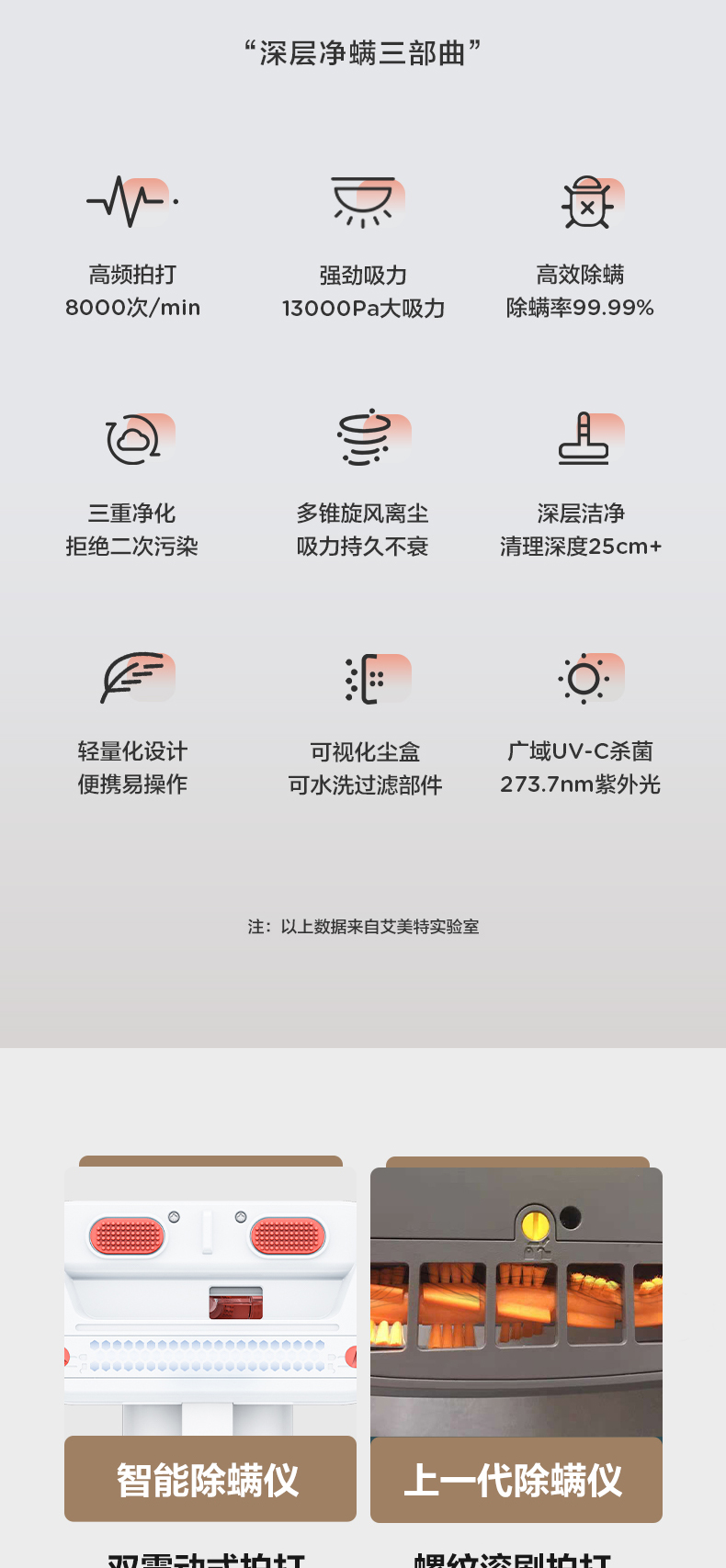 艾美特(Airmate)除螨仪家用除螨两用床上紫外线杀菌除螨虫手持震动高频拍打 LM1001-01 本白色