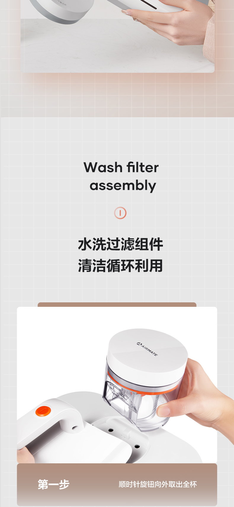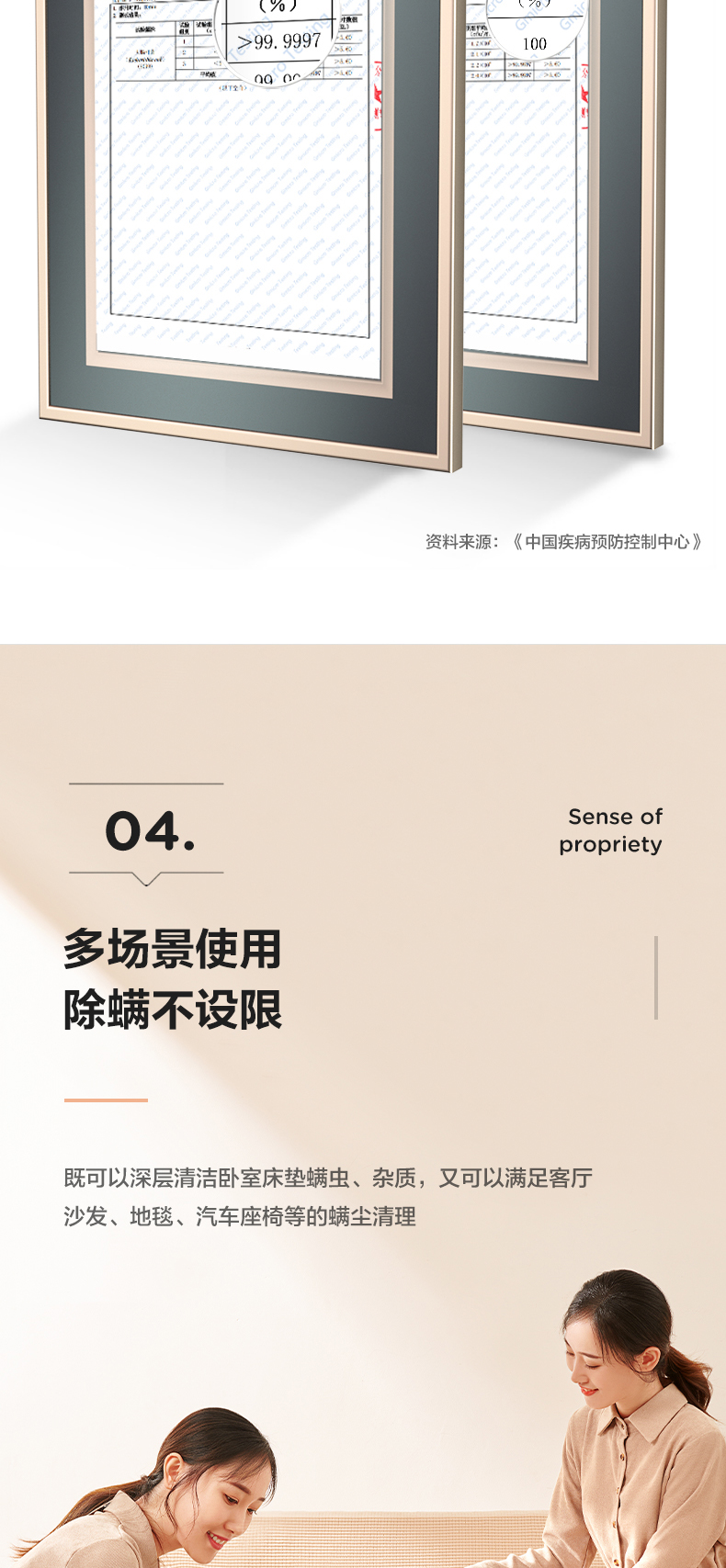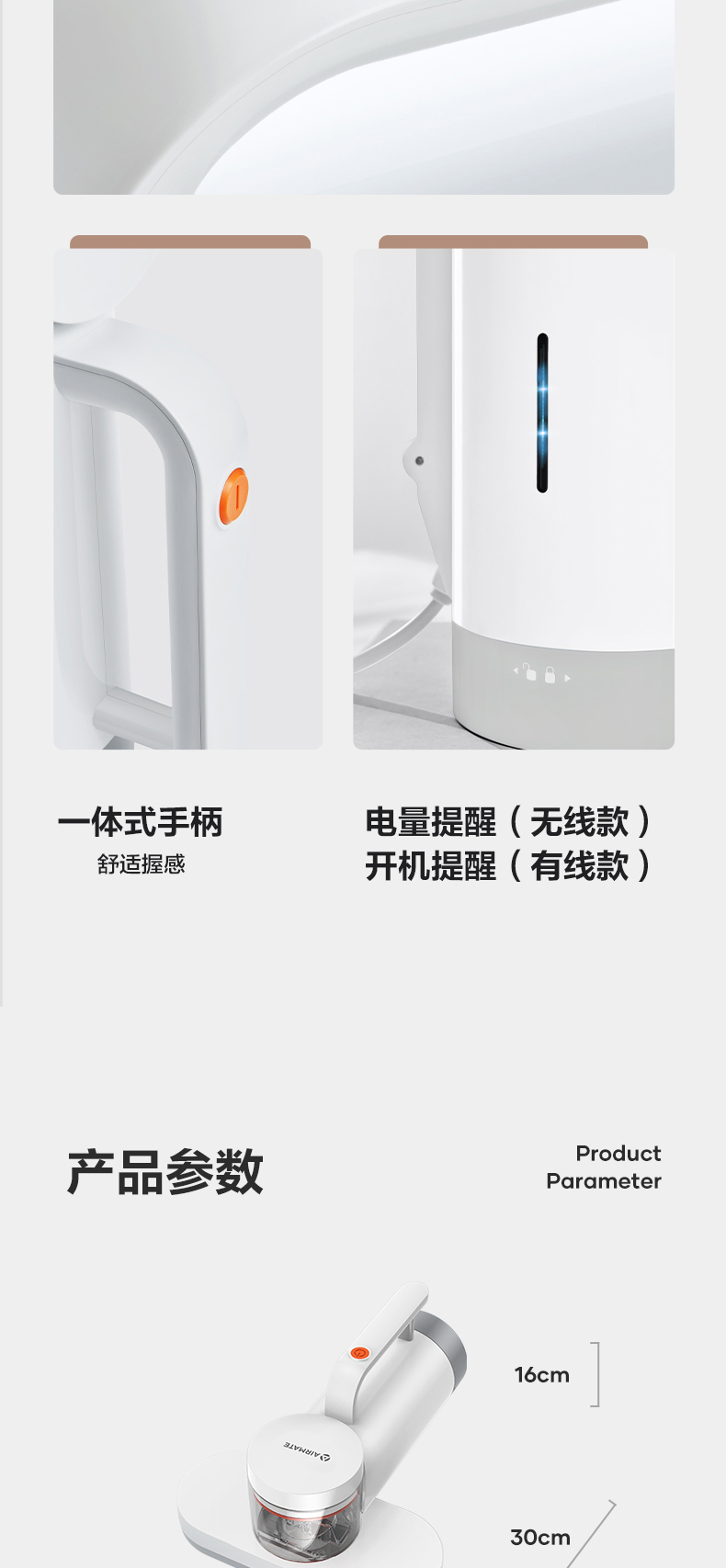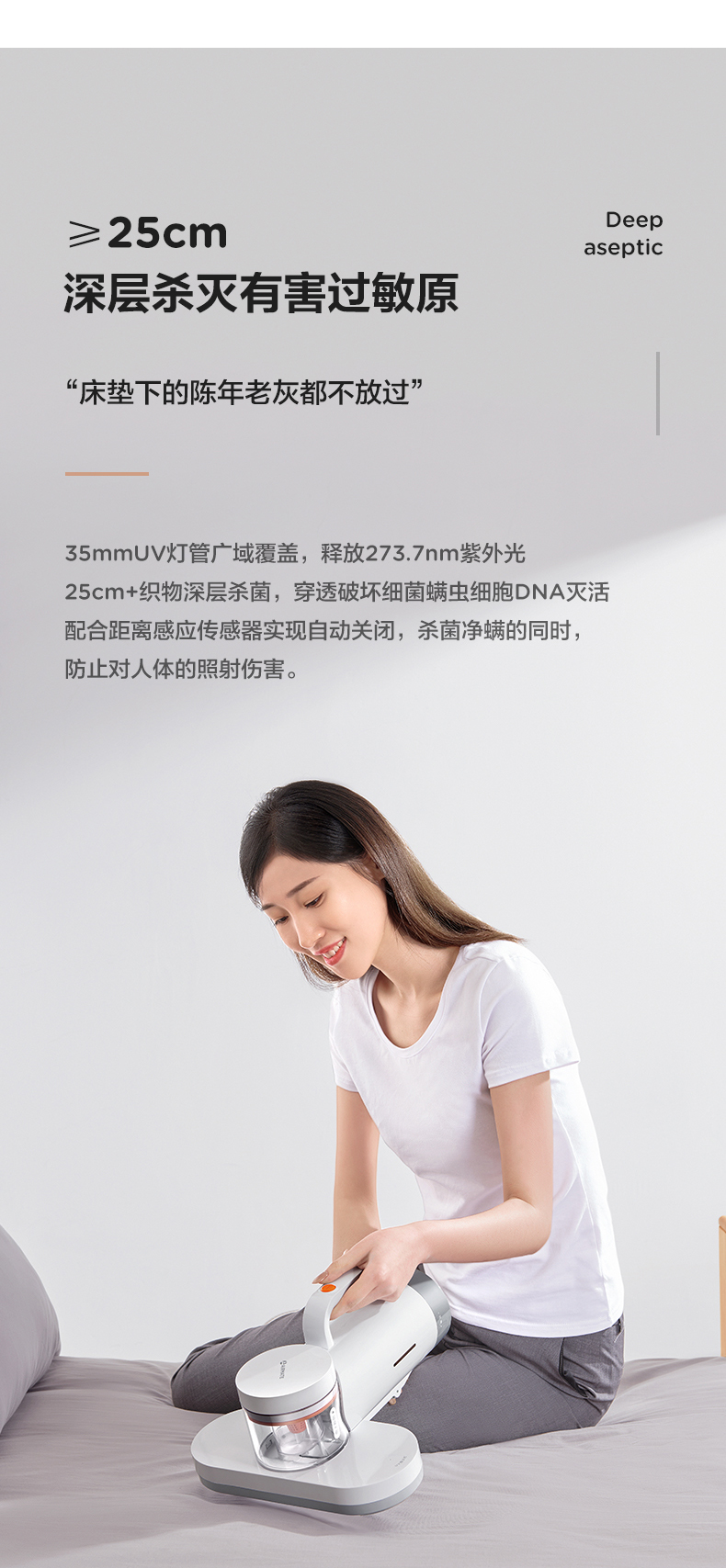 艾美特(Airmate)除螨仪家用除螨两用床上紫外线杀菌除螨虫手持震动高频拍打 LM1001-01 本白色