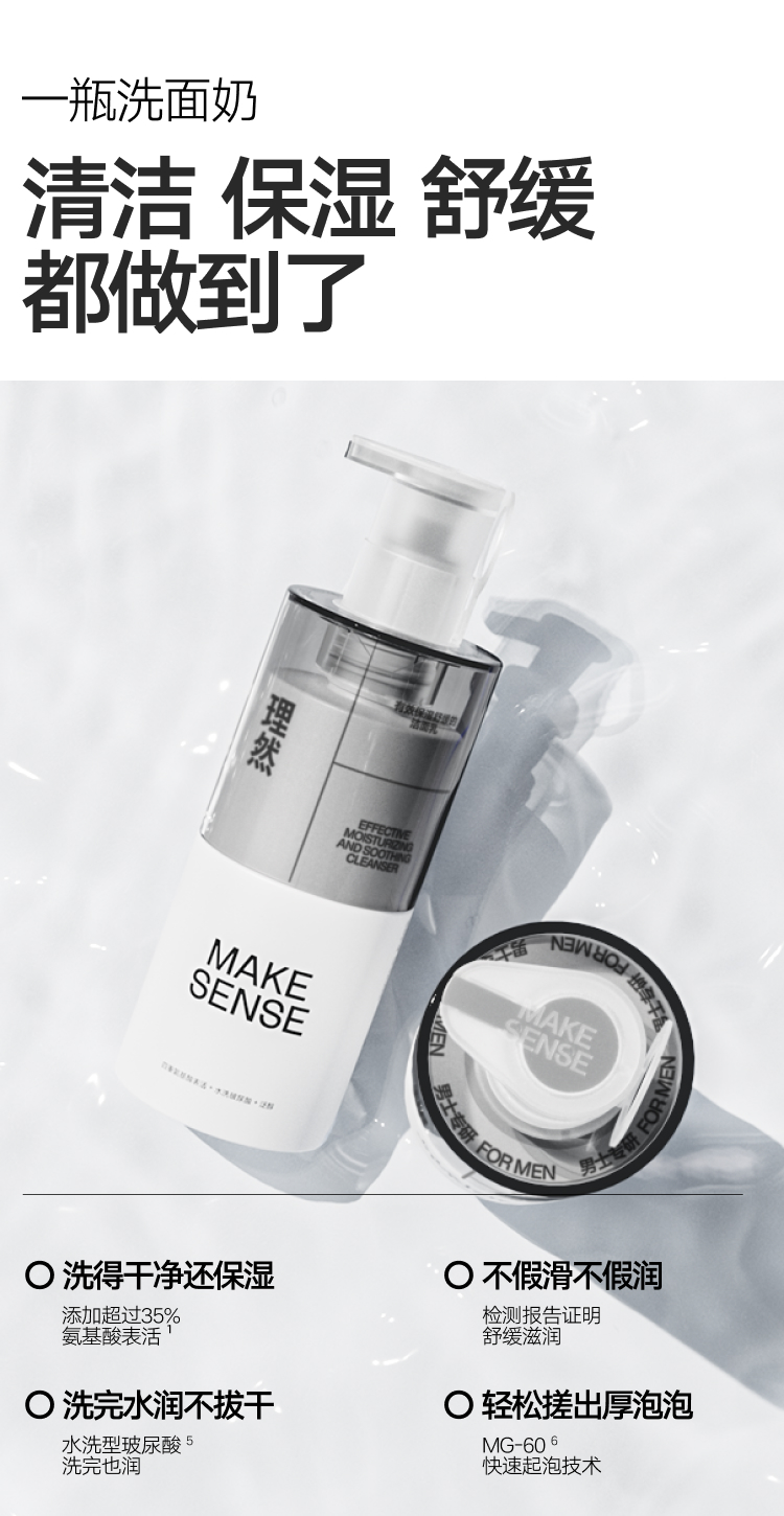 理然 有效保湿舒缓的洁面乳 100g 温和控油补水 白色(单位:瓶)