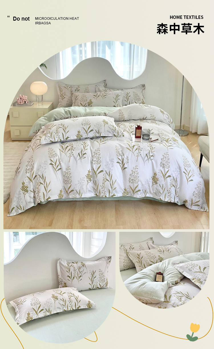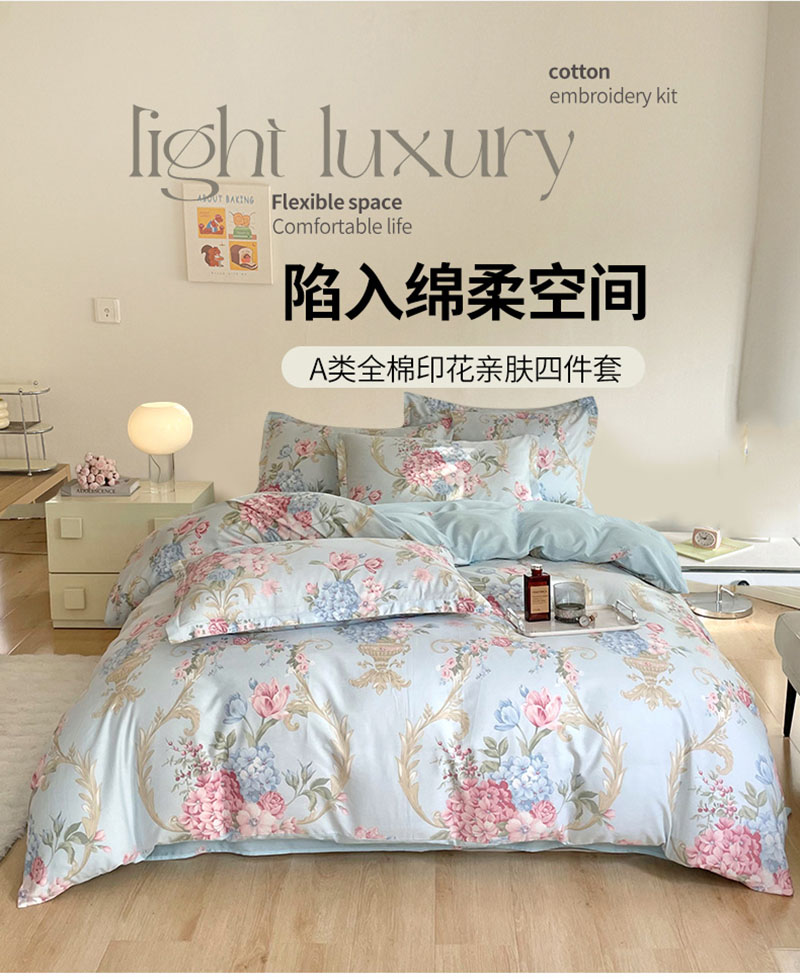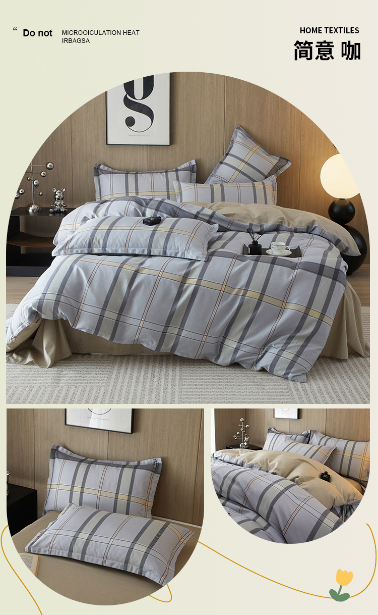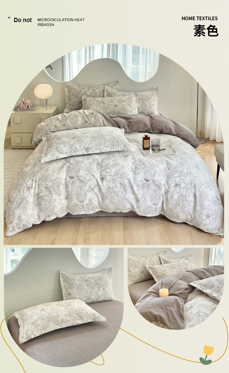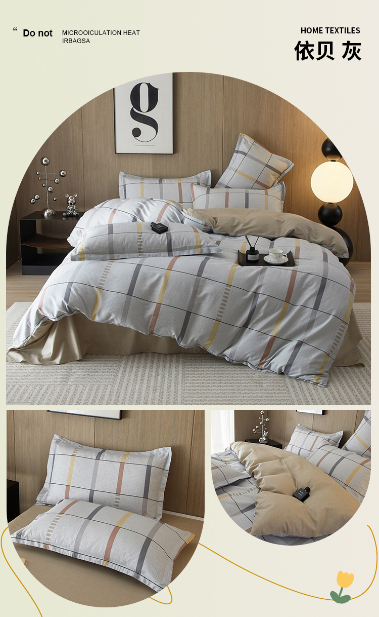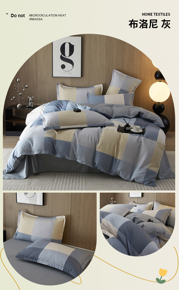 樵纪 简意 200x230cm 40支全棉印花四件套 1.5/1.8米床通用款 灰色(单位:套)