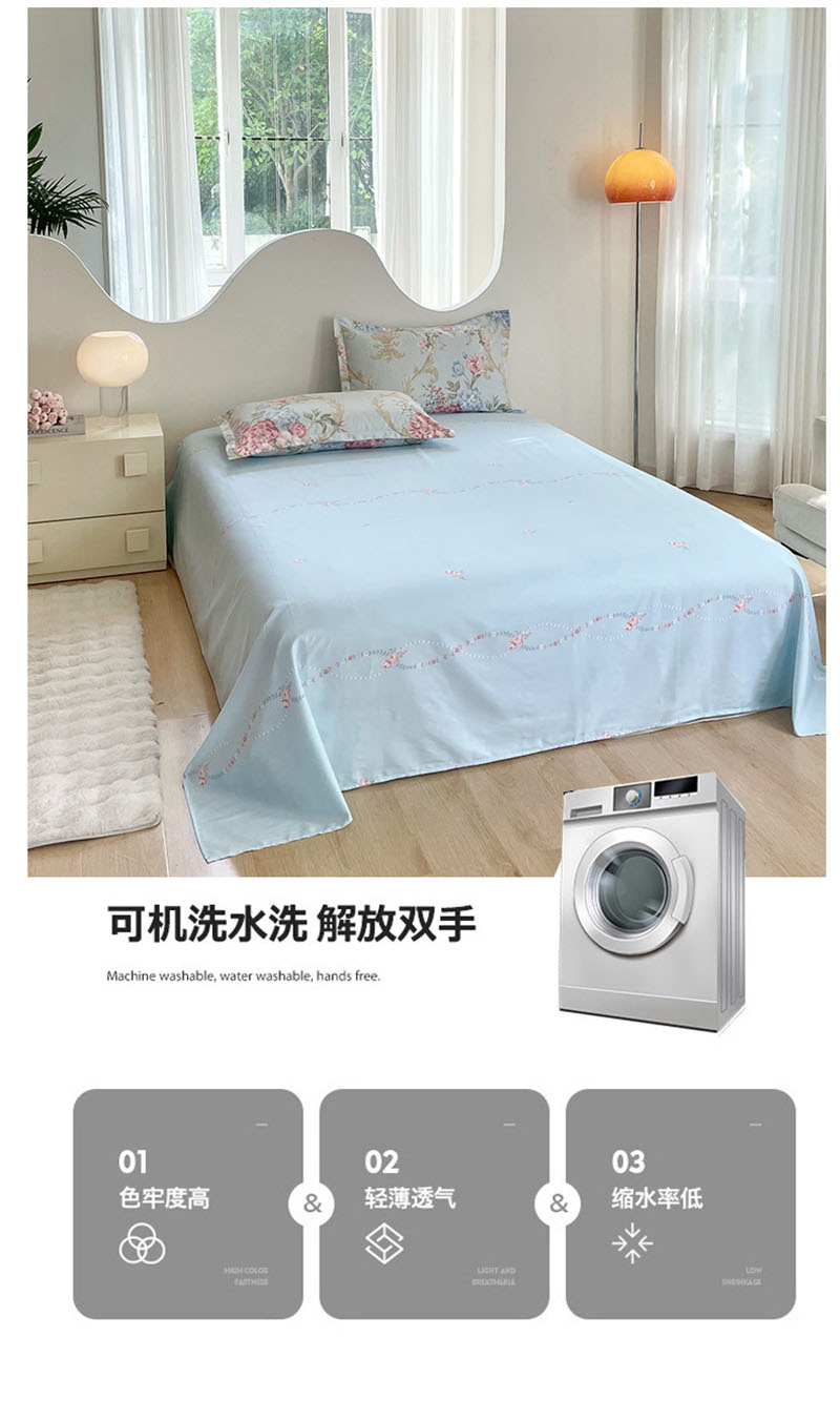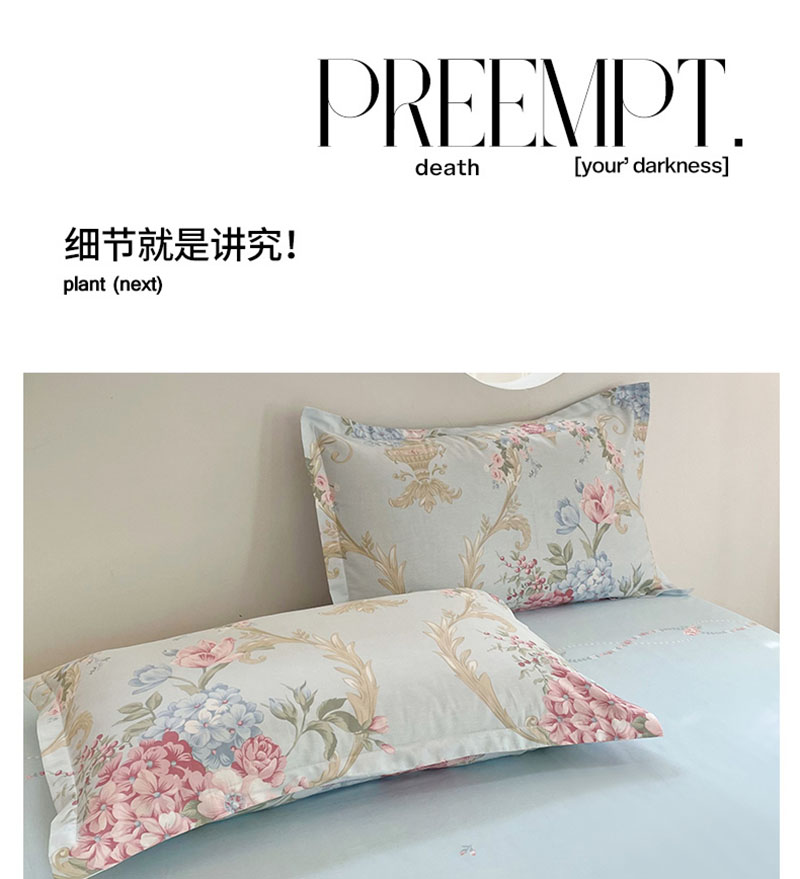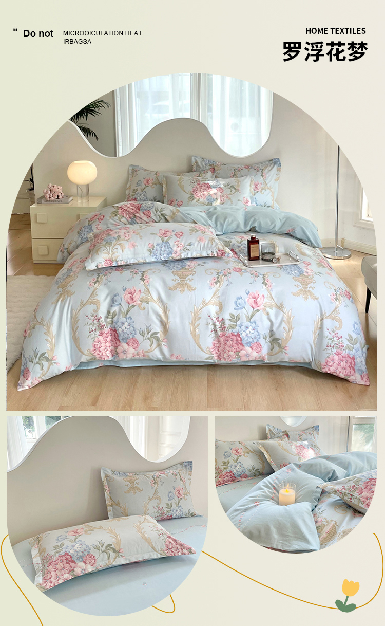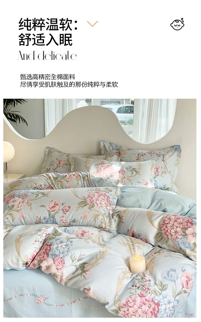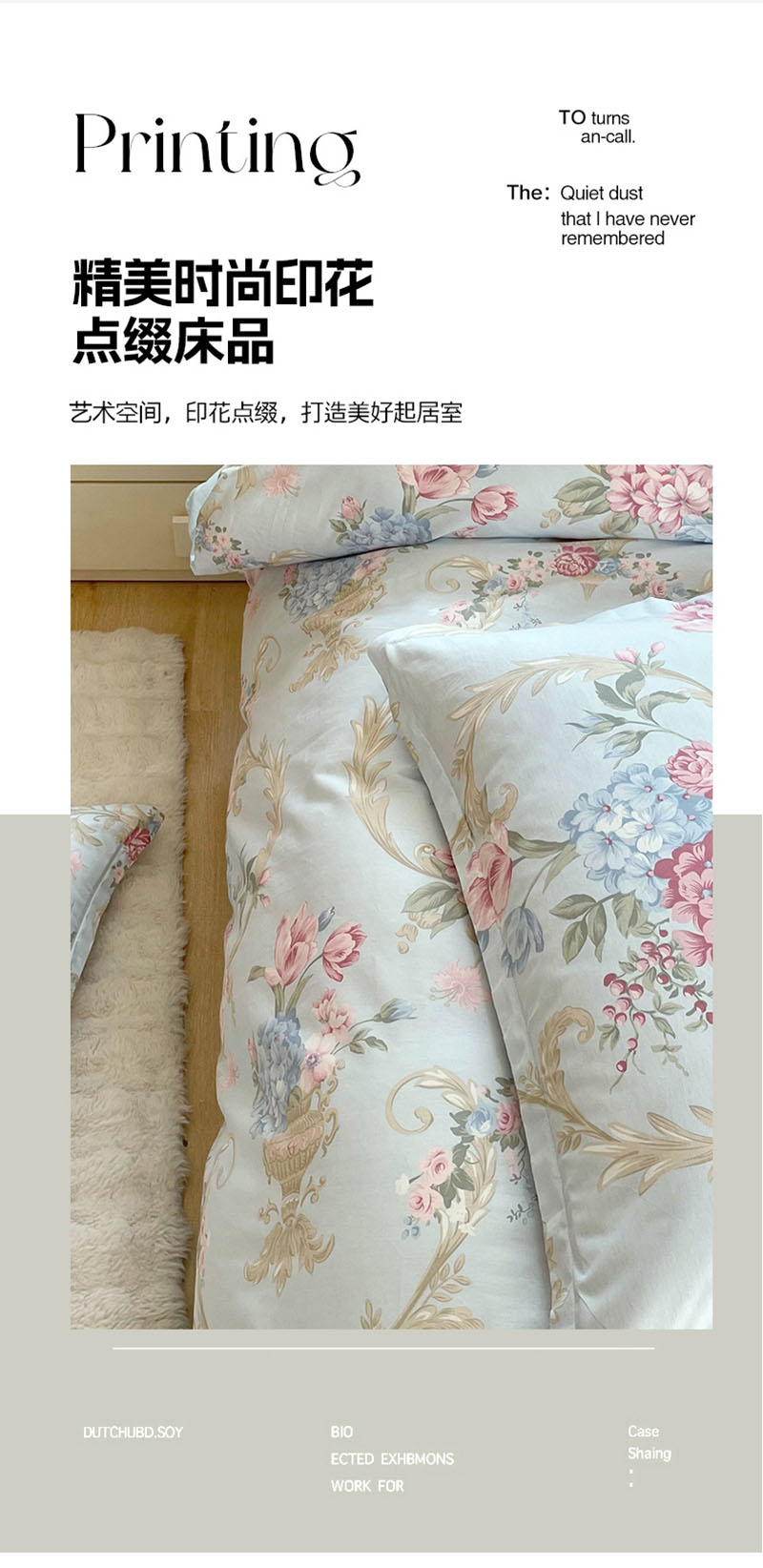 樵纪 简意 200x230cm 40支全棉印花四件套 1.5/1.8米床通用款 灰色(单位:套)