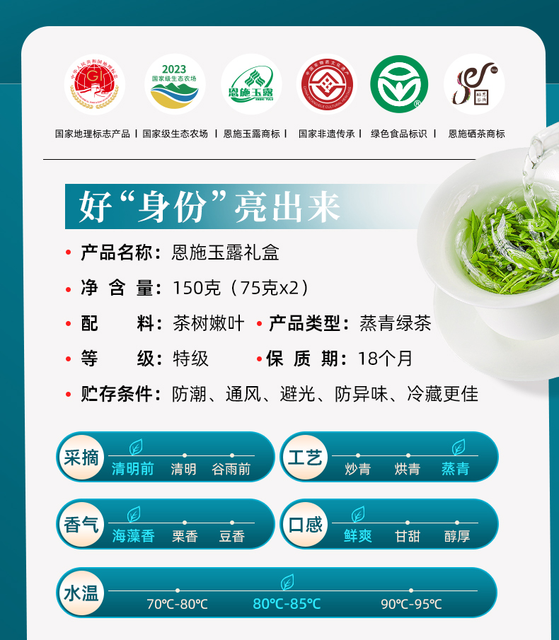 茶马世家 HZ0200GFT 150g/盒 明前特级恩施玉露绿茶 宝石蓝(单位:盒)