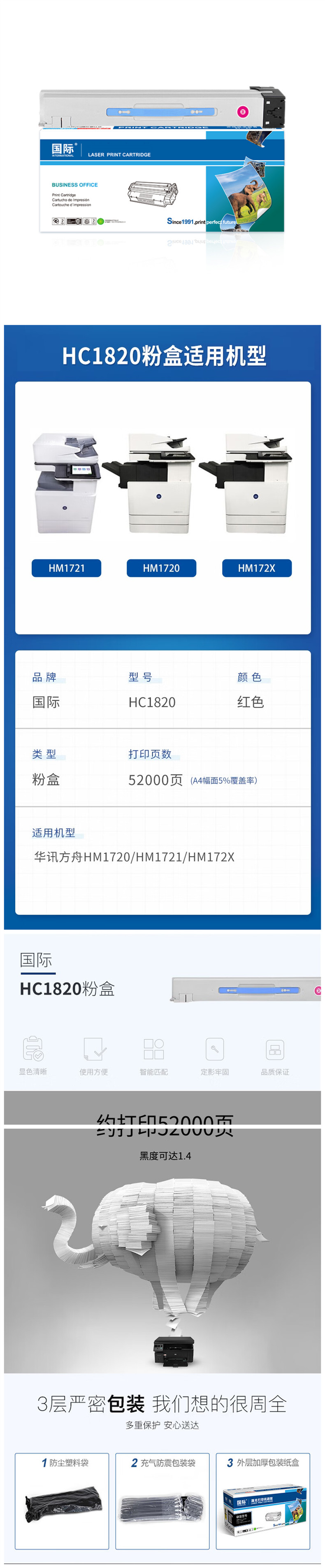 国际 HC1820 52000页 粉盒 红色(单位:支)