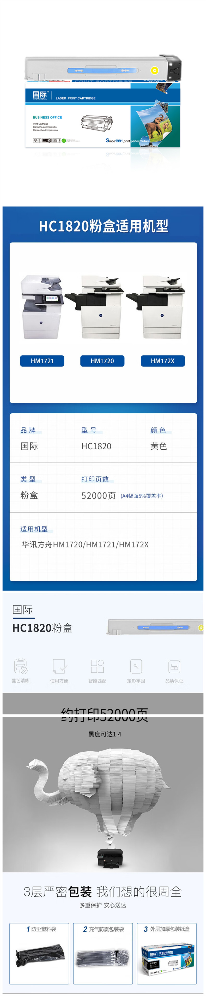 国际 HC1820 52000页 粉盒 黄色(单位:支)