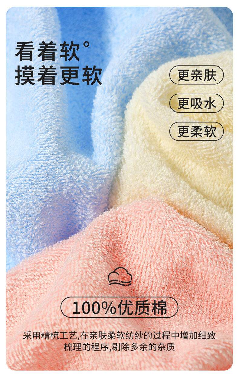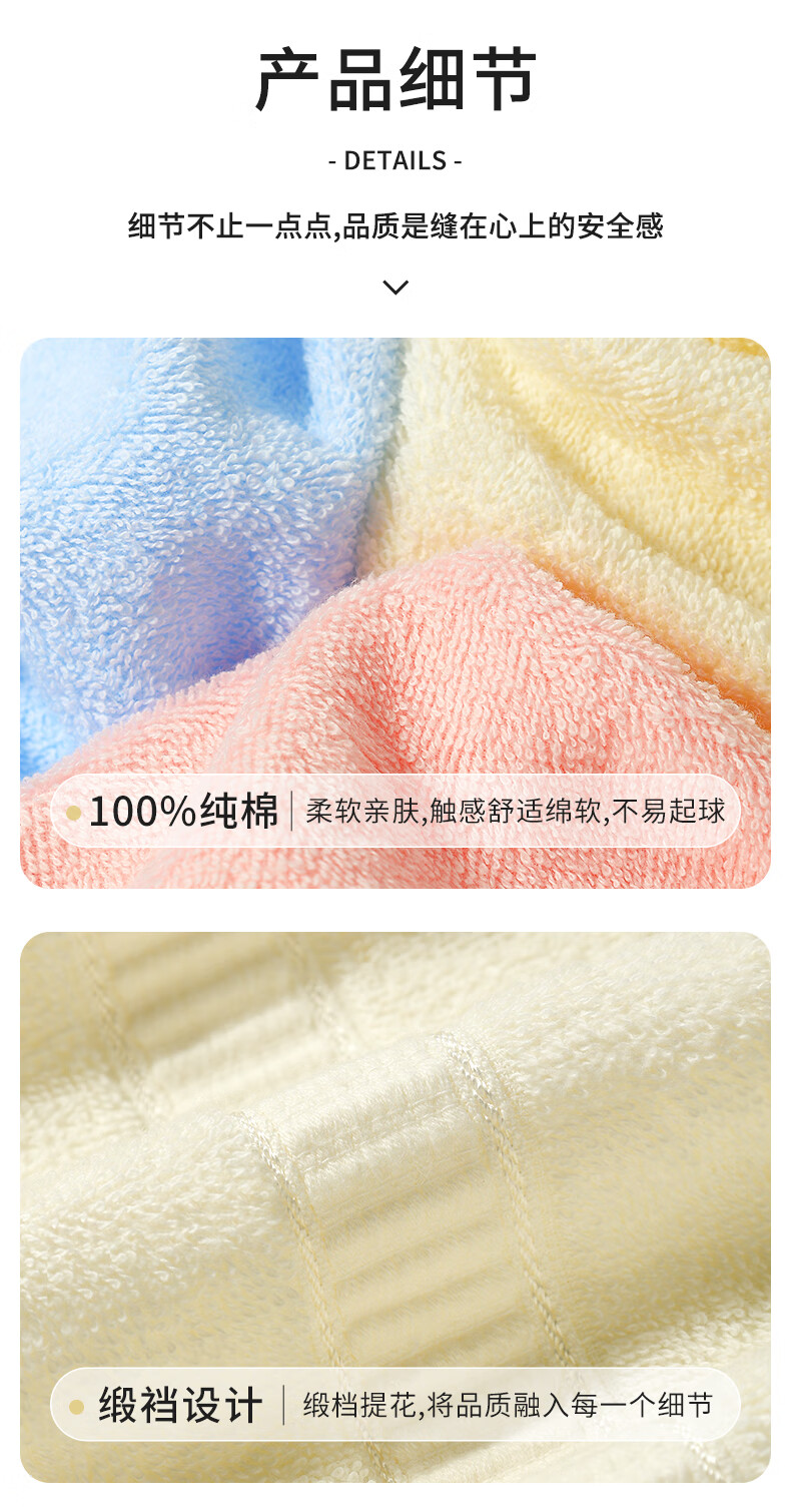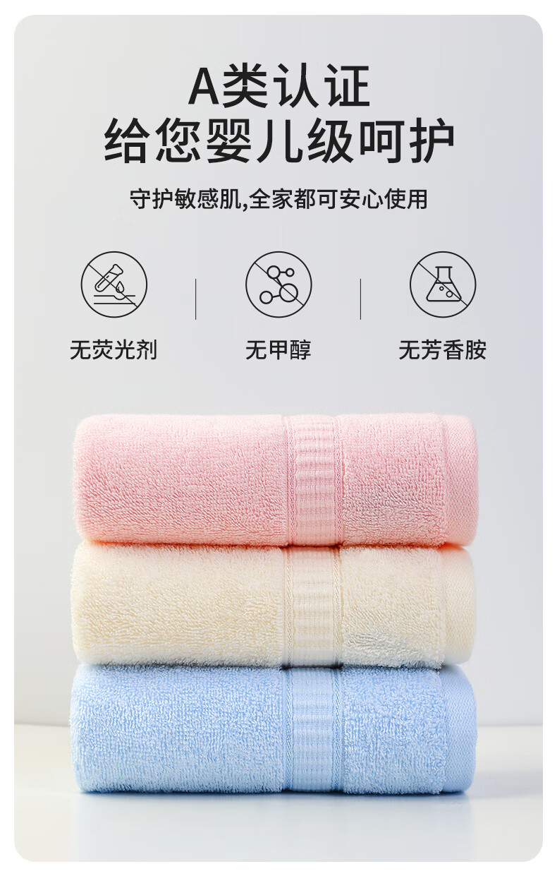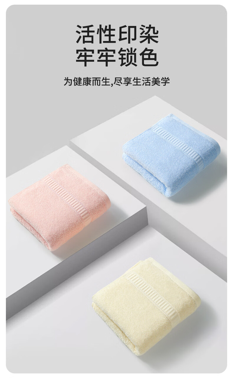 洁丽雅(Grace) 毛巾 缎档长绒棉 73*33cm*3条 混色(单位:组)