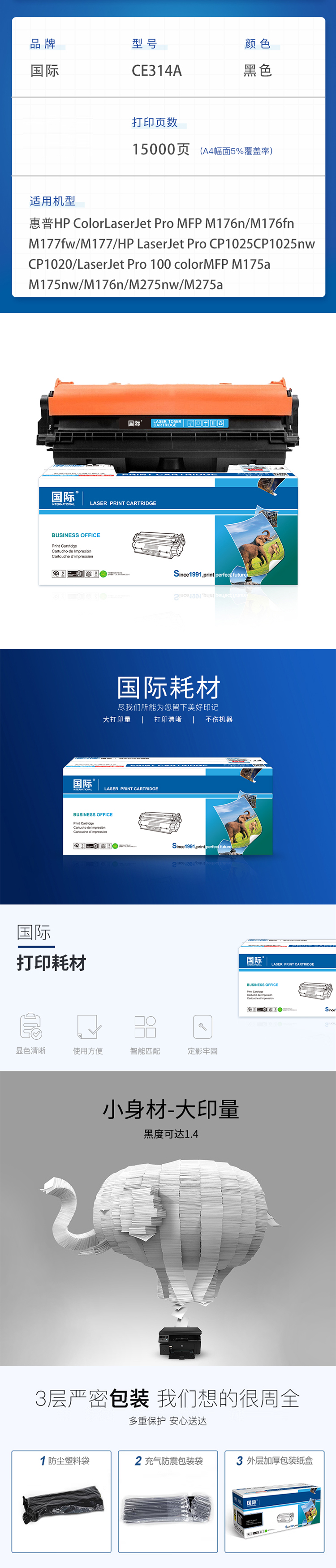 国际 CE314A 15000页 硒鼓组件 黑色(单位:支)