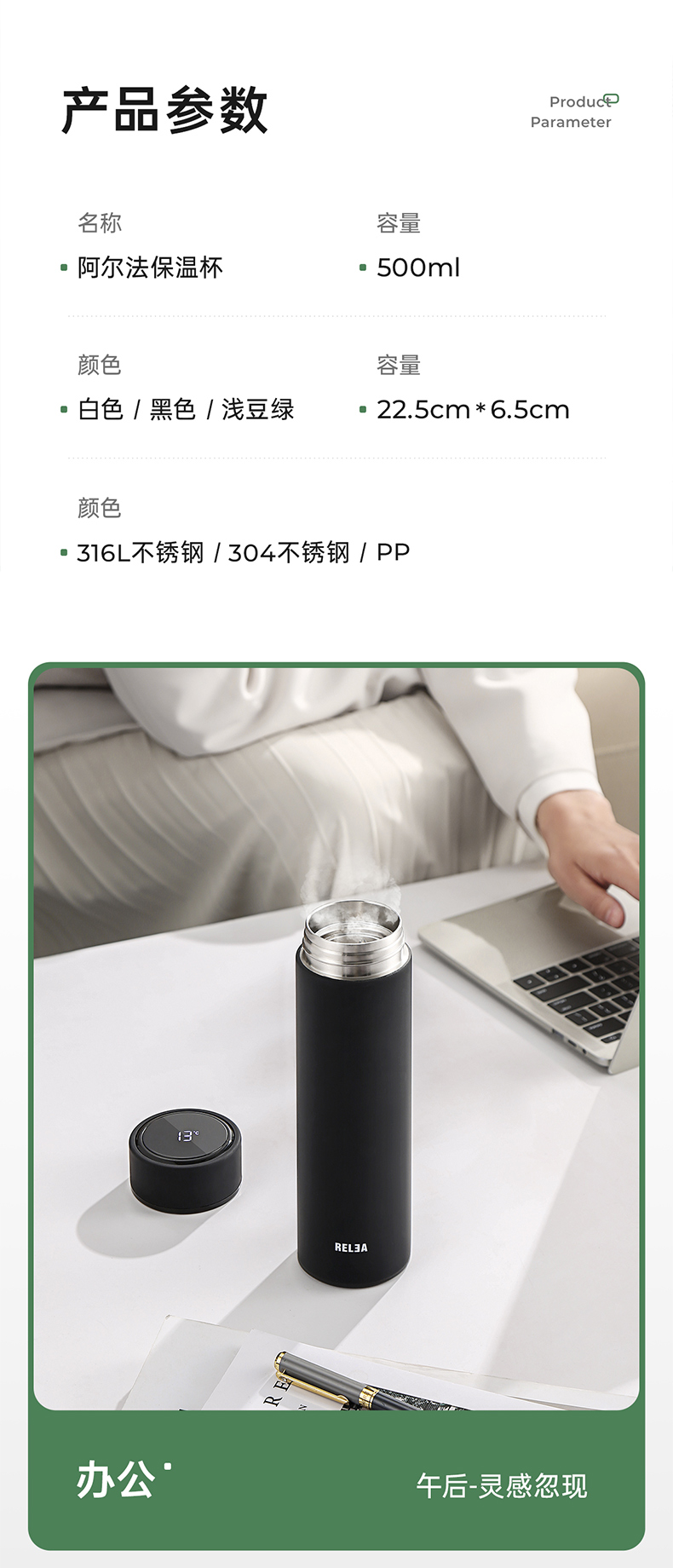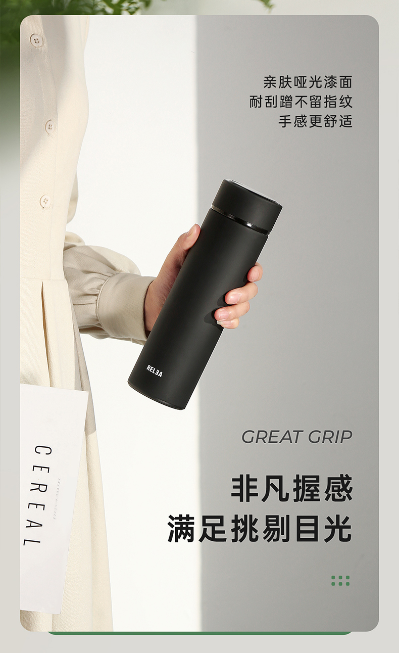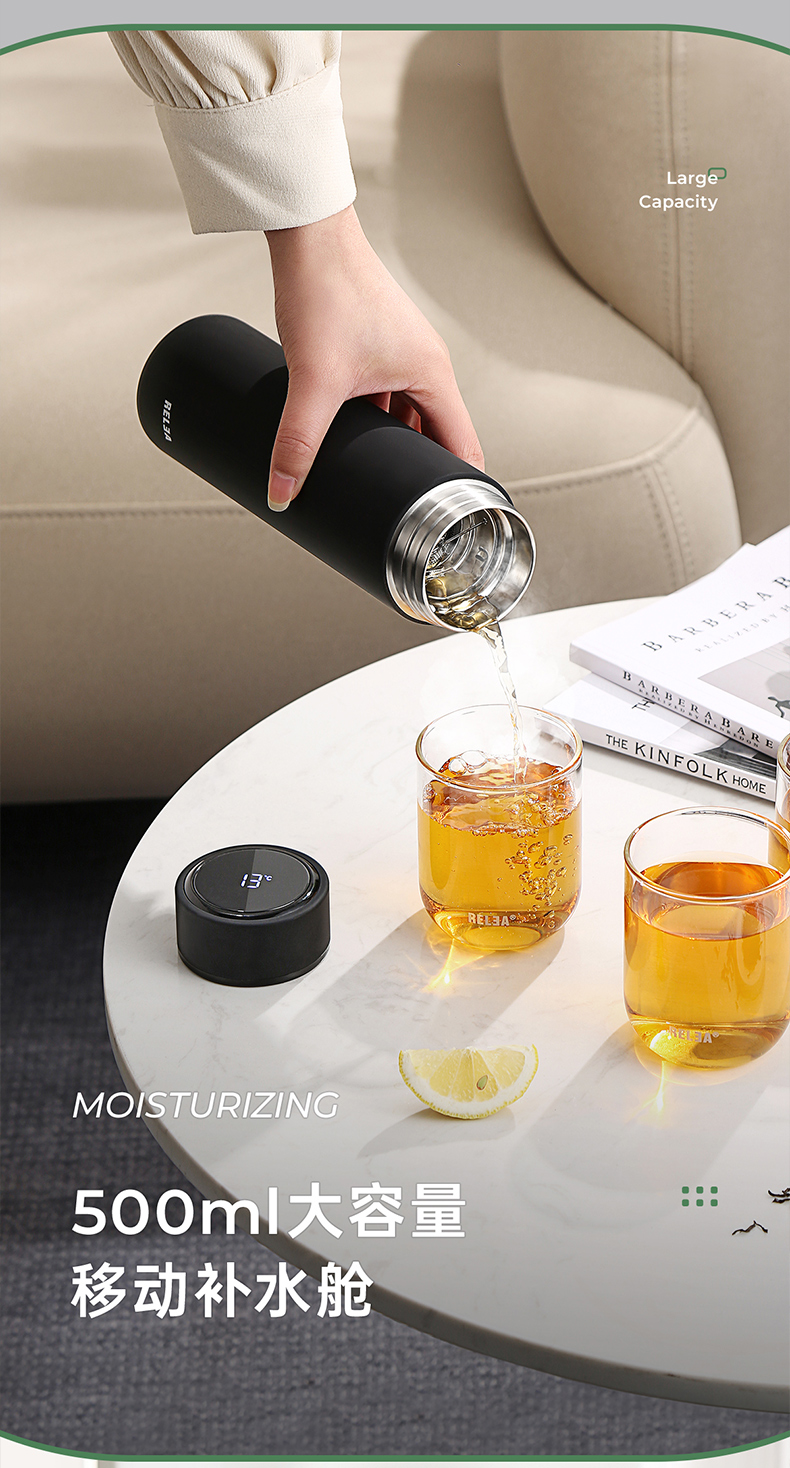 物生物(RELEA) JV011910-0500-ES00 316不锈钢500ML 阿尔法数显保温杯 黑色(单位:个)