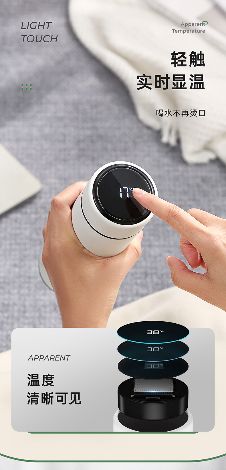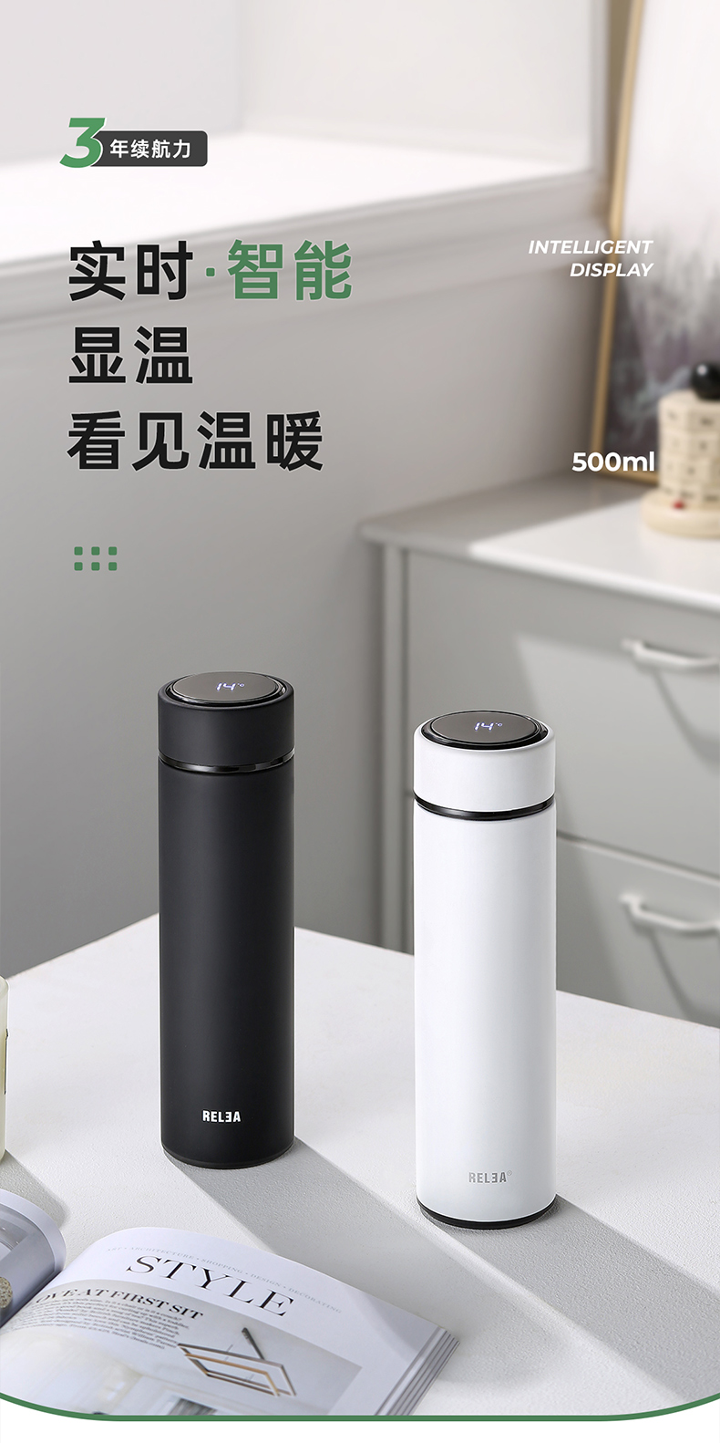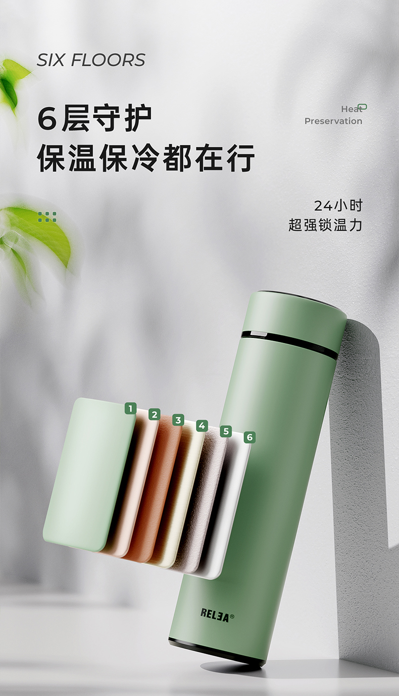 物生物(RELEA) JV011910-0500-ES00 316不锈钢500ML 阿尔法数显保温杯 黑色(单位:个)