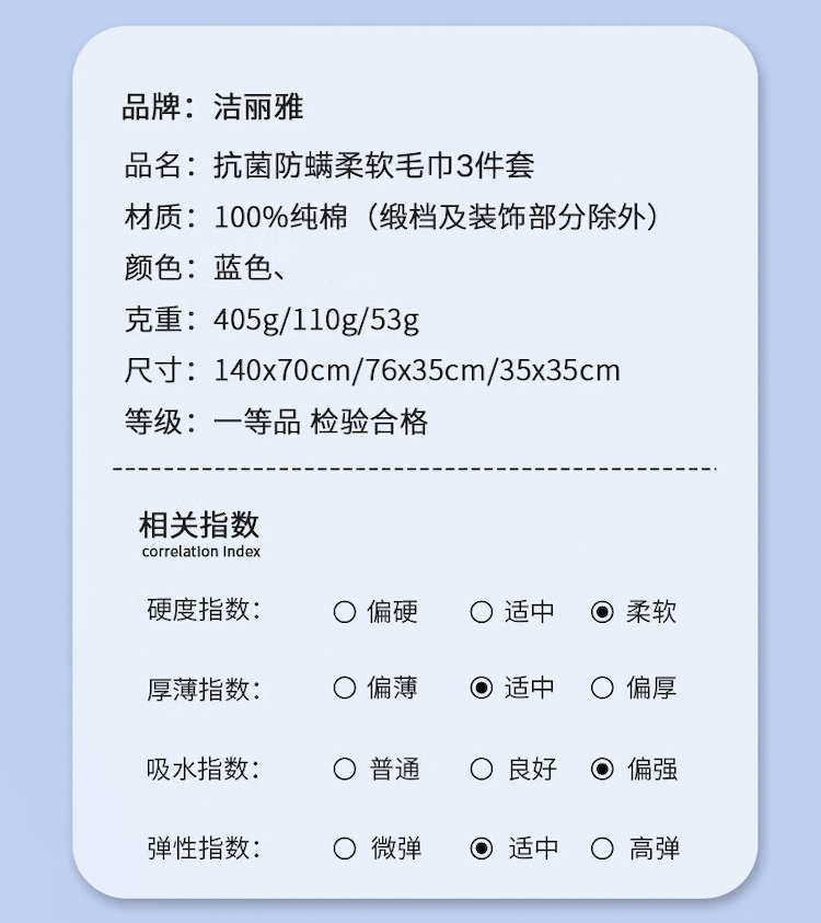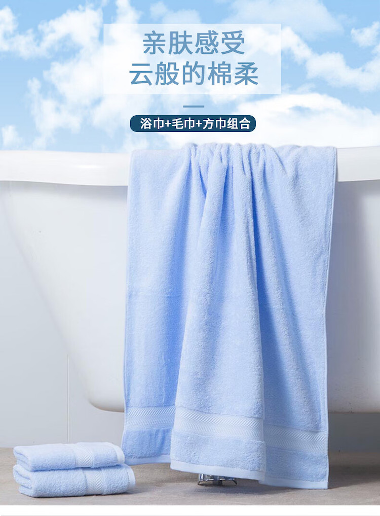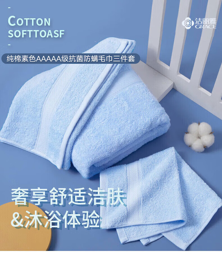 洁丽雅(Grace) 毛巾组合 抗菌纯棉亲肤 三件套 蓝色(单位:套)