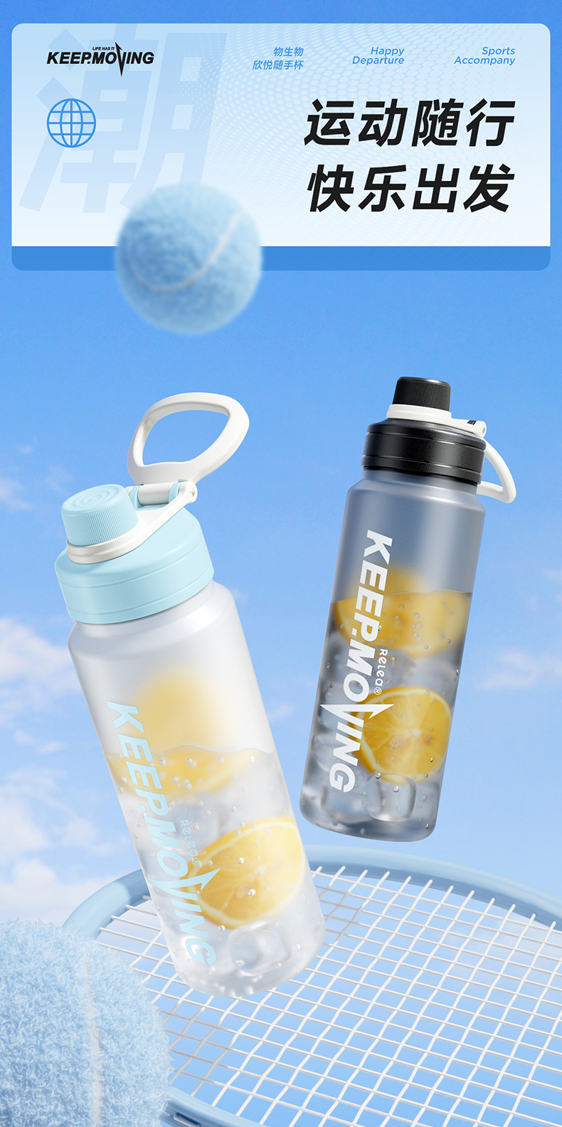 物生物(RELEA) JV012407-0700-ES00 TRITAN700ML 欣跃随手杯 墨行黑(单位:个)