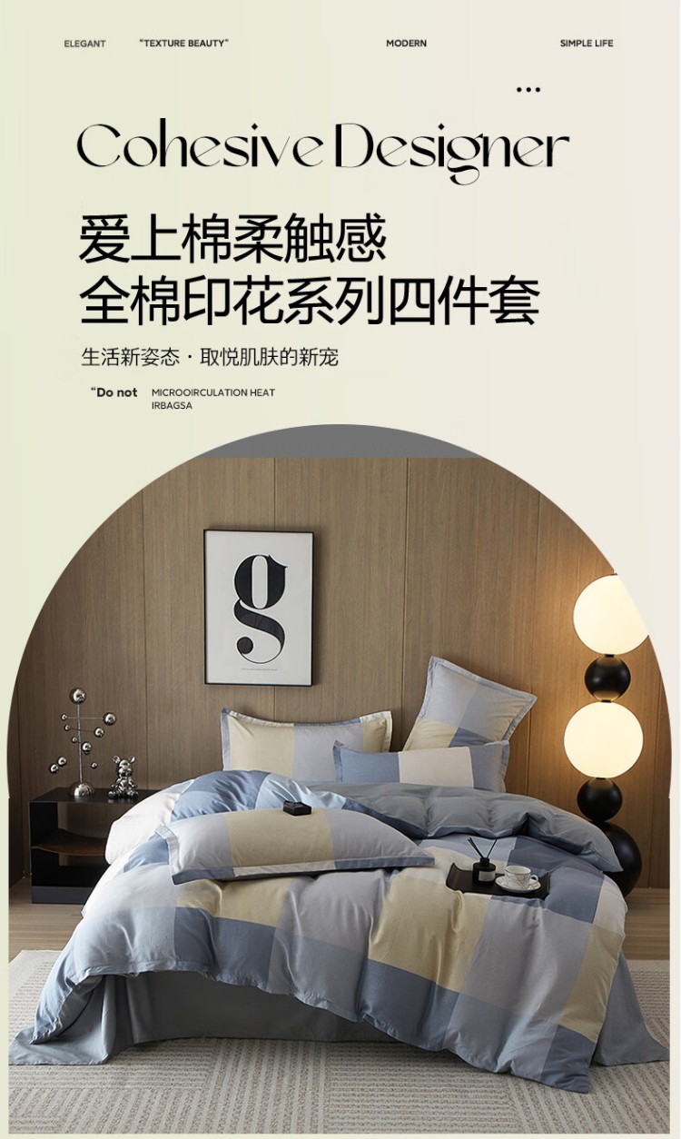 雅鹿 床上四件套 全棉印花100%纯棉 200*230cm 布洛尼-灰(单位:套)