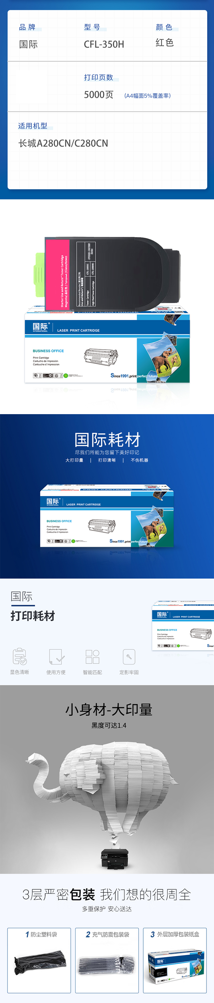 国际 CFL-350H 5000页 粉盒 红色(单位:支)