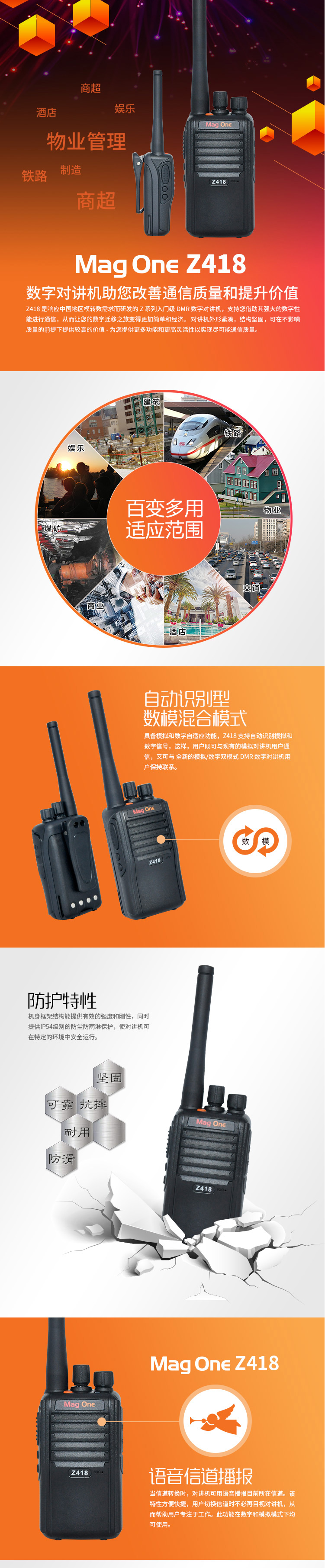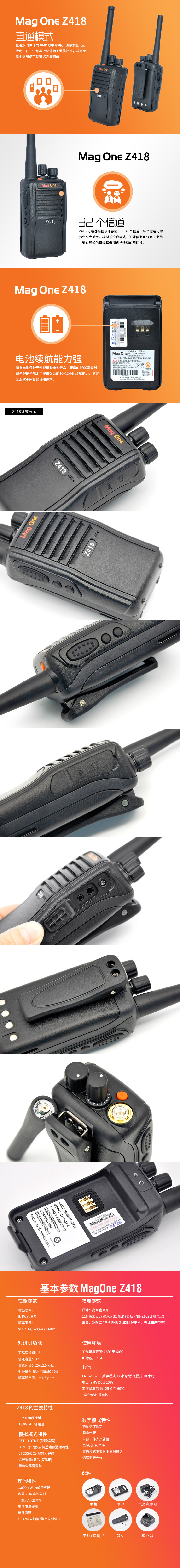 摩托罗拉(Motorola) Z418 249g 商用穿透对讲机1台 黑色(单位:台)