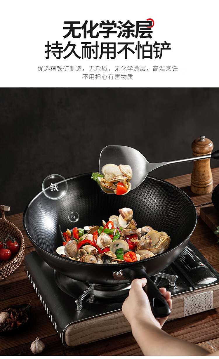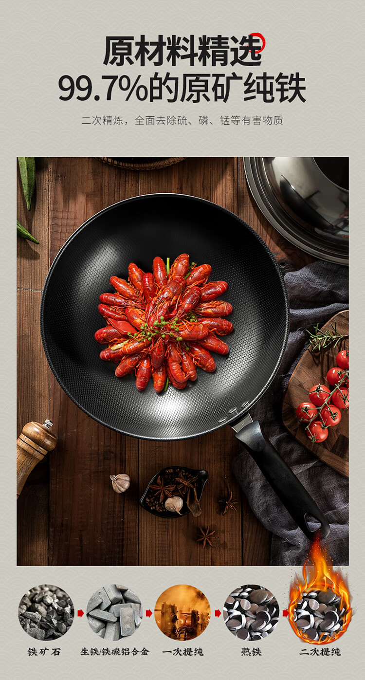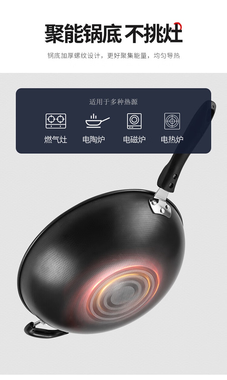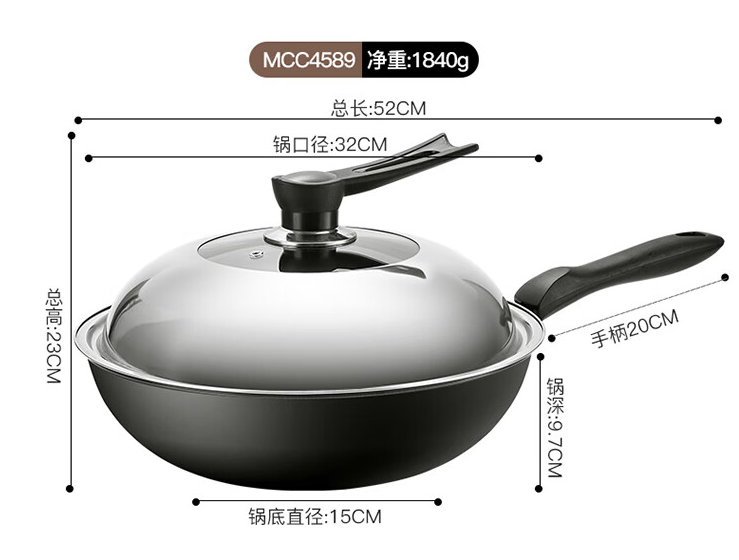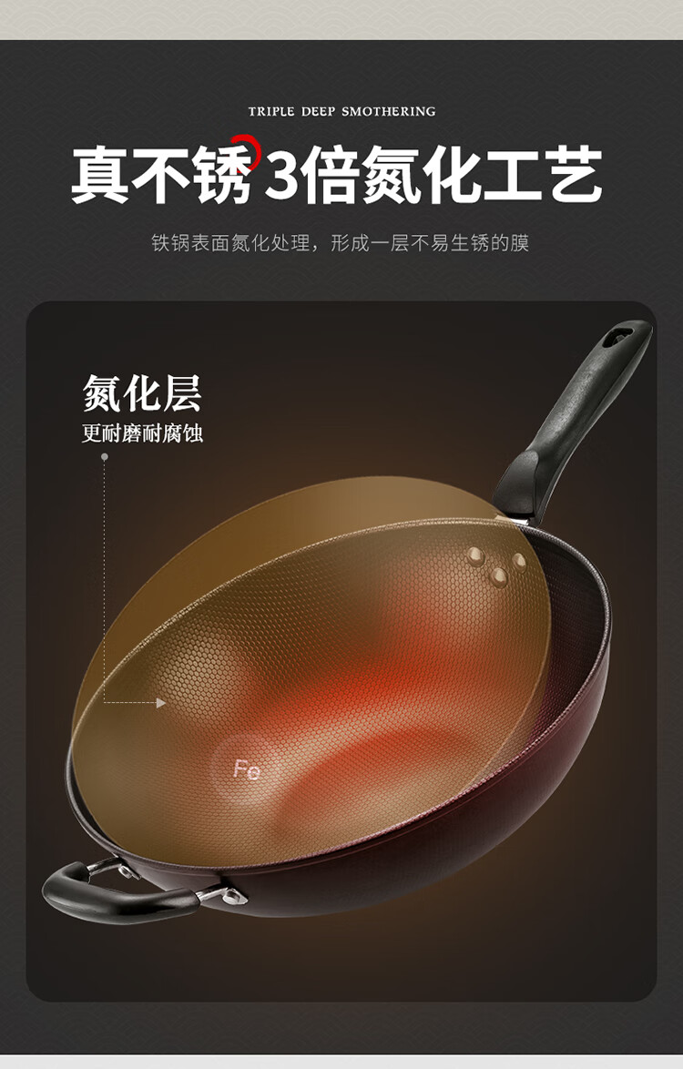 美厨(maxcook) MCC4589 32CM 丽晶系列精铁氮化炒锅 黑色(单位:个)
