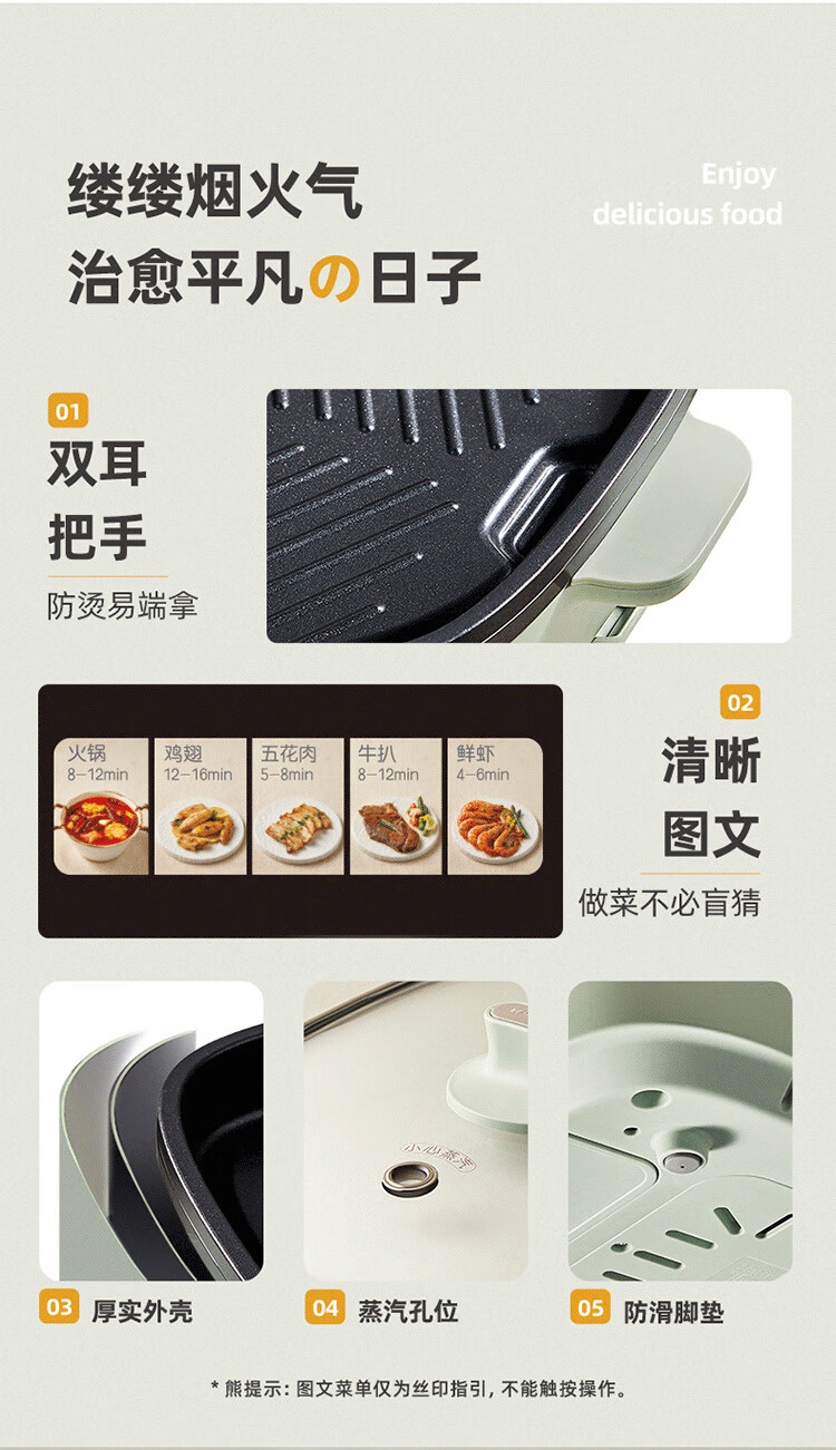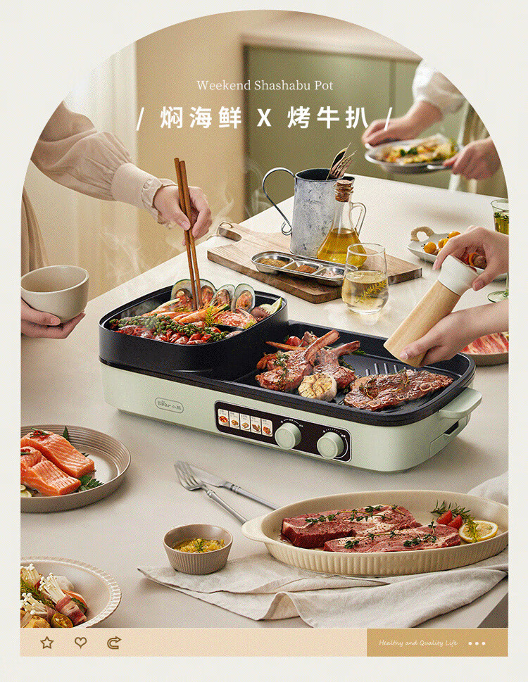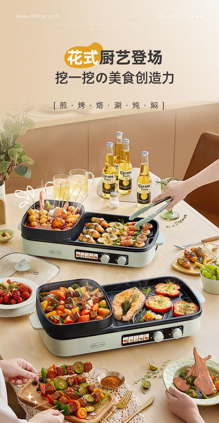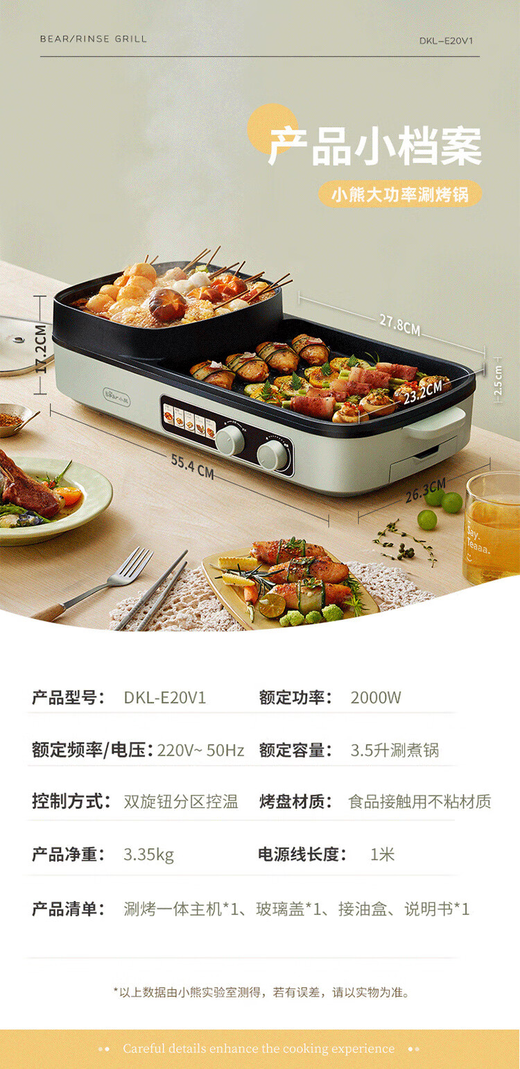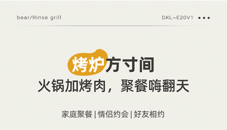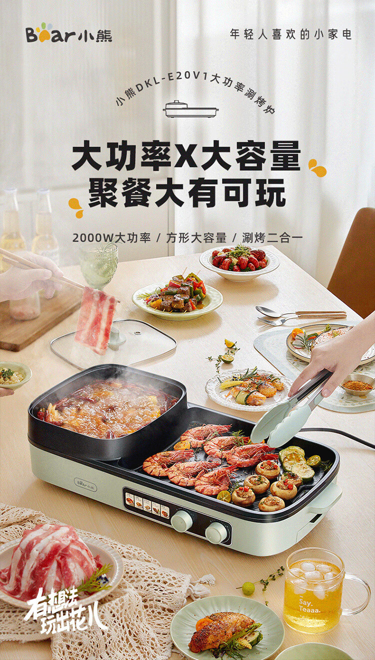 小熊(Bear) 电烧烤炉3.5L烤涮一体两用锅 DKL-E20V1 2000W 绿色(单位:台)
