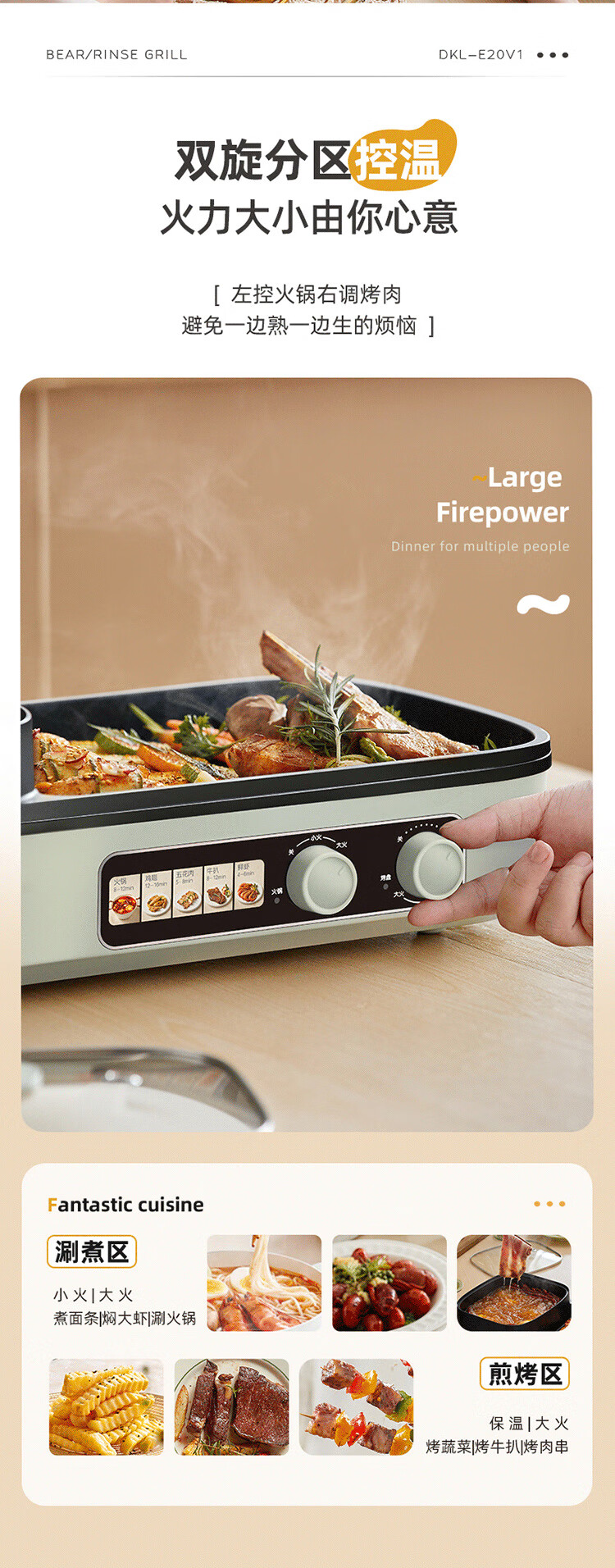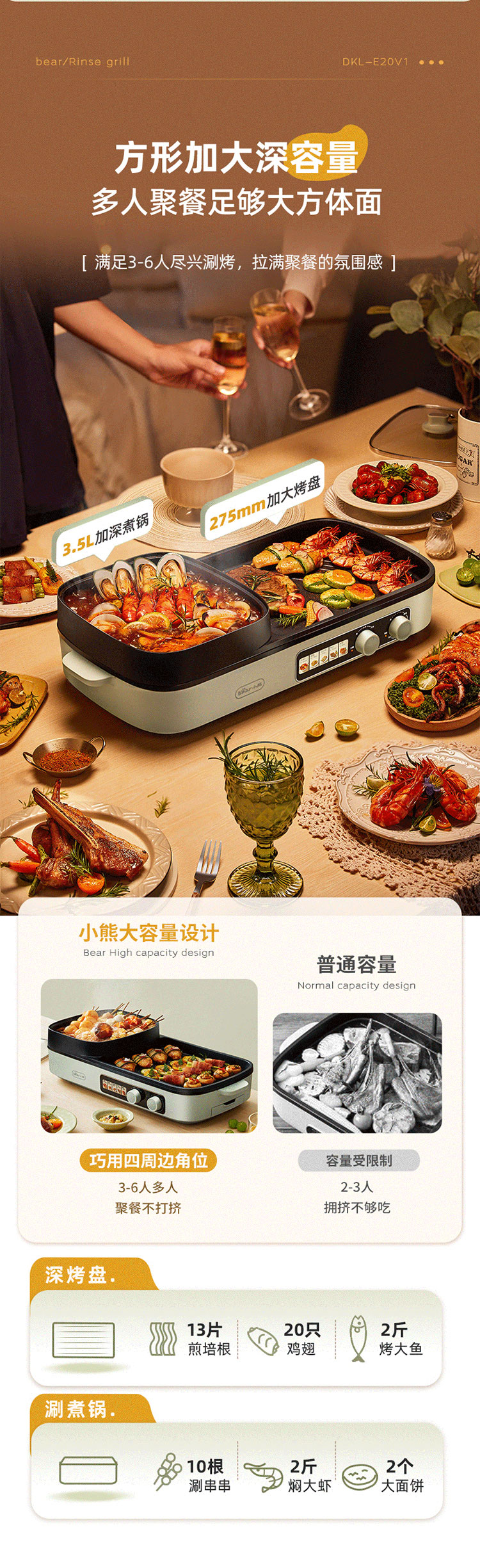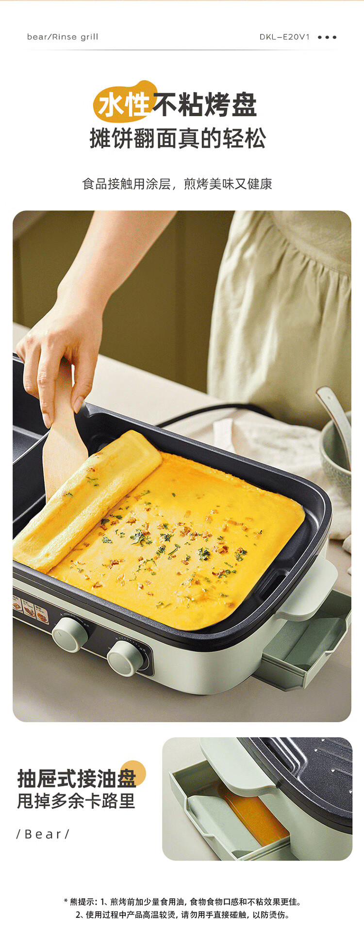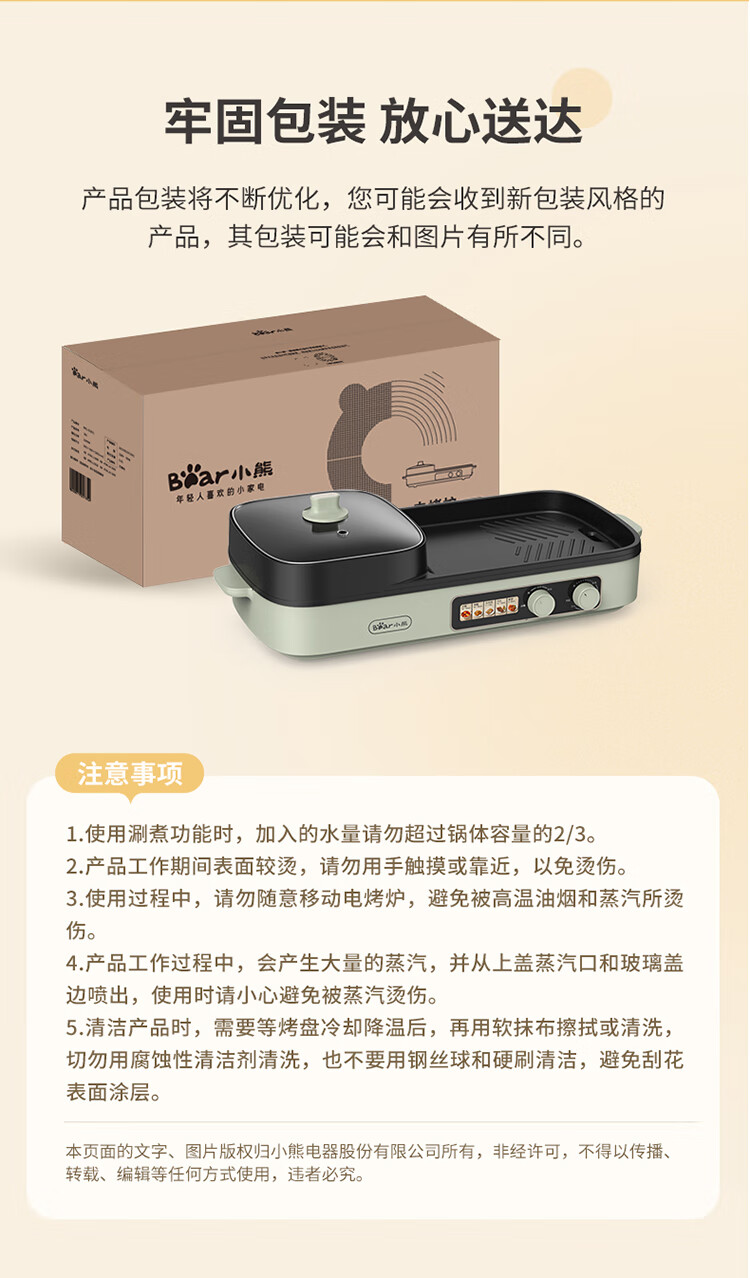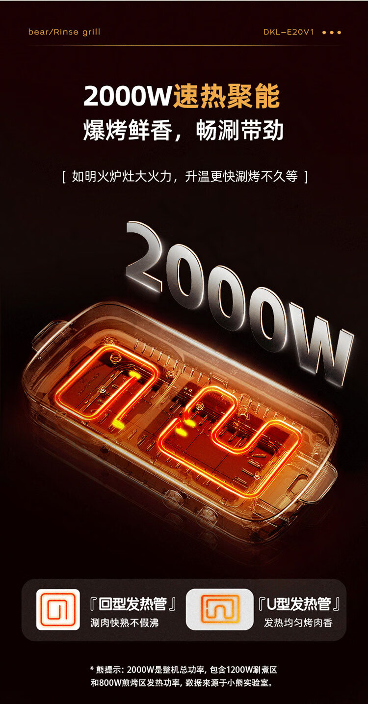 小熊(Bear) 电烧烤炉3.5L烤涮一体两用锅 DKL-E20V1 2000W 绿色(单位:台)