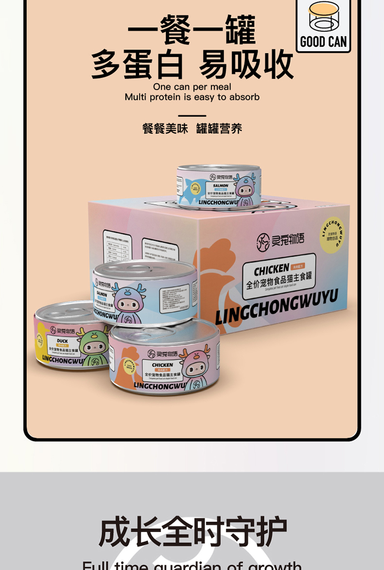 灵宠物语 猫狗零食 三文鱼味85g*4罐 宠物零食浓汤大口肉罐 水蓝色(单位:组)