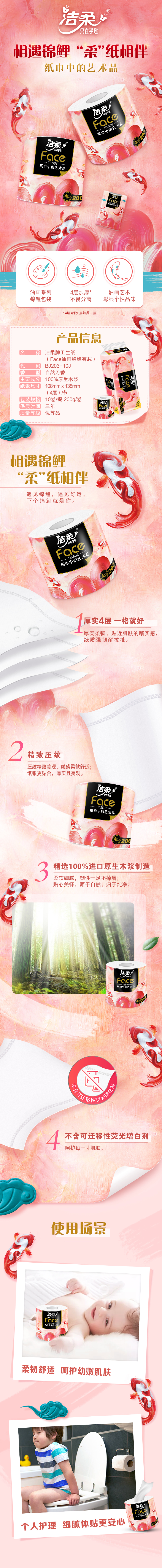 洁柔(C&S) 油画锦鲤有芯卷纸 BJ203-10J 200g4层(10卷装) 粉色(单位:提)