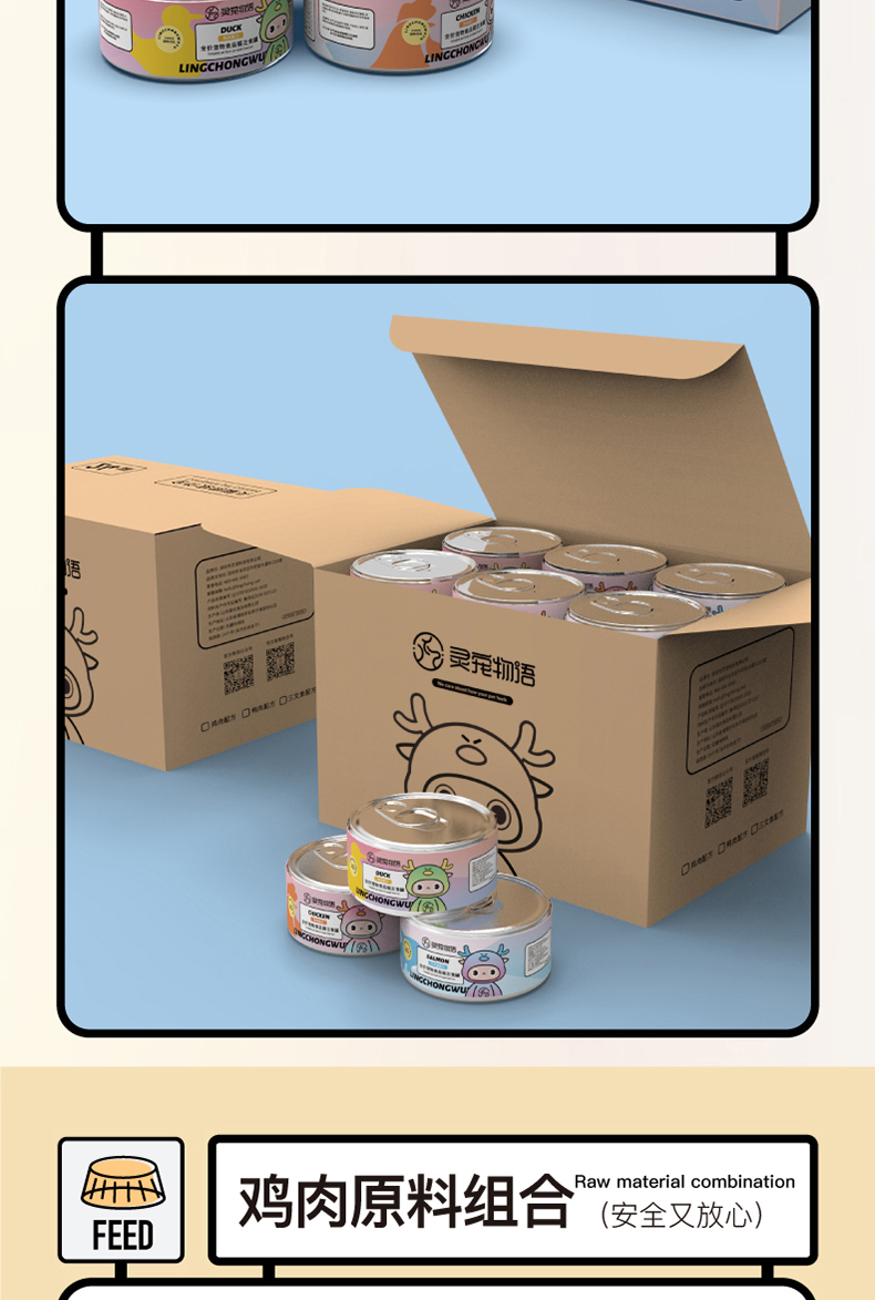 灵宠物语 猫狗零食 三文鱼味味85g*12罐 浓汤大口肉罐头 水蓝色(单位:组)