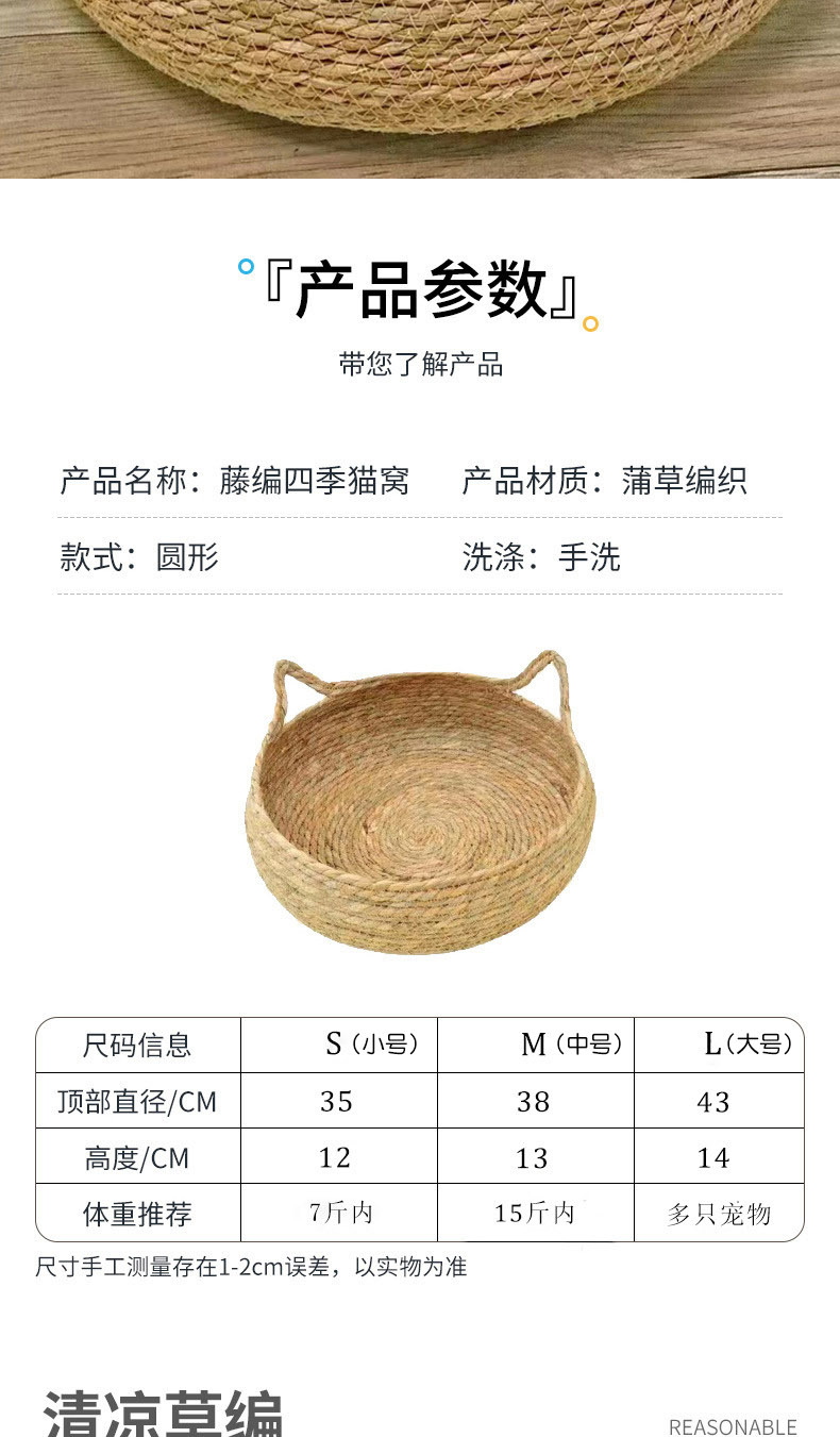 灵宠物语 猫窝狗窝 L码 四季通用藤编可拆洗 棕色(单位:个)